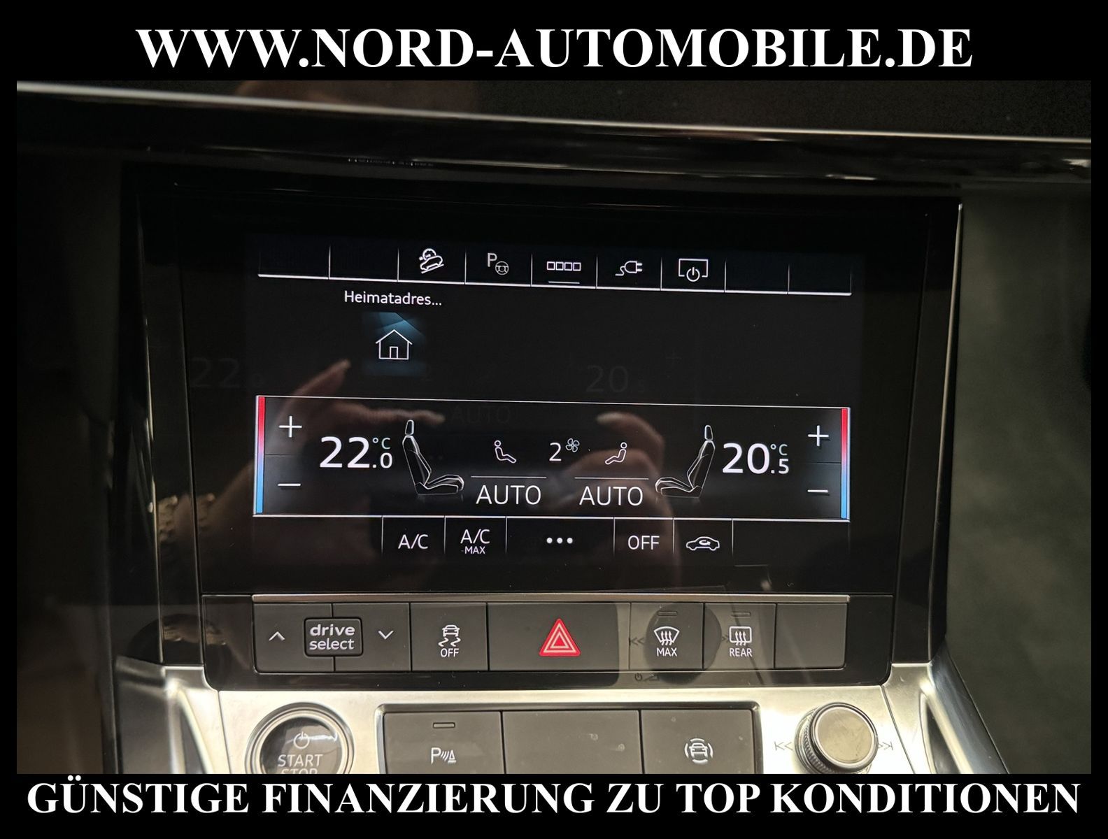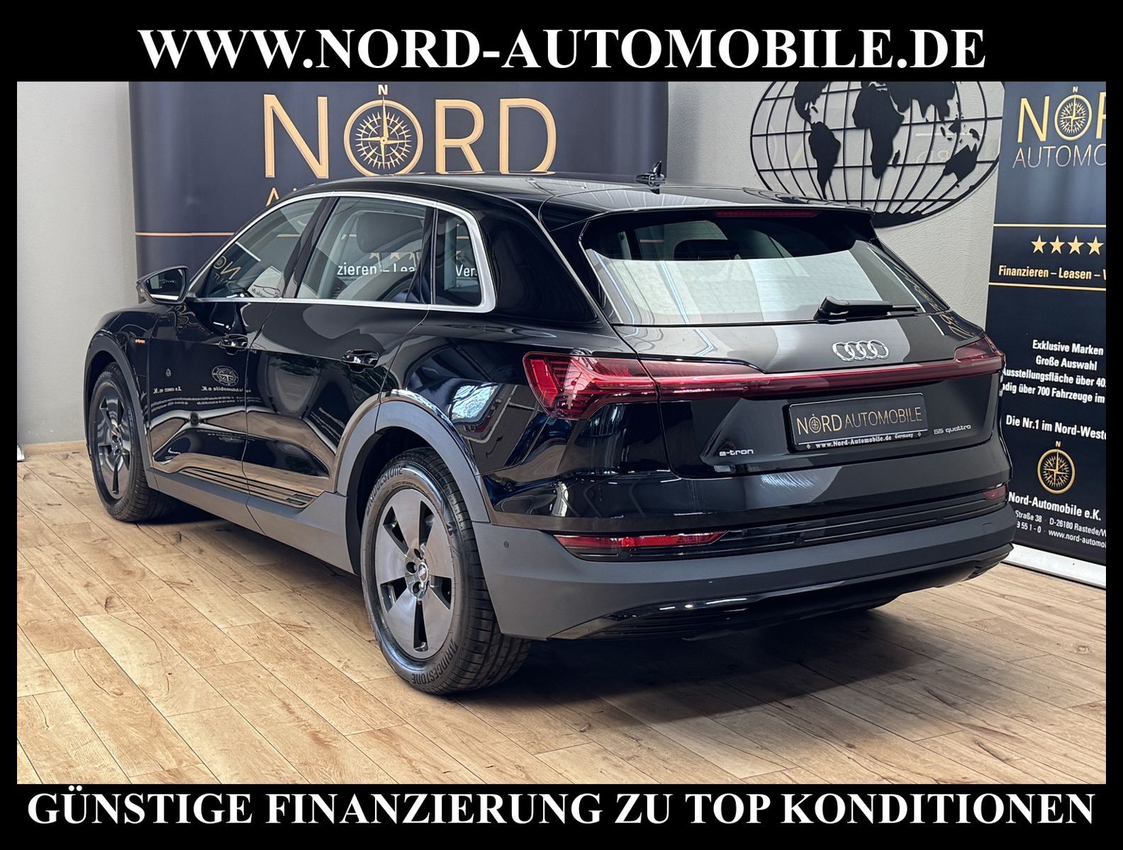 KomfortExtrasUnterhaltungBeschreibungwww.nord-automobile.de Audi e-tron quattro 55 electric 300kW 1-Gang Automatikgetriebe 4 TürenAnsprechpartner: Jan Feldhus, Jonathan Steinfeld, Tom Bijman, Simon Wolff, Matthis Ullrich, Andreas Cirja* FAHRZEUG-NUMMER: M-1729-BD * LACKIERUNG: Brillantschwarz * Modelljahr:2023 * UPE brutto 83.039 ¤ * Mit Batteriezertifikat! * Batteriekapazität (brutto)95 kWh * Deutsche Auslieferung * MMI Navigation Plus mit MMI Touch * City-Notbremsfunktion (Audi pre sense City) * Einparkhilfe plus vorn, seitlich und hinten, akustisch und optisch mit Umgebungsanzeige * Radioempfang digital (DAB) * LED- Hauptscheinwerfer mit Linse * Zentralverriegelung ''Keyless-Go'' ohne Safesicherung * Fahrwerk (adaptive air suspension) * Geschwindigkeits-Regelanlage (Tempomat) * Audi Sound-System * Kombiinstrument digital (virtual cockpit plus) * Sonnenschutzrollo manuell für die Türscheiben hinten * Klimaautomatik * Multifunktions-Lederlenkrad im 4-Speichen-Design * Servolenkung * Airbag Beifahrerseite abschaltbar * Außenspiegel elektr. verstell- und heizbar, beide * Wegfahrsperre (elektronisch) * Reifendruck-Kontrollanzeige * Gepäckraumklappe elektr. betätigt (öffnen + schliessen) * Nord-Automobile - Ihr starker und kompetenter Partner seit über 30 Jahren * Wir bieten Ihnen eine günstige Finanzierung auch ohne Anzahlung über die * AutoEuropaBank - Zweigniederlassung der Volkswagen Bank GmbH an * 20 XXL-Fotografien dieses Fahrzeuges finden Sie unter www.nord-automobile.de * Gerne unterbreiten wir Ihnen ein Angebot zum Ankauf Ihres bisherigen Fahrzeuges * Beim Export-Geschäft führen wir die Ausfuhranmeldung und Zulassung für Sie durch * Wir sind Meister-Werkstatt und zertifizierte GTÜ-Prüfstelle * Lernen Sie uns kennen - wir freuen uns auf Ihren Besuch * Keine Haftung für Druck & Schreibfehler. ... Klima, Klimaautomatik, Automatik, Navigationssystem, Allrad, ESP, ABS, Parktronic System, Multifunktionslenkr., Soundsystem, Bordcomputer, Tempomat, Spiegel beheizbar, elektr. Fensterheber vorn, elektr. WFS, ZV mit Fernb., Fahrerairb., Beifahrerairb., Leichtmetallfelgen, Nichtraucher, Servolenkung, elektr. verstellb. Spiegel, Luftfederung, aus erster Hand, 4x4-Antrieb, Lederlenkrad, HSN 0588, TSN BSL |
