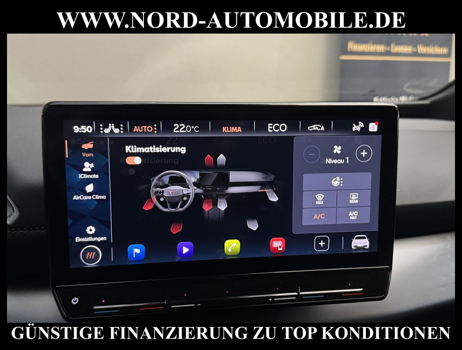 KomfortExtrasUnterhaltungBeschreibungwww.nord-automobile.de Cupra Born electric 150kW 1-Gang-Automatik 4 TürenAnsprechpartner: Jan Feldhus, Jonathan Steinfeld, Tom Bijman, Simon Wolff, Matthis Ullrich, Andreas Cirja* FAHRZEUG-NUMMER: M-1285-BD * LACKIERUNG: Aurorablau * Modelljahr:2024 * UPE brutto 46.489 ¤ * Mit Batteriezertifikat! * Batteriekapazität (brutto)62 kWh * Deutsche Auslieferung * LED- Hauptscheinwerfer * Mit Verkehrszeichenerkennung * Automatische Distanzregelung (mit follow to stop) und Speed-Limiter * Komforttelefonie mit LTE und Wireless charging * Mit Rückfahrkamerasystem * Sprachsteuerung * Müdigkeitserkennung * Einparkhilfe vorn und hinten * Spurhalteassistent * Sitzheizung für Vordersitze getrennt regelbar * Schlüsselloses Schließ- und Startsystem ''Keyless Advanced'' ohne Safesicherung * Ledermultifunktionslenkrad, beheizbar * Rücksitzbank ungeteilt, Lehne geteilt umlegbar mit Mittelarmlehne * Seitenscheiben ab 2.Sitzreihe und Heckscheibe dunkel getönt (Privacy Glass) * Fernlichtassistent * Scheiben seitlich in Wärmeschutzver- glasung, ab B-Säule und hinten dunkel eingefärbt * Scheibenwischer-Intervallschaltung mit Licht/Regensensor * Sicherheitsinnenspiegel automatisch abblendbar * Radschrauben mit Diebstahlsicherung (nicht abschließbar) * Reifendruckkontrolle * Außenspiegel elektr. verstell-, heiz- und anklappbar mit Spiegelabsenkung und Welcome Light * Pedale Aluminium-Design * Dynamiklenkung * 19''-Leichtmetallräder ''Exclusive'' 36/3, bearbeitet, kupferfarben * Nord-Automobile - Ihr starker und kompetenter Partner seit über 30 Jahren * Wir bieten Ihnen eine günstige Finanzierung auch ohne Anzahlung über die * AutoEuropaBank - Zweigniederlassung der Volkswagen Bank GmbH an * 20 XXL-Fotografien dieses Fahrzeuges finden Sie unter www.nord-automobile.de * Gerne unterbreiten wir Ihnen ein Angebot zum Ankauf Ihres bisherigen Fahrzeuges * Beim Export-Geschäft führen wir die Ausfuhranmeldung und Zulassung für Sie durch * Wir sind Meister-Werkstatt und zertifizierte GTÜ-Prüfstelle * Lernen Sie uns kennen - wir freuen uns auf Ihren Besuch * Keine Haftung für Druck & Schreibfehler. ... Klimaautomatik, Automatik, Navigationssystem, Sitzheiz. vorn, Regensensor, ESP, ABS, Distronic, Multifunktionslenkr., Radio, Bordcomputer, Spiegel beheizbar, elektr. Fensterheber vorn, elektr. WFS, ZV mit Fernb., Fahrerairb., Beifahrerairb., Leichtmetallfelgen, Nichtraucher, abklappb. Spiegel, elektr. verstellb. Spiegel, Sitzheizung, Lichtsensor, aus erster Hand, Lederlenkrad, HSN 7593, TSN ASO, HU + AU wird vor Verkauf erneuert |