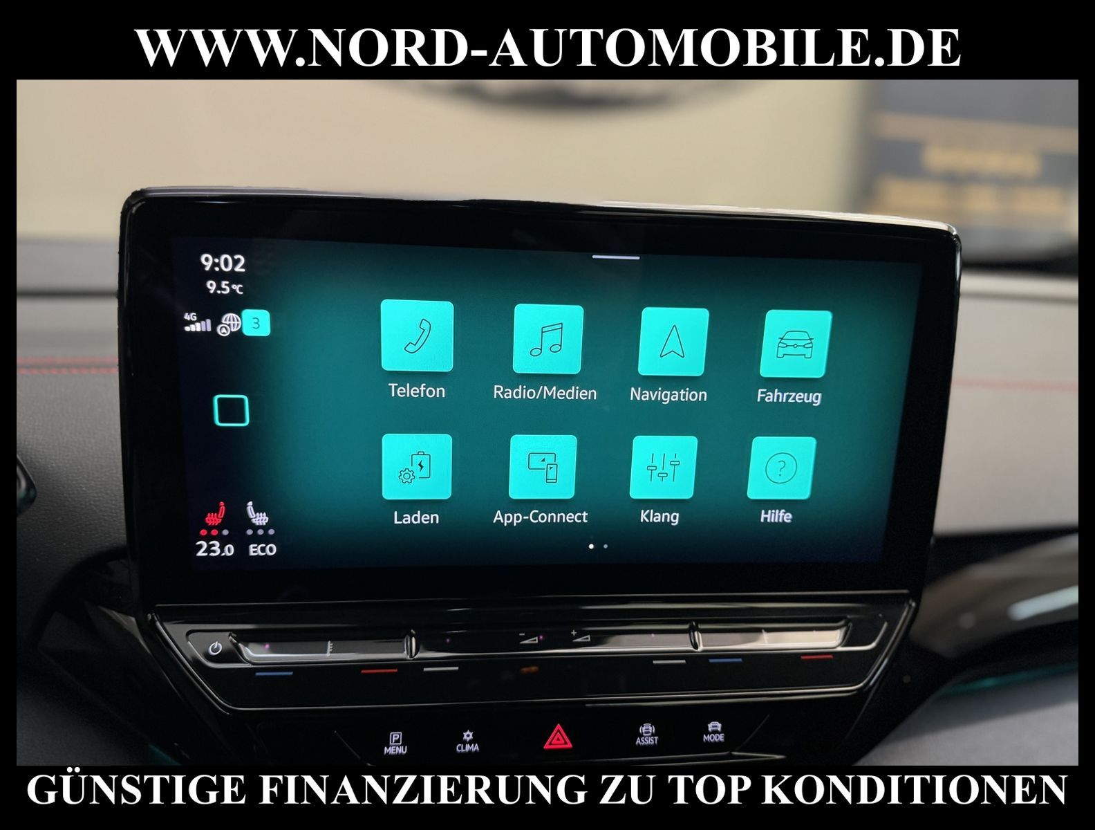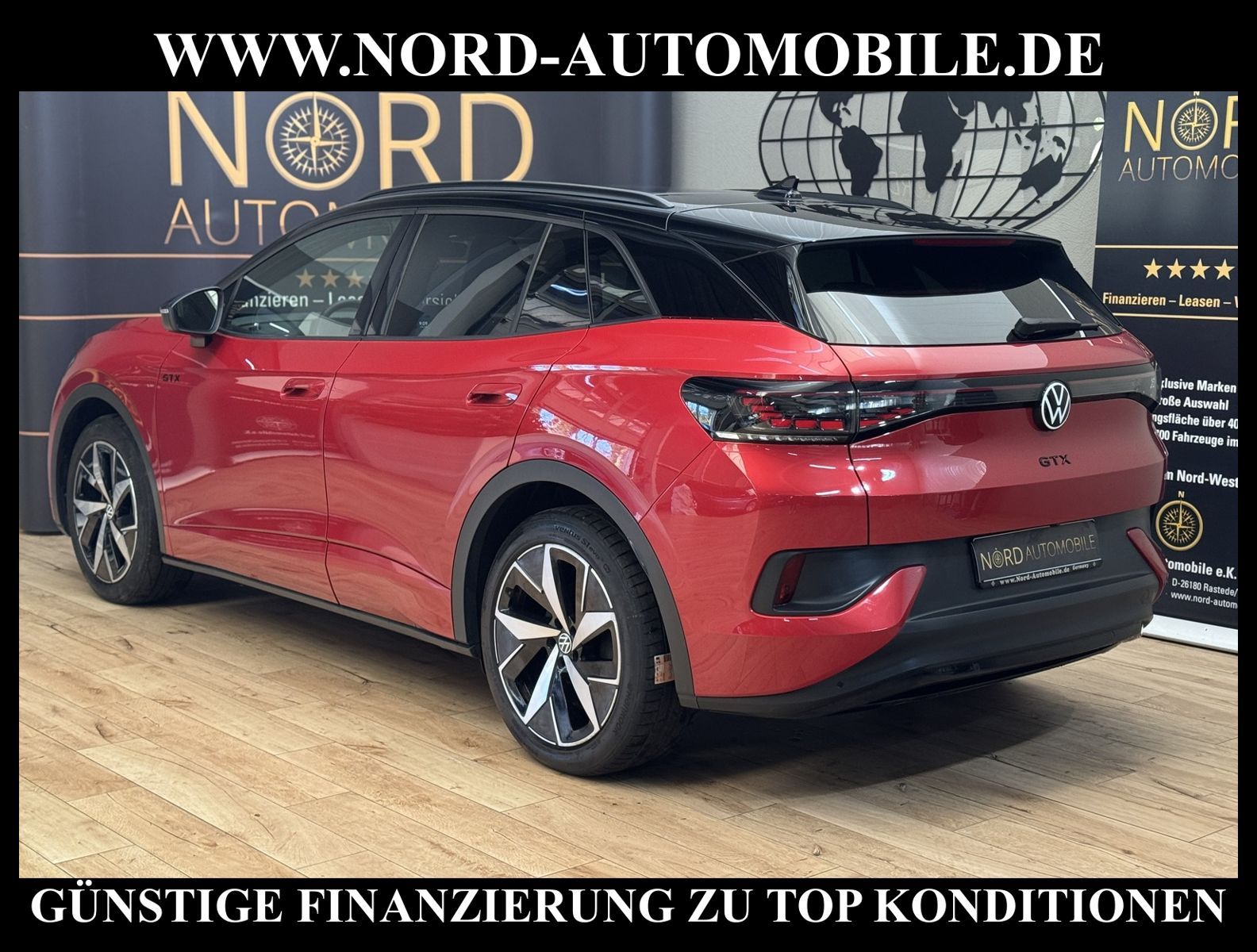 KomfortExtrasUnterhaltungBeschreibungwww.nord-automobile.de Volkswagen ID.4 GTX 4Motion electric 220kW 1-Gang-Automatik 4 TürenAnsprechpartner: Jan Feldhus, Jonathan Steinfeld, Tom Bijman, Simon Wolff, Matthis Ullrich, Andreas Cirja* FAHRZEUG-NUMMER: M-1671-BD * LACKIERUNG: Kings Red Metallic * Modelljahr:2023 * UPE brutto 63.538 ¤ * Mit Batteriezertifikat! * Batteriekapazität (brutto)82 kWh * Deutsche Auslieferung * Sportpaket ''Plus'' * Design-Paket ''Plus'' * Schnellladevorrichtung (CCS-Ladedose) * Navigationssystem ''Discover Media'' inkl. ''Streaming & Internet'' * Rückfahrkamera mit 360° Umgebungsansicht (Area View) * Spurwechselassistent * Panoramadach * Spurhalteassistent plus Emergency Assist und Stauassistent * Einparkhilfe vorne und hinten * Anhängevorrichtung anklappbar, mit elektrischer Entriegelung * Müdigkeitserkennungserkennung * Climatronic ( 3-Zonen ) mit Klimabedienteil hinten * Autom. Distanzregelung (ACC inkl. Stop&Go-Funktion) - Geschwindigkeitsbegrenzungsanlage * Matrix-LED-Scheinwerfer (IQ.Light) inkl. autom. Fahrlichtschaltung, Schlechtwetter-Licht und Begrüßungsfunktion * Head-up-Display mit Augmented Reality * Verkehrszeichenerkennung * Sitzheizung für Vordersitze getrennt regelbar * Schlüsselloses Schließ- und Startsystem ''Keyless Access'', mit Safe-Sicherung * Mobiltelefon Schnittstelle Comfort mit kabelloser Ladefunktion * Intelligente Fahrzeugvernetzung (Car2X) * Sprachsteuerungssystem * Lenkrad heizbar (Leder) mit Multifunktion * Seitenscheiben in Verbund-Sicherheitsglas, Seitenscheiben hinten und Heckscheibe abgedunkelt * Lendenwirbelstützen vorn pneumatisch einstellbar * Frontscheibe in Verbundsicherheitsglas, drahtlos beheizbar und infrarot-reflektierend, geräuschdämmend * Dynamische Fernlichtregulierung ''Dynamic Light Assist'' für LED-Matrix-Scheinwerfer * Scheibenwaschdüsen vorn automatisch beheizt * Scheibenwischer-Intervallschaltung mit Licht/Regensensor * Rücksitzlehne asymmetrisch geteilt umklappbar, mit Durchlademöglichkeit und Mittelarmlehne, 2 Becherhalter * Ambientebeleuchtung * Umfeldbeobachtungssystem (Front assist) mit City-Notbremsfunktion * ISOFIX-Halteösen für Kindersitze auf denäußeren Rücksitzen sowie auf dem Beifahrersitz, i-Size-kompatibel * Airbag für Fahrer und Beifahrer, mit Beifahrerairbag-Deaktivierung * Radioempfang digital (DAB+) * Sicherheitsinnenspiegel automatisch abblendbar * Kopfairbags vorn und hinten, Seitenairbags vorn, Center-Airbag * Außenspiegel elektrisch einstell-, anklapp-, beheizbar, Umfeldbeleuchtung, Beifahrerspiegelabsenkung, Memory * Pedale in Edelstahl, im ''Play/Pause''-Design * Komfortöffnung Heckklappe (Virtuelles Pedal) plus Easy Close * Diebstahlwarnanlage mit Innenraumüberwachung, Back-up-Horn und Abschleppschutz * Sport-Fahrwerk * Reifenkontrollanzeige * Adaptive Fahrwerksregelung (DCC) * Sitzmittelbahnen in Mikrovlies ''ArtVelours'' * 4 Leichtmetallräder ''Ystad'', 8 J x 20 vorn, 9 J x 20 hinten, in Schwarz, Oberfläche glanzgedreht * Nord-Automobile - Ihr starker und kompetenter Partner seit über 30 Jahren * Wir bieten Ihnen eine günstige Finanzierung auch ohne Anzahlung über die * AutoEuropaBank - Zweigniederlassung der Volkswagen Bank GmbH an * 20 XXL-Fotografien dieses Fahrzeuges finden Sie unter www.nord-automobile.de * Gerne unterbreiten wir Ihnen ein Angebot zum Ankauf Ihres bisherigen Fahrzeuges * Beim Export-Geschäft führen wir die Ausfuhranmeldung und Zulassung für Sie durch * Wir sind Meister-Werkstatt und zertifizierte GTÜ-Prüfstelle * Lernen Sie uns kennen - wir freuen uns auf Ihren Besuch * Keine Haftung für Druck & Schreibfehler. ... Klima, Klimaautomatik, Automatik, Navigationssystem, Allrad, Sitzheiz. vorn, Regensensor, ESP, ABS, Distronic, Multifunktionslenkr., Radio, Tel. m. Freisprech., Bordcomputer, beheizte Frontscheibe, Spiegel beheizbar, elektr. Fensterheber vorn, ZV mit Fernb., Fahrerairb., Beifahrerairb., Kopfairbags, Leichtmetallfelgen, Nichtraucher, Anhaengerk., Sportfahrwerk, Sitzbank teilbar, Dachreling, abklappb. Spiegel, elektr. verstellb. Spiegel, Sitzheizung, Lichtsensor, aus erster Hand, 4x4-Antrieb, Lederlenkrad, HSN 0603, TSN CLR, HU + AU wird vor Verkauf erneuert |