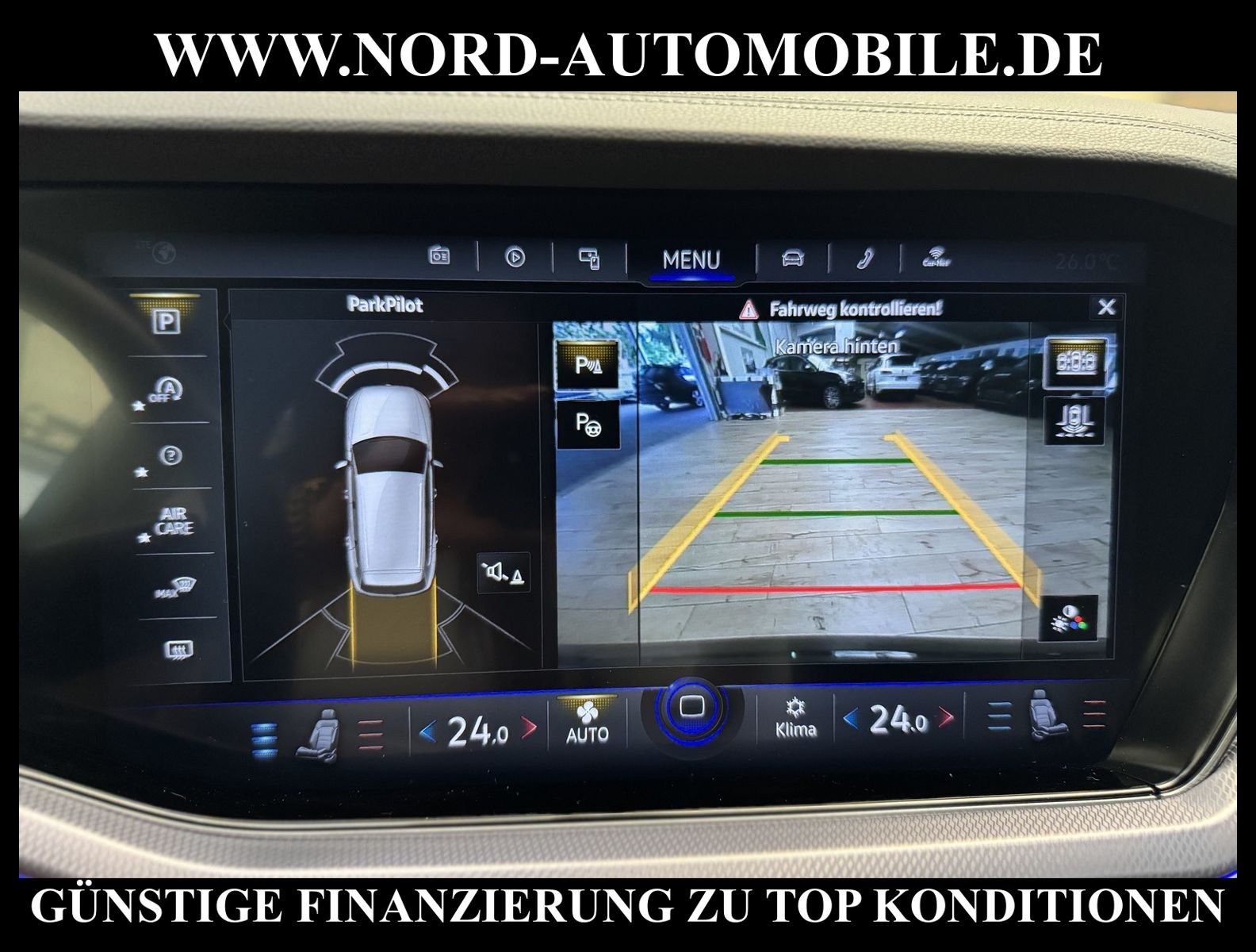 KomfortExtrasUnterhaltungBeschreibungwww.nord-automobile.de Volkswagen Touareg R-Line 4Motion 3.0 TDI SCR 210kW 8-Gang Tiptronic 4 TürenAnsprechpartner: Jan Feldhus, Jonathan Steinfeld, Tom Bijman, Simon Wolff* FAHRZEUG-NUMMER: M-0135-BD * LACKIERUNG: Deep Black Perleffekt * Modelljahr: 2021 * R-Line ''Exterieur Black Style'' Volkswagen R * Deutsche Auslieferung * UPE brutto 97.489 ¤ * Abgasnorm Euro 6d * R-Line Black Style * 4 Corner Luftfederung mit elektrisch geregelter Dämpfung * Ausstattung R-Line * Luftfederung elektronisch geregelt inkl. Allradlenkung * LED-Scheinwerfer * Spurwechselassistent * Schlüsselloses Schließ- und Startsystem ''Keyless Access'' mit Safe-Sicherung * Spurhalteassistent plus Emergency Assist und Stauassistent * Rückfahrkamera ''Rear View'' * Parklenkassistent (Park Assist) und PDC vorn und hinten * Müdigkeitserkennungserkennung * Sitzbelüftung vorn * Mirror Link plus Wireless RSE ''App'' * Active Info Display, mehrfarbig, verschiedene Info-Profile wählbar * Autom. Distanzregelung (ACC inkl. Stop&Go-Funktion) - Geschwindigkeitsbegrenzungsanlage * Navigationsgerät-Premium * Innovision Cockpit (Instrumente digital und Bedienung über Touchscreen-Farbdisplay) * Klimaanlage ''Climatronic'' mit 2-Zonen-Temperaturregelung * Verkehrszeichenerkennung * Sitzheizung für Vordersitze getrennt regelbar * Komfort-Paket Keyless Access * Umfeldbeobachtungssystem (Front assist) mit City-Notbremsfunktion * 2 USB-C-Schnittstellen vorn, 1 USB-C-Ladebuchse an der Mittelkonsole hinten * Telefonschnittstelle ''Business'' mit induktiver Ladefunktion * Lenkrad heizbar (Leder, R-Line) mit Multifunktion und Schaltfunktion * Vordersitze elektrisch einstellbar, mit längs verschiebbarer Oberschenkelauflagesowie Fahrersitz mit Memory-Funktion * Memory-Paket * Komfortsitze vorn * Lendenwirbelstützen vorn pneumatisch einstellbar * Rücksitzbank und -lehne asymmetrisch geteilt umklappbar, längs verschiebbar, Lehenneigung einstellbar * Seitenscheiben hinten und Heckscheibe abgedunkelt, zu 65 % lichtabsorbierend * Dynamische Fernlichtregulierung ''Dynamic Light Assist'' für LED-Matrix-Scheinwerfer * Scheibenwaschdüsen vorn automatisch beheizt * Scheinwerfer-Reinigungsanlage * Ambientebeleuchtung mehrfarbig * Frontscheibe in Wärmeschutzglas, geräuschdämmend und beheizbar * Kindersitzverankerung für Kindersitzsystem I-Size, 2 x top tether * Airbag für Fahrer und Beifahrer, mit Beifahrerairbag-Deaktivierung * Radioempfang digital (DAB+) * Lenksäule einstellbar * Kopfairbagsystem für Front- und Fondpassagiere inkl. Seitenairbags vorn * Reifenfülldruck-Kontrollsystem * Komfortöffnung Heckklappe (Virtuelles Pedal) plus Easy Close * Außenspiegel elektrisch einstell-, anklapp-, beheizbar und abblendend, Beifahrerspiegelabsenkung und Memory * Diebstahlwarnanlage mit Innenraumüberwachung, Back-up-Horn und Abschleppschutz * 8-Gang-Automatikgetriebe für Allrad * Start-Stopp-System mit Bremsenergie-Rückgewinnung * Dachhimmel in Titanschwarz * Kraftstofftank mit 90 l Fassungsvermögen * Allradlenkung * 4 Leichtmetallräder ''Suzuka'' 9, 5 J x 21 in Schwarz, Volkswagen R * Nord-Automobile - Ihr starker und kompetenter Partner seit über 30 Jahren * Wir bieten Ihnen eine günstige Finanzierung auch ohne Anzahlung über die * AutoEuropaBank - Zweigniederlassung der Volkswagen Bank GmbH an * 20 XXL-Fotografien dieses Fahrzeuges finden Sie unter www.nord-automobile.de * Gerne unterbreiten wir Ihnen ein Angebot zum Ankauf Ihres bisherigen Fahrzeuges * Beim Export-Geschäft führen wir die Ausfuhranmeldung und Zulassung für Sie durch * Wir sind Meister-Werkstatt und zertifizierte GTÜ-Prüfstelle * Lernen Sie uns kennen - wir freuen uns auf Ihren Besuch * Keine Haftung für Druck & Schreibfehler. ... Klima, Klimaautomatik, Automatik, Leder, Navigationssystem, Allrad, Sitzheiz. vorn, Xenon, Vorders. elekt. verstellb., ESP, ABS, Distronic, Parktronic System, Multifunktionslenkr., Radio, Bordcomputer, beheizte Frontscheibe, Spiegel beheizbar, Scheinwerferreinigung, elektr. Fensterheber vorn, Keyless-Go, ZV mit Fernb., Fahrerairb., Beifahrerairb., Seitenairbag vorn, Kopfairbags, Leichtmetallfelgen, Nichtraucher, Sitzbank teilbar, Lenksaeule einstellbar, abklappb. Spiegel, elektr. verstellb. Spiegel, Luftfederung, Mittelarmlehne, elekt. verstellb. Fahrersitz, Sitzheizung, aus erster Hand, Schadstoffklasse: Euro 6, Diesel, 4x4-Antrieb, Lederlenkrad, HSN 0603, TSN COC, Verbrauch: 7,0/8,6/6,1 l/100 km (komb/inn/auß), CO2: 219 g/km, HU + AU wird vor Verkauf erneuert, Feinstaubplakette: 4 - Grün |