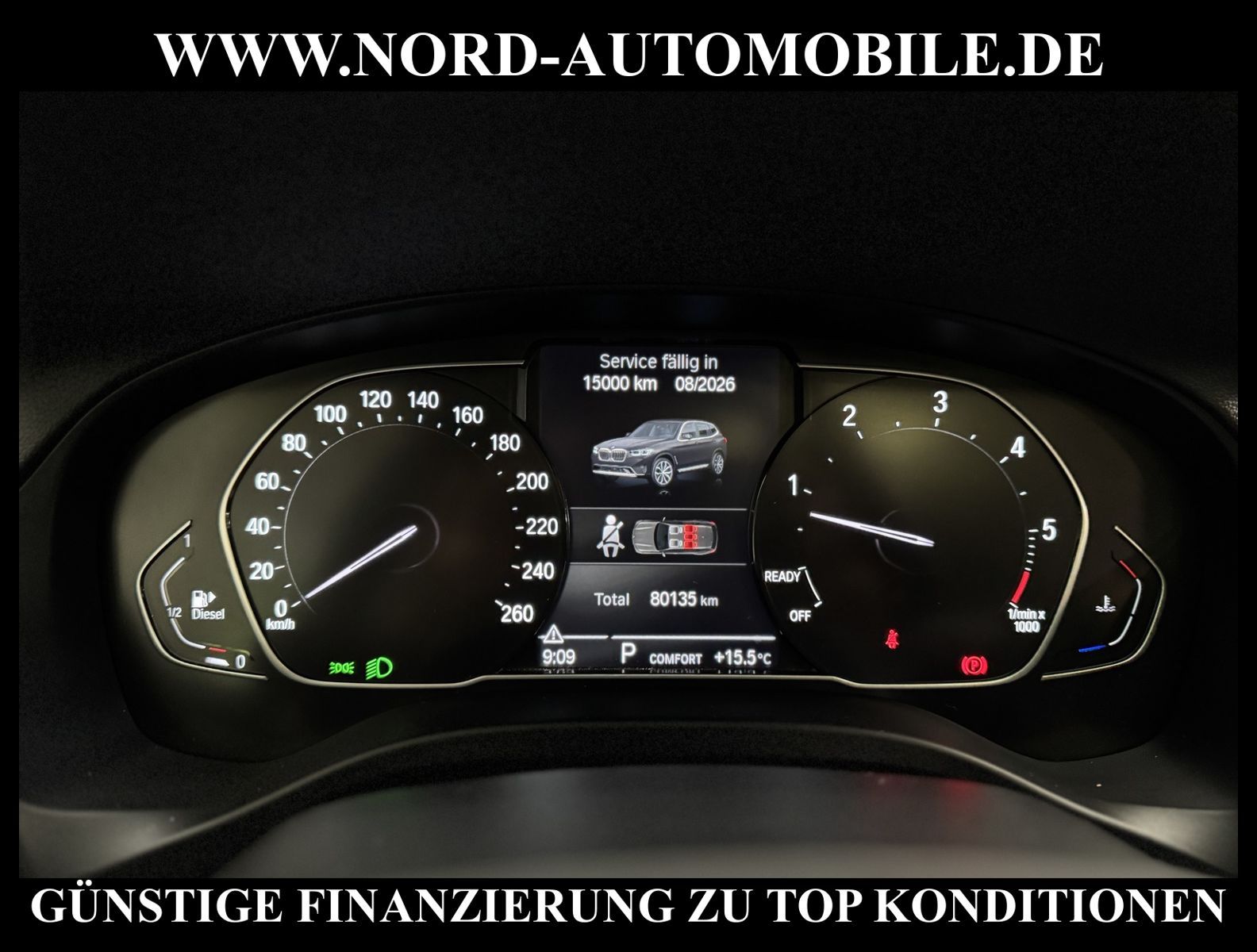 BMW X3 xDrive 30d AUTOMATIKAnsprechpartner: Jan Feldhus, Jonathan Steinfeld, Tom Bijman, Simon Wolff, Matthis Ullrich* FAHRZEUG-NUMMER: MW-8418-BD * LACKIERUNG: black sapphire metallic * deutsche Ausführung * Abgaskonzept, Euro6 rde II ehem.UPE: 67.269, -* xDrive (Allrad) * Mild-Hybrid Diesel 210 kW (Motor 3, 0 Ltr.) * Anhängerkupplung (Kugelkopf schwenkbar) * Parkassistent-Paket * Ausstattungs-Paket: Connected Professional * Navigationssystem * BMW Live Cockpit Plus * DAB-Tuner (Radioempfang digital) * Remote Services * Concierge Services * ConnectedDrive Services * Intelligenter Notruf inkl. TeleServices * Real Time Traffic Information (RTTI) * Personalisierungssystem (Personal Profile) * Freisprecheinrichtung Bluetooth mit erweiterter Smartphone-Anbindung * WLAN Hotspot * 3-Zonen Klimaautomatik mit automatischer Umluft-Control * Panoramadach (Glas) * Sitzbezug / Polsterung: Leder * Sitzheizung vorn * Sportsitze vorn * LED-Scheinwerfer mit erweiterten Umfängen und LED-Tagfahrlicht * LM-Felgen 7x18 (V-Speiche 618) * Fahrerlebnisschalter * Geschwindigkeits-Regelanlage mit Bremsfunktion * Park-Assistent * Park-Distance-Control (PDC) vorn und hinten * Rückfahrkamera * Komfortzugang (Öffnungs- und Schließsystem) * Heckklappenbetätigung automatisch * Multifunktions-Sportlederlenkrad (M-Technic) * Heckleuchten LED * Interieurleisten schwarz hochglänzend mit Akzentleiste * Sitze vorn höhenverstellbar * Lendenwirbelstützen vorn * Mittelarmlehne * Rücksitzlehne geteilt/klappbar (40:20:40) * Mittelarmlehne vorn und hinten * Wärmeschutzverglasung getönt * Sonnenschutzverglasung (hinten abgedunkelt) * Bordcomputer * Zentralverriegelung mit Fernbedienung * Fensterheber elektrisch vorn + hinten * Außenspiegel elektrisch anklappbar, verstell-und heizbar, mit Abblendautomatik * Außen-/Innenspiegel mit Abblendautomatik * Scheibenwaschdüsen heizbar * Scheibenwischer mit Regensensor * Licht- und Regensensor * Isofix-Aufnahmen für Kindersitz * Airbag Beifahrerseite abschaltbar * Airbag Fahrer-/Beifahrerseite * Kopf-Airbag-System vorn und hinten * Seitenairbag vorn * Dynamische Stabilitäts-Control (DSC) * Dynamische Tractions Control (DTC) * Auffahrwarnsystem mit Bremsfunktion * Active Guard Bremsassistent * Reifendruckkontrolle * Start/Stopp-Anlage mit Rekuperation * Getriebe Automatik - mit Steptronic (8-Stufen) für Allrad * Nord-Automobile - Ihr starker und kompetenter Partner seit über 30 Jahren * Wir bieten Ihnen eine günstige Finanzierung auch ohne Anzahlung über die * AutoEuropaBank - Zweigniederlassung der Volkswagen Bank GmbH an * 20 XXL-Fotografien dieses Fahrzeuges finden Sie unter www.nord-automobile.de * Gerne unterbreiten wir Ihnen ein Angebot zum Ankauf Ihres bisherigen Fahrzeuges * Beim Export-Geschäft führen wir die Ausfuhranmeldung und Zulassung für Sie durch * Wir sind Meister-Werkstatt und zertifizierte DEKRA-Prüfstelle * Lernen Sie uns kennen - wir freuen uns auf Ihren Besuch * Keine Haftung für Druck & Schreibfehler. ... Klima, Klimaautomatik, Automatik, Leder, Navigationssystem, Allrad, Sitzheiz. vorn, Regensensor, ESP, ABS, Schiebedach, Parktronic System, Multifunktionslenkr., Radio, Bordcomputer, Tempomat, Spiegel autom. abblendbar, Spiegel beheizbar, elektr. Fensterheber vorn, elektr. WFS, ZV mit Fernb., Fahrerairb., Beifahrerairb., Seitenairbag vorn, Seitenairbag hinten, Kopfairbags, Leichtmetallfelgen, Nichtraucher, Anhaengerk., Glasdach, Servolenkung, Kat., Sportsitze/Schalensitze, Traktionskontr., Sitzbank teilbar, Lenksaeule einstellbar, abklappb. Spiegel, elektr. verstellb. Spiegel, Nebelschlussl., Mittelarmlehne, Lendenwirbelst., Sitzheizung Fahrer + Beif., Lichtsensor, Waermeschutzvergl., aus erster Hand, Diesel, 4x4-Antrieb, Lederlenkrad, HSN 0005, TSN CZV, Partikelfilter, SCR-Technologie |