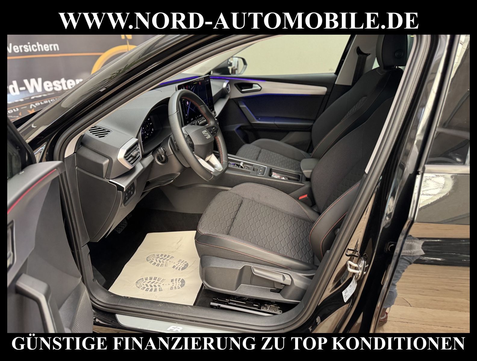 KomfortExtrasUnterhaltungBeschreibungwww.nord-automobile.de SEAT LEON FRAnsprechpartner: Jan Feldhus, Jonathan Steinfeld, Tom Bijman, Simon Wolff, Matthis Ullrich* FAHRZEUG-NUMMER: M-0781-BD * LACKIERUNG: Mitternachtsschwarz * Deutsche Ausliefeung * Modelljahr:2025 * Unfallfrei * UPE brutto 42.024 ¤ * Mit Rückfahrkamerasystem * Mit Ausweichunterstützung mit Abbiegeassistent * Parklenkassistent * Matrix-Beam * Automatische Distanzregelung * Wired & Wireless App-Connect * Sprachsteuerung * Mit Verkehrszeichenerkennung * Digitaler Radioempfang * Komforttelefonie: Wireless Charging(fast charge) und Außenantennenanbindung * LED-Scheinwerfer * Climatronic ( 3-Zonen ) mit Klimabedienteil hinten * Spurhalteassistent plus Emergency Assist und Stauassistent * Schlüsselloses Schließ- und Startsystem''Keyless Advanced'' mit Safesicherung * Sitzheizung für Vordersitze getrennt regelbar * Ledermultifunktionslenkrad, beheizbar mit Tiptronic * Höheneinstellung, manuell, für Vordersitze * Rücksitzbank ungeteilt, Lehne geteilt umlegbar mit Mittelarmlehne * Scheiben seitlich in Wärmeschutzverglasung, ab B-Säule und hinten dunkel eingefärbt * Servolenkung, geschwindigkeitsabhängig(Servotronic) * Nebelscheinwerfer * Sicherheitsinnenspiegel automatisch abblendbar * Scheibenwischer-Intervallschaltung mit Licht/Regensensor * Airbag FS und BFS, ohne Knieairbag, mit BFS-Deaktivierung * Außenspiegel elektrisch anklappbar-/einstellbar, beheizbar, mit Beifahrerspiegelabsenkung * Fensterheber mit Komfortschaltung und Abschaltsicherung, elektrisch * Diebstahlalarmanlage, Innenraumüberwachung, Back-up-Horn und Abschleppschutz * Radschrauben mit Diebstahlsicherung(nicht abschließbar) * Reifendruckkontrolle * Start/Stopp-Anlage mit Rekuperation * Leichtmetallräder 7 1/2J x 17 * 7-Gang-Automatikgetriebe * Nord-Automobile - Ihr starker und kompetenter Partner seit über 30 Jahren * Wir bieten Ihnen eine günstige Finanzierung auch ohne Anzahlung über die * AutoEuropaBank - Zweigniederlassung der Volkswagen Bank GmbH an * 20 XXL-Fotografien dieses Fahrzeuges finden Sie unter www.nord-automobile.de * Gerne unterbreiten wir Ihnen ein Angebot zum Ankauf Ihres bisherigen Fahrzeuges * Beim Export-Geschäft führen wir die Ausfuhranmeldung und Zulassung für Sie durch * Wir sind Meister-Werkstatt und zertifizierte GTÜ-Prüfstelle * Lernen Sie uns kennen - wir freuen uns auf Ihren Besuch * Keine Haftung für Druck & Schreibfehler. ... Klima vorn+hinten, Klimaautomatik, Automatik, Navigationssystem, Sitzheiz. vorn, Regensensor, ESP, ASR, ABS, Distronic, Parktronic System, Multifunktionslenkr., Radio, Bordcomputer, Tempomat, Spiegel autom. abblendbar, Spiegel beheizbar, elektr. Fensterheber vorn+hinten, elektr. WFS, Keyless-Go, ZV mit Fernb., Fahrerairb., Beifahrerairb., Seitenairbag vorn, Kopfairbags, Leichtmetallfelgen, Nichtraucher, Nebelscheinw., Servolenkung, Sportfahrwerk, Sportsitze/Schalensitze, Traktionskontr., Sitzbank teilbar, abklappb. Spiegel, elektr. verstellb. Spiegel, Kopfst. vorn, Kopfst. hinten, Gepaeckraumabd., Nebelschlussl., Scheibenbr., Mittelarmlehne, Lendenwirbelst., Sitzhoehenv., Sitzheizung Fahrer + Beif., Lichtsensor, Waermeschutzvergl., 12 V Zusatzanschluss, aus erster Hand, Schadstoffklasse: Euro 6, Frontantrieb, Lederlenkrad, HSN 7593, TSN ARV, CO2: 124 g/km, HU + AU wird vor Verkauf erneuert, Feinstaubplakette: 4 - Grün |