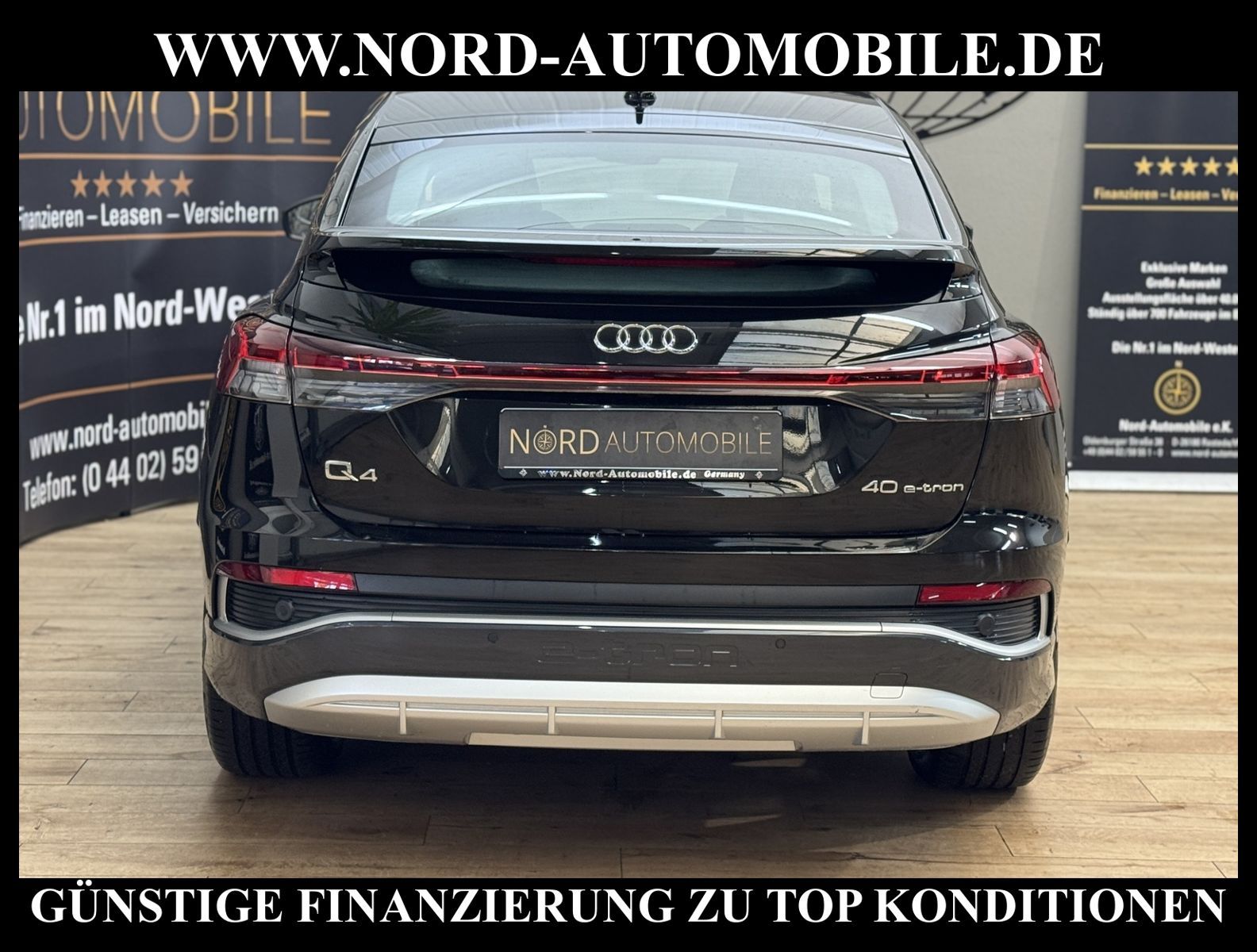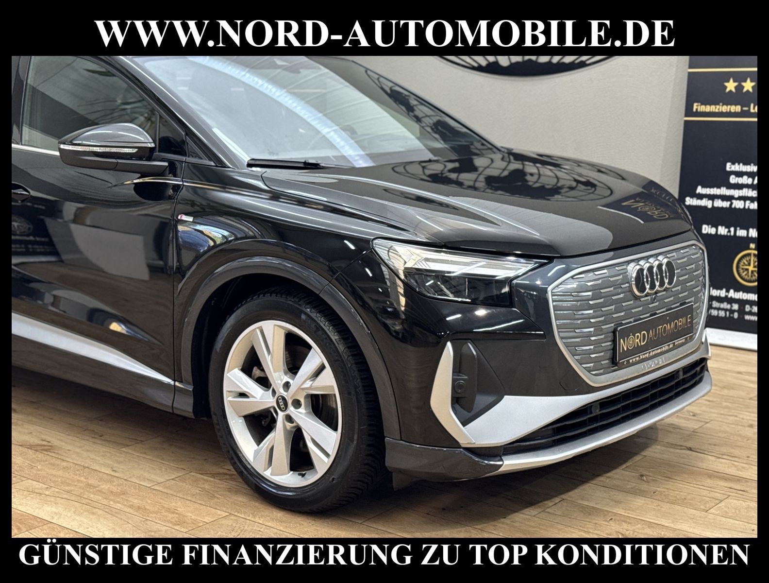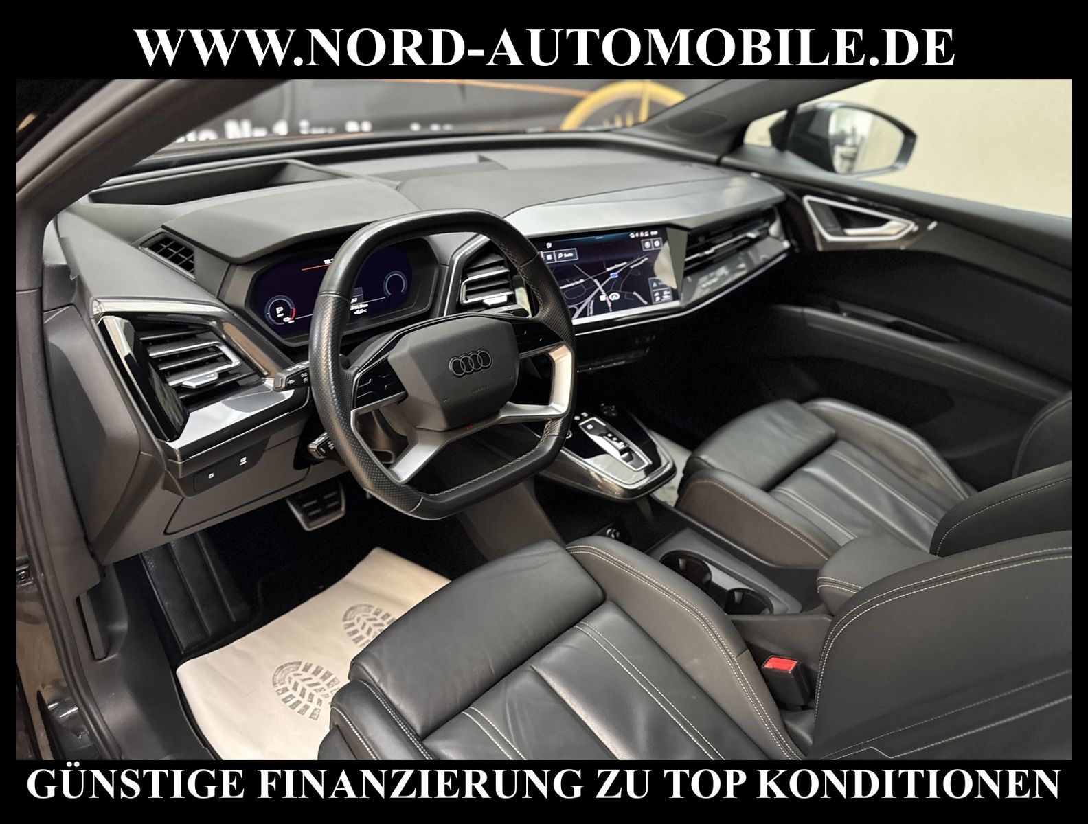 KomfortExtrasUnterhaltungBeschreibungwww.nord-automobile.de AUDI Q4 e-tronAnsprechpartner:Jan Feldhus, Jonathan Steinfeld, Tom Bijman, Simon Wolff, Matthis Ullrich* FAHRZEUG-NUMMER: M-2904-BD * LACKIERUNG: Mythosschwarz Metallic * Modelljahr:2022 * UPE brutto 62.196 ¤ * S-Line * Audi Smartphone Interface * Zentralverriegelung ''Keyless-Go'' * Navigationsgerät-High * Spurverlassenswarnung * Mit Rückfahrkamerasystem * Head-Up Display * Mit Verkehrszeichenerkennung * Digitaler Radioempfang * Pedalerie aus Edelstahl * Audi virtual cockpit plus * Interieur S line mit Sportsitzen in Leder/Kunstleder-Kombination schwarz * Mit Ausweichunterstützung mit Abbiegeassistent * Einparkhilfe vorn und hinten * Telefonvorbereitung für Handy * LED-Scheinwerfer * Automatische Distanzregelung(mit follow to stop) und Speed-Limiter * Dekor-Einlagen, Alu matt gebürstet * Ledersportmultifunktionslenkrad * Höheneinstellung, manuell, für Vordersitze * Rücksitzbank ungeteilt, Lehne geteilt umlegbar (dreiteilig) mit Mittelarmlehne * Servolenkung, geschwindigkeitsabhängig(Servotronic) * Lendenwirbelstütze, elektr. einstellbar in Vordersitzlehnen * Radschrauben mit Diebstahlsicherung(nicht abschließbar) * Airbag FS und BFS, ohne Knieairbag, mit BFS-Deaktivierung * Servoschließung Heckklappe * Sicherheitsinnenspiegel automatisch abblendbar * Diebstahlalarmanlage, Innenraumüberwachung, Back-up-Horn und Abschleppschutz * Außenspiegel automatisch abblendbar elektrisch anklapp-/einstellbar, beheizbar, mit Beifahrerspiegelabsenkung * Räder, 5-Y-Speichen, 8, 0J|9, 0Jx20, Reifen 235/50|255/45 R20 * Reifendruckkontrolle * Nord-Automobile - Ihr starker und kompetenter Partner seit über 20 Jahren * Wir bieten Ihnen eine günstige Finanzierung auch ohne Anzahlung über die * AutoEuropaBank - Zweigniederlassung der Volkswagen Bank GmbH an * 20 XXL-Fotografien dieses Fahrzeuges finden Sie unter www.nord-automobile.de * Gerne unterbreiten wir Ihnen ein Angebot zum Ankauf Ihres bisherigen Fahrzeuges * Beim Export-Geschäft führen wir die Ausfuhranmeldung und Zulassung für Sie durch * Wir sind Meister-Werkstatt und zertifizierte GTÜ-Prüfstelle * Lernen Sie uns kennen - wir freuen uns auf Ihren Besuch * Keine Haftung für Druck & Schreibfehler. ... Klima, Klimaautomatik, Automatik, Navigationssystem, Regensensor, Vorders. elekt. verstellb., ESP, ABS, Distronic, Parktronic System, Multifunktionslenkr., Radio, Bordcomputer, Tempomat, Spiegel autom. abblendbar, Spiegel beheizbar, elektr. Fensterheber vorn+hinten, Alarm, elektr. WFS, ZV mit Fernb., Fahrerairb., Beifahrerairb., Seitenairbag vorn, Kopfairbags, Leichtmetallfelgen, Nichtraucher, Servolenkung, Sportfahrwerk, Sportsitze/Schalensitze, Sitzbank teilbar, abklappb. Spiegel, elektr. verstellb. Spiegel, Kopfst. vorn, Aluoptik, Mittelarmlehne, Lendenwirbelst., elekt. verstellb. Fahrersitz, Lichtsensor, Waermeschutzvergl., 12 V Zusatzanschluss, Frontantrieb, Lederlenkrad, HSN 0588, TSN BZT, HU + AU wird vor Verkauf erneuert, Standklima |