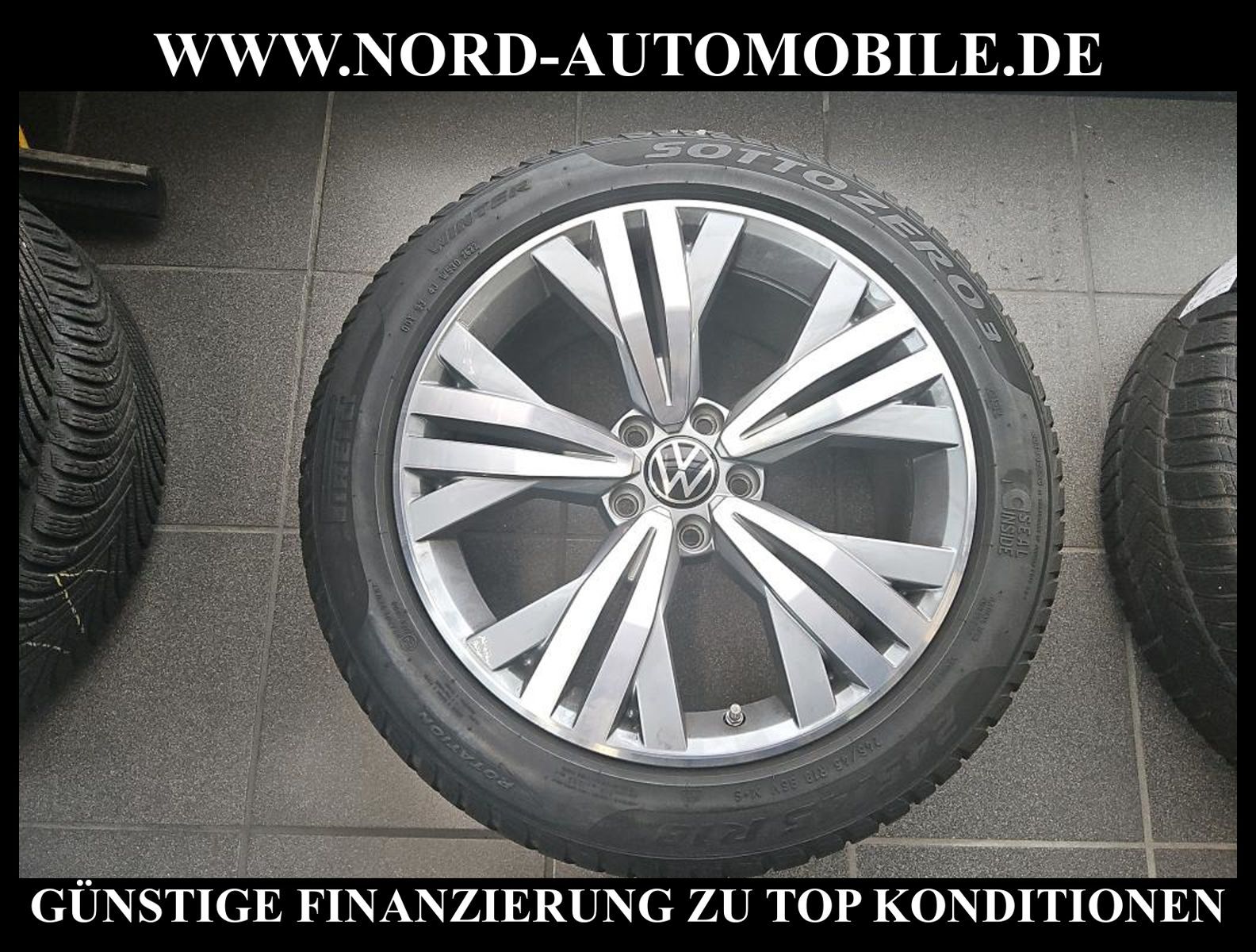 * ''Albertville'' 8J x 19, Volkswagen R, in Dark Graphite, Oberfläche glanzgedreht (5-Y-Speichen-Design)