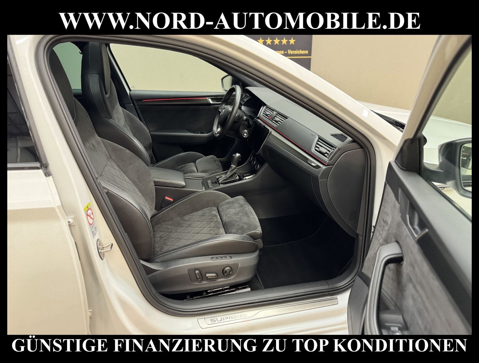 KomfortExtrasUnterhaltungBeschreibungwww.nord-automobile.de SKODA SUPERB COMBIAnsprechpartner:Jan Feldhus, Jonathan Steinfeld, Tom Bijman, Simon Wolff, Matthis Ullrich* FAHRZEUG-NUMMER: M-7993-BD * LACKIERUNG: Moon-Weiss Metallic * Deutsche Auslieferung * UPE brutto 53.157 ¤ * Abgaskonzept, EU6 DG * SportLine * Panorama Schiebedach PSD * Spurhalteassistent plus Emergency Assist und Stauassistent * Front Assist inkl. City ANB für ACC high * Navigationsgerät-High * Spurwechselassistent * Zentralverriegelung ''Keyless-Entry''ohne Safesicherung * Anhängevorrichtung schwenkbar, manuell * Multifunktionsanzeige/Bordcomputer''FPK'' Entry * Mirror Link plus Wireless RSE ''App'' * Sitzheizung für Vorder-/u.Hintersitze, getrennt regelbar * Automatische Distanzregelung(mit follow to stop) und Speed-Limiter * ''Virtual Cockpit'' * Matrix-Beam * Komfort telefonie mit Außenantenne und (rSAP) * Müdigkeitserkennung * Automatische Distanzregelung (mit follow to stop) und Speed-Limiter * Side Assist + Lane Assist + Stau Assist + Emergency Assist * Mit Verkehrszeichenerkennung * Digitaler Radioempfang * Mit Elektrische Lenksäulenverriegelung(ELV) * Climatronic ( 3-Zonen ) mit Klimabedienteil hinten * Ledermultifunktionslenkrad, beheizbar mit Tiptronic * Lendenwirbelstütze, elektr. einstellbar in Vordersitzlehnen * Sport-Komfortsitze vorn * Rücksitzbank ungeteilt, Lehne geteilt umlegbar mit Mittelarmlehne * Sitzeinstellung elektrisch für beide Vordersitze, mit Memory und Sitztiefeneinstellung * Scheibenwischer-Intervallschaltung mit Licht/Regensensor * Nebelscheinwerfer und Abbiegeleuchte * Leuchtweitenregulierung, autom/dynamisch mit Kurvenfahrlicht (AFS 1) * Leichtmetallräder ''SUPERNOVA'' 8Jx19'' schwarz glanzgedreht * Komfortöffnung Heckklappe(Virtuelles Pedal) * Außenspiegel mit Memoryfunktion automatisch abblendbar, elektrisch anklapp-/einstellbar, separat beheizbar * Dynamiklenkung * Airbag FS und BFS, Knieairbag auf FS und BFS, mit BFS-Deaktivierung * Sicherheitsinnenspiegel automatisch abblendbar * Reifendruckkontrolle * 7-Gang-Automatikgetriebe * Start/Stopp-Anlage mit Rekuperation * Nord-Automobile - Ihr starker und kompetenter Partner seit über 30 Jahren * Wir bieten Ihnen eine günstige Finanzierung auch ohne Anzahlung über die * AutoEuropaBank - Zweigniederlassung der Volkswagen Bank GmbH an * 20 XXL-Fotografien dieses Fahrzeuges finden Sie unter www.nord-automobile.de * Gerne unterbreiten wir Ihnen ein Angebot zum Ankauf Ihres bisherigen Fahrzeuges * Beim Export-Geschäft führen wir die Ausfuhranmeldung und Zulassung für Sie durch * Wir sind Meister-Werkstatt und zertifizierte GTÜ-Prüfstelle * Lernen Sie uns kennen - wir freuen uns auf Ihren Besuch * Keine Haftung für Druck & Schreibfehler. ... Klima vorn+hinten, Klimaautomatik, Automatik, Navigationssystem, Sitzheiz. vorn, Sitzheiz. hinten, Regensensor, Sitz m. Memory-Funktion, Vorders. elekt. verstellb., ESP, ASR, ABS, Schiebedach elek., Distronic, Parktronic System, Multifunktionslenkr., CD, Radio, Bordcomputer, Tempomat, Spiegel autom. abblendbar, Spiegel beheizbar, Scheinwerferreinigung, elektr. Fensterheber vorn+hinten, elektr. WFS, Keyless-Go, ZV mit Fernb., Fahrerairb., Beifahrerairb., Seitenairbag vorn, Seitenairbag hinten, Kopfairbags, Leichtmetallfelgen, elektr. Fahrwerksregelung, Nichtraucher, Anhaengerk., Nebelscheinw., Servolenkung, Sportsitze/Schalensitze, Traktionskontr., Sitzbank teilbar, Lenksaeule einstellbar, Dachreling, abklappb. Spiegel, elektr. verstellb. Spiegel, Kopfst. vorn, Kopfst. hinten, Gurtstraffer, Heckscheibenw., Gepaeckraumabd., Nebelschlussl., Scheibenbr., Mittelarmlehne, Lendenwirbelst., Sitzhoehenv., elekt. verstellb. Fahrersitz, Sitzheizung Fahrer + Beif., Lichtsensor, Waermeschutzvergl., 12 V Zusatzanschluss, aus erster Hand, Schadstoffklasse: Euro 6, Frontantrieb, Lederlenkrad, Lederschaltknauf, HSN 8004, TSN ATG, Verbrauch: 6,2/8,4/4,8 l/100 km (komb/inn/auß), CO2: 174 g/km, Partikelfilter, Feinstaubplakette: 4 - Grün |