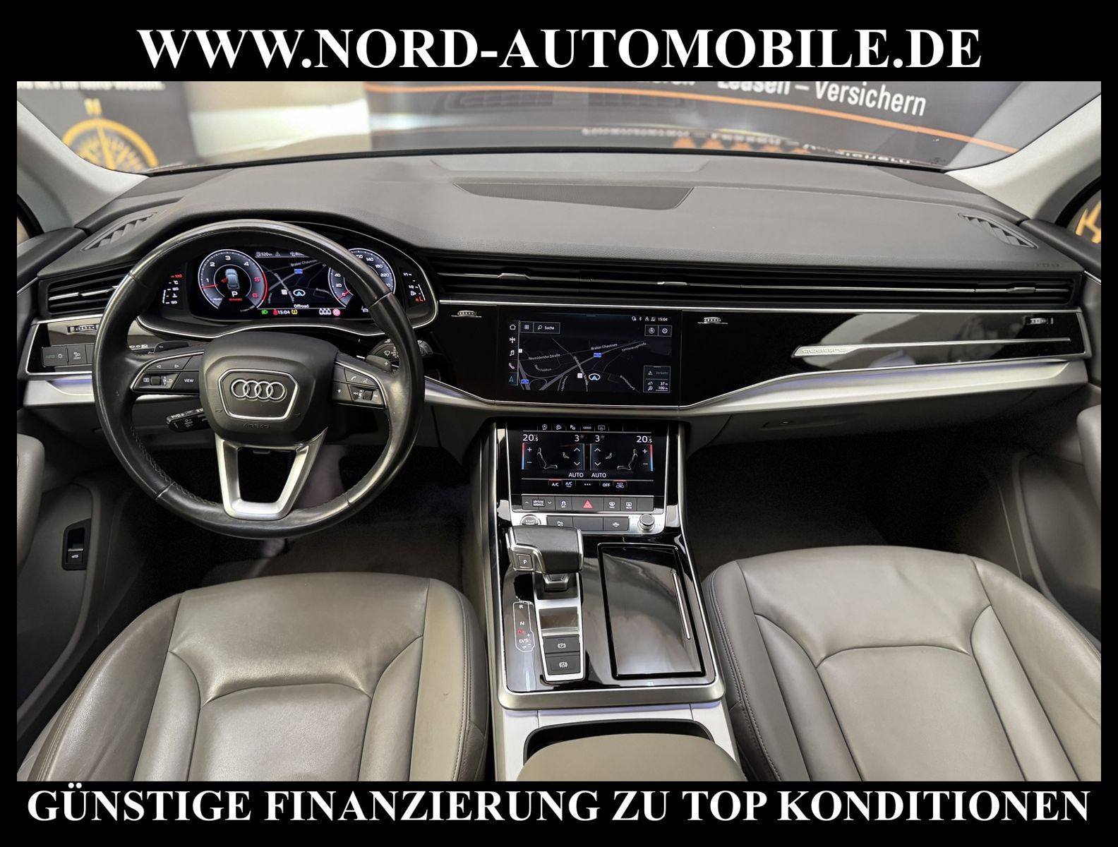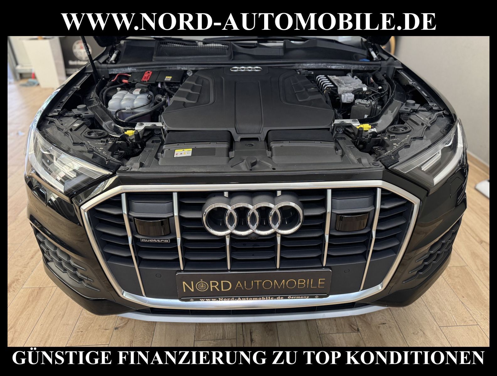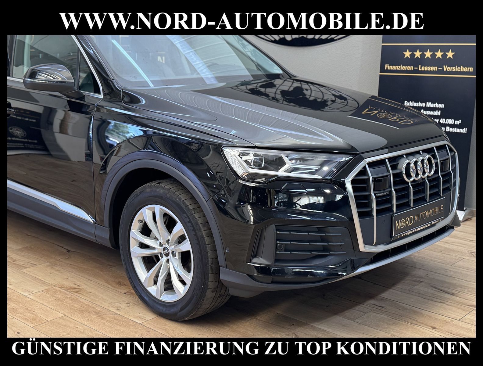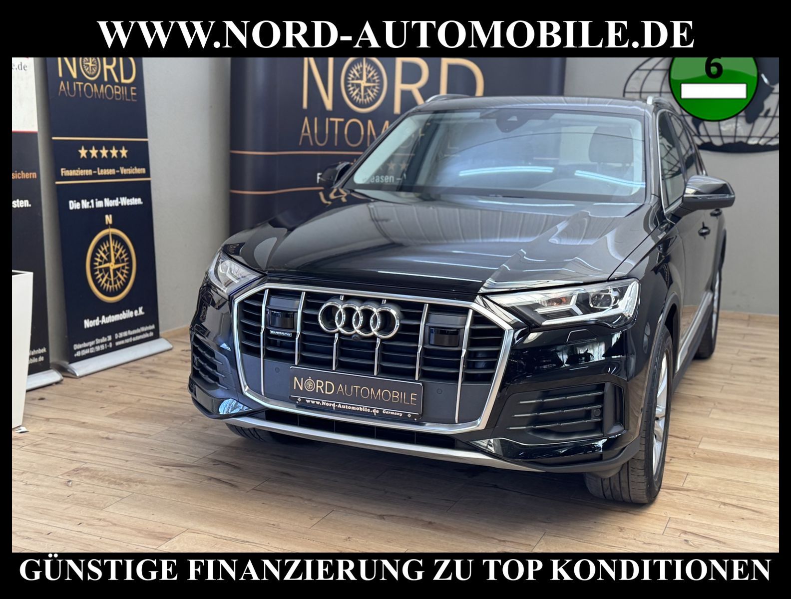 KomfortExtrasUnterhaltungBeschreibungwww.nord-automobile.de Audi Q7 quattro 3.0 50 electric/TDI 210kW 8-Gang Tiptronic 4 TürenAnsprechpartner: Jan Feldhus, Jonathan Steinfeld, Tom Bijman, Simon Wolff, Matthis Ullrich* FAHRZEUG-NUMMER: M-1159-BD * LACKIERUNG: Mythosschwarz Metallic * Modelljahr:2022 * UPE brutto 80.576¤ * MMI Navigation Plus mit MMI Touch * Sitzbezüge in Leder * Kombiinstrument digital (virtual cockpit plus) * Assistenz-Paket Stadt * Geschwindigkeitsbegrenzungsanlage * Rückfahrkamera * Einparkhilfe vorn und hinten, akustisch und optisch mit selektiver Anzeige (APS Plus) * LED-Scheinwerfer * Spurhalteassistent plus Emergency Assist und Stauassistent * City-Notbremsfunktion (Audi pre sense City) * Bluetooth-Freisprecheinrichtung mit Spracherkennung (Audi Phone Box) * Spurwechselassistent * Radioempfang digital (DAB) * Zentralverriegelung ''Keyless-Go'' ohne Safesicherung * Audi Sound-System * Adaptiver Geschwindigkeitsassistent mit Geschwindigkeitsbegrenzer, Effizienz-, Ausweich- und Abbiegeassistent * 4-Zonen-Komfortklimaautomatik * Vordersitze elektrisch einstellbar * Lederlenkrad im 3-Speichen-Design mit Multifunktion plus und Lenkradheizung * Rücksitzlehne geteilt umklappbar, mit Lehnenneigungseinstellung * Fernlichtassistent * Außenspiegel elektr. verstell-, heiz- und anklappbar, mit Abblendautomatik und Bordsteinautomatik * Servolenkung * Airbag Beifahrerseite abschaltbar * Audi Drive Select * Start/Stop-Anlage * Wegfahrsperre (elektronisch) * Gepäckraumklappe elektr. betätigt (öffnen + schliessen) * Reifendruck-Kontrollsystem * Aluminium-Gussräder im 10-Speichen- Design, Größe 8, 5 J x 19 * Nord-Automobile - Ihr starker und kompetenter Partner seit über 30 Jahren * Wir bieten Ihnen eine günstige Finanzierung auch ohne Anzahlung über die * AutoEuropaBank - Zweigniederlassung der Volkswagen Bank GmbH an * 20 XXL-Fotografien dieses Fahrzeuges finden Sie unter www.nord-automobile.de * Gerne unterbreiten wir Ihnen ein Angebot zum Ankauf Ihres bisherigen Fahrzeuges * Beim Export-Geschäft führen wir die Ausfuhranmeldung und Zulassung für Sie durch * Wir sind Meister-Werkstatt und zertifizierte GTÜ-Prüfstelle * Lernen Sie uns kennen - wir freuen uns auf Ihren Besuch * Keine Haftung für Druck & Schreibfehler. ... Klima, Klimaautomatik, Automatik, Leder, Navigationssystem, Allrad, ESP, ABS, Distronic, Multifunktionslenkr., Soundsystem, Tel. m. Freisprech., Bordcomputer, Spiegel beheizbar, elektr. Fensterheber vorn, elektr. WFS, ZV mit Fernb., Fahrerairb., Beifahrerairb., Leichtmetallfelgen, Nichtraucher, Servolenkung, abklappb. Spiegel, Schadstoffklasse: Euro 6, Diesel, 4x4-Antrieb, Lederlenkrad, HSN 0588, TSN BNJ, Verbrauch: 7,1/8,8/6,1 l/100 km (komb/inn/auß), CO2: 187 g/km, HU + AU wird vor Verkauf erneuert, Feinstaubplakette: 4 - Grün |