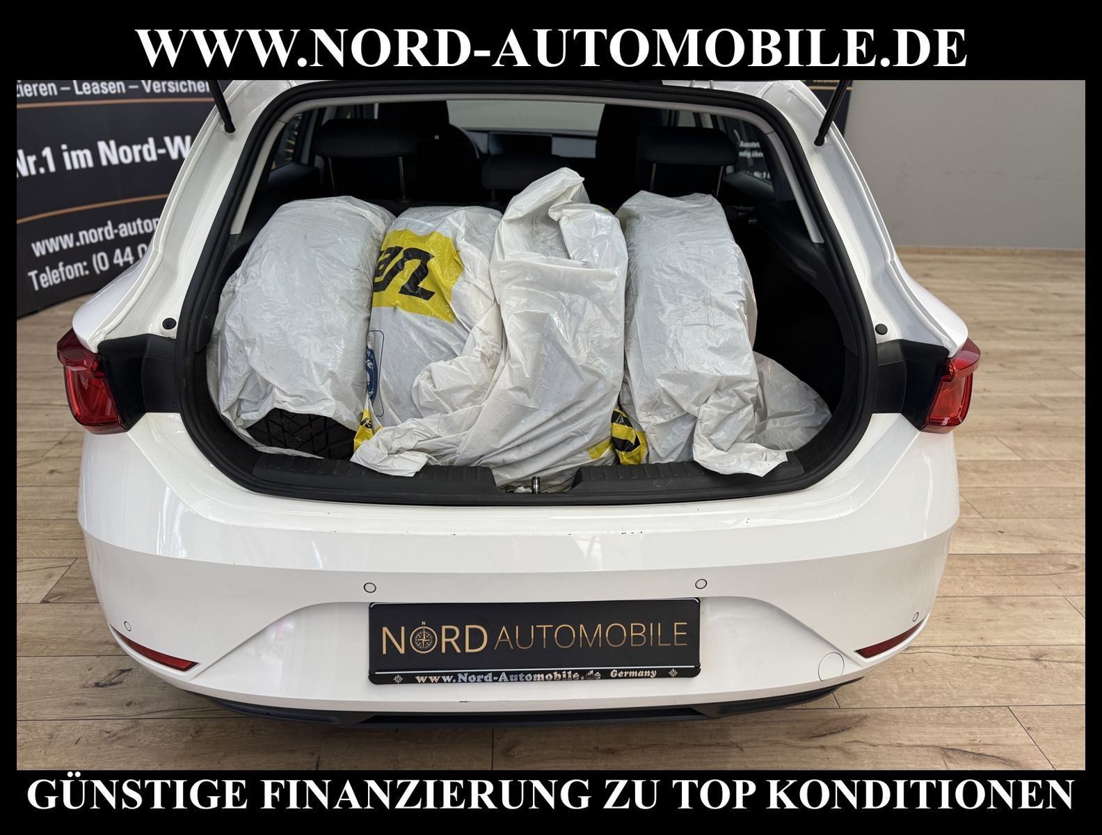 KomfortExtrasUnterhaltungBeschreibungwww.nord-automobile.de Seat Leon Reference 2.0 TDI 85kW 6-Gang 4 TürenAnsprechpartner: Jan Feldhus, Jonathan Steinfeld, Tom Bijman, Simon Wolff, Matthis Ullrich* FAHRZEUG-NUMMER: M-7812-BD * LACKIERUNG: ''Candy'' Weiss * Modelljahr:2023 * UPE netto 25.147, 06 ¤ * Deutsche Auslieferung * Schadstoffarm nach Abgasnorm Euro 6d * Navigationssystem * Sitzheizung für Vordersitze getrennt regelbar * Telefonvorbereitung für Handy * LED Scheinwerfer * Müdigkeitserkennung * Anhängevorrichtung mechanisch schwenkbar und elektrisch auslösbar * Kombiinstrument digital (virtual cockpit) * Mit Ausweichunterstützung mit Abbiegeassistent * Umfeldbeobachtungssystem (Front assist) mit City-Notbremsfunktion * Spurhalteassistent * Ultraschall-Einparkhilfe hinten * Zentralverriegelung / Startanlage Keyless Go (Start-Stop-Knopf) * Mirror Link plus Wireless ''App'' plus RSE (Vorbereitung) * Klimaautomatik * Digitaler Radioempfang * Geschwindigkeitsregelanlage plus Speed-Limiter * Ledermultifunktionslenkrad, beheizbar * Rücksitzbank ungeteilt, Lehne geteilt umlegbar * Höheneinstellung, manuell, li.Vordersitz * Winterpaket: Sitzheizung vorne, Scheinwerfer-Reinigungsanlage, beheizbare Scheibenwaschdüsen, beheizbare Aussenspiegel * Kindersitzverankerung für Kindersitzsystem I-Size, 2 x top tether und Kindersitzverankerung vorn BF-Seite * Scheiben seitlich und hinten in Wärmeschutzverglasung * Fensterheber mit Komfortschaltung und Abschaltsicherung * Wegfahrsperre (elektronisch) * Servolenkung, geschwindigkeitsabhängig (Servotronic) * Reifendruckkontrolle * Seitenairbag vorn, mit Kopfairbag und Interaktionsairbag vorn * Start/Stopp-Anlage mit Rekuperation * Airbag FS und BFS, ohne Knieairbag, mit BFS-Deaktivierung * Außenspiegel elektr. einstellbar, separat beheizbar * Nord-Automobile - Ihr starker und kompetenter Partner seit über 30 Jahren * Wir bieten Ihnen eine günstige Finanzierung auch ohne Anzahlung über die * AutoEuropaBank - Zweigniederlassung der Volkswagen Bank GmbH an * 20 XXL-Fotografien dieses Fahrzeuges finden Sie unter www.nord-automobile.de * Gerne unterbreiten wir Ihnen ein Angebot zum Ankauf Ihres bisherigen Fahrzeuges * Beim Export-Geschäft führen wir die Ausfuhranmeldung und Zulassung für Sie durch * Wir sind Meister-Werkstatt und zertifizierte GTÜ-Prüfstelle * Lernen Sie uns kennen - wir freuen uns auf Ihren Besuch * Keine Haftung für Druck & Schreibfehler. ... Klima, Klimaautomatik, Navigationssystem, Sitzheiz. vorn, ESP, ABS, Multifunktionslenkr., Radio, Tel. m. Freisprech., Tempomat, Spiegel beheizbar, elektr. Fensterheber vorn, elektr. WFS, Keyless-Go, ZV mit Fernb., Fahrerairb., Beifahrerairb., Seitenairbag vorn, Kopfairbags, Nichtraucher, Anhaengerk., Servolenkung, elektr. verstellb. Spiegel, Sitzheizung, Waermeschutzvergl., aus erster Hand, Schadstoffklasse: Euro 6, Diesel, Frontantrieb, Lederlenkrad, HSN 7593, TSN ASD, Verbrauch: 4,0/5,1/3,3 l/100 km (komb/inn/auß), CO2: 115 g/km, HU + AU wird vor Verkauf erneuert, Feinstaubplakette: 4 - Grün |