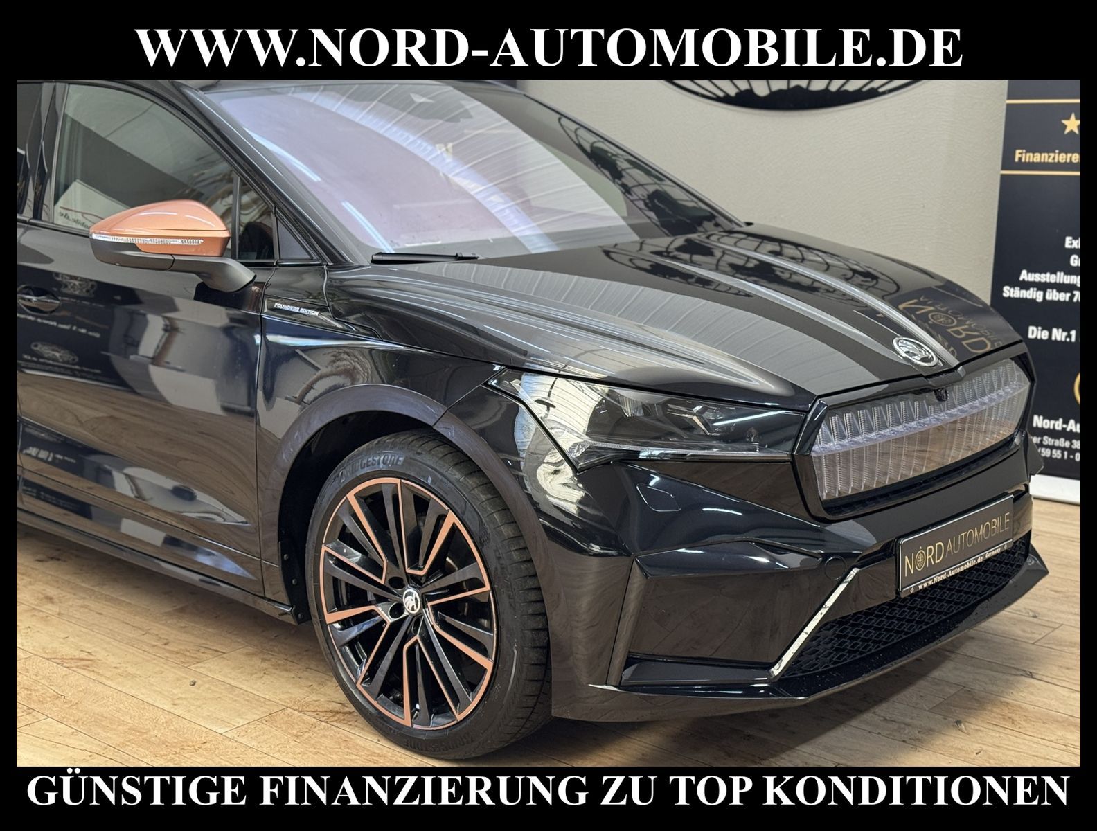 Skoda Enyaq iV 80 *FOUNDERS EDITION*Ansprechpartner: Jan Feldhus, Jonathan Steinfeld, Tom Bijman, Simon Wolff, Matthis Ullrich* FAHRZEUG-NUMMER: MW-8982 * LACKIERUNG: black magic metallic * LIMITIERTES SONDERMODELL (einer von 1.895 Stück) * Elektromotor 150 kW (cont. 70 kW) * Wärmepumpe * Hochvolt-Batterie 82 kWh * Schnellladevorrichtung (CCS-Ladedose) * iV Universal Charger 11 kW * DC/DC Wandler 3, 0 KW * Desingpaket Suite für Founders * Technology-Paket * Convenience-Paket * Komfort-Paket * Infotainment-Paket * Kombiinstrument digital (virtual cockpit) * Audio-Navigationssystem mit Media und Internet Paket * Verkehrszeichenerkennung * Radioempfang digital (DAB+) * Sprachsteuerung für Infotainment-System * SmartLink (Apple CarPlay und Android Auto) * Komfort telefonie mit LTE und wireless charging * Climatronic (3-Zonen) mit Klimabedienteil hinten * elektrische Luftzusatzheizung * Panorama Grossdach-System * Sitzbezug / Polsterung: Leder * Sitzheizung vorn * Sitzheizung hinten * Matrix LED-Scheinwerfer mit variabler Lichtverteilung * Heckleuchten LED mit dynamischem Blinklicht * Crystal Grill (beleuchteter Grill) * Leichtmetallräder ''AQUARIUS'' bicolor schwarz/Kupfer, lackiert 8 1/2J x 21 vorn, mit 9J x 21 hinten * Fahrprofilauswahl * Sportfahrwerk * automatische Distanzregelung ACC (mit follow to stop) und Speed-Limiter * Einparkhilfe vorn und hinten * Kamerasystem 360° Area View * Rückfahrkamera * Schlüsselloses Schließ- und Startsystem ''Keyless Advanced'' * elektrische Heckklappe * heizbares Multifunktions-Lederlenkrad mit Schaltfunktion * Dynamiklenkung * Spurhalteassistent plus Emergency Assist und Stauassistent * Spurwechselassistent * Ausweichunterstützung mit Abbiegeassistent * Klimakomfortscheibe * Seitenscheiben hinten und Heckscheibe abgedunkelt (SunSet) * Diebstahlalarmanlage mit Innenraumüberwachung * Sitzeinstellung, elektrisch für beide Vordersitze mit Memory * Lendenwirbelstütze, elektr. einstellbar in Vordersitzlehnen und Massagefunktion links * Müdigkeitserkennung * Mittelarmlehne * Rücksitzbank ungeteilt, Lehne geteilt umlegbar mit Mittelarmlehne * Dachreling * Ambientebeleuchtung innen * Ambientebeleuchtung außen, leuchtende Stylingelement seitlich und vorn * Außenspiegel elektrisch anklapp-/abblend-/einstellbar, separat beheizbar * Innenspiegel mit Abblendautomatik * Scheibenwaschdüsen heizbar * Scheinwerfer-Reinigungsanlage (SRA) * Scheibenwischer-Intervallschaltung mit Licht/Regensensor * Kindersitzverankerung für Kindersitzsystem ISO FIX vorn und hinten * Fensterheber elektrisch vorn + hinten * Zentralverriegelung Keyless Entry mit Fernbedienung * Airbag Fahrer und Beifahrerseite * Airbag Beifahrerseite abschaltbar * Kopf-Airbag-System * Seitenairbag vorn * Seitenairbag vorn mitte (Center-Airbag) * Akustischer Fußgängerschutz, Außensound (e-sound) * Front Assist mit Warnen und Bremsen auf Fahrzeuge, Fußgänger und Radfahrer * Berganfahr-Assistent (Hill-Holder) * Multikollisionsbremse (Multi Collision Brake) * Reifendruckkontrolle * Start/Stopp-Anlage mit Rekuperation * Getriebe für Elektrofahrzeug * Nord-Automobile - Ihr starker und kompetenter Partner seit über 20 Jahren * Wir bieten Ihnen eine günstige Finanzierung auch ohne Anzahlung über die * AutoEuropaBank - Zweigniederlassung der Volkswagen Bank GmbH an * 20 XXL-Fotografien dieses Fahrzeuges finden Sie unter www.nord-automobile.de * Gerne unterbreiten wir Ihnen ein Angebot zum Ankauf Ihres bisherigen Fahrzeuges * Beim Export-Geschäft führen wir die Ausfuhranmeldung und Zulassung für Sie durch * Wir sind Meister-Werkstatt und zertifizierte DEKRA-Prüfstelle * Lernen Sie uns kennen - wir freuen uns auf Ihren Besuch * Keine Haftung für Druck & Schreibfehler. ... Klima vorn+hinten, Klimaautomatik, Automatik, Leder, Navigationssystem, Sitzheiz. vorn, Sitzheiz. hinten, Regensensor, Vorders. elekt. verstellb., ESP, ASR, ABS, Schiebedach elek., Distronic, Parktronic System, Multifunktionslenkr., Radio, Bordcomputer, Tempomat, Spiegel autom. abblendbar, Spiegel beheizbar, elektr. Fensterheber vorn+hinten, Alarm, elektr. WFS, Keyless-Go, ZV mit Fernb., Fahrerairb., Beifahrerairb., Seitenairbag vorn, Kopfairbags, Leichtmetallfelgen, Nichtraucher, Servolenkung, Sportfahrwerk, Spoiler, Traktionskontr., Sitzbank teilbar, Lenksaeule einstellbar, Dachreling, abklappb. Spiegel, elektr. verstellb. Spiegel, Kopfst. vorn, Heckscheibenw., Gepaeckraumabd., Aluoptik, Mittelarmlehne, Lendenwirbelst., Sitzhoehenv., elekt. verstellb. Fahrersitz, Sitzheizung, Waermeschutzvergl., 12 V Zusatzanschluss, aus erster Hand, Heckantrieb, Lederle |