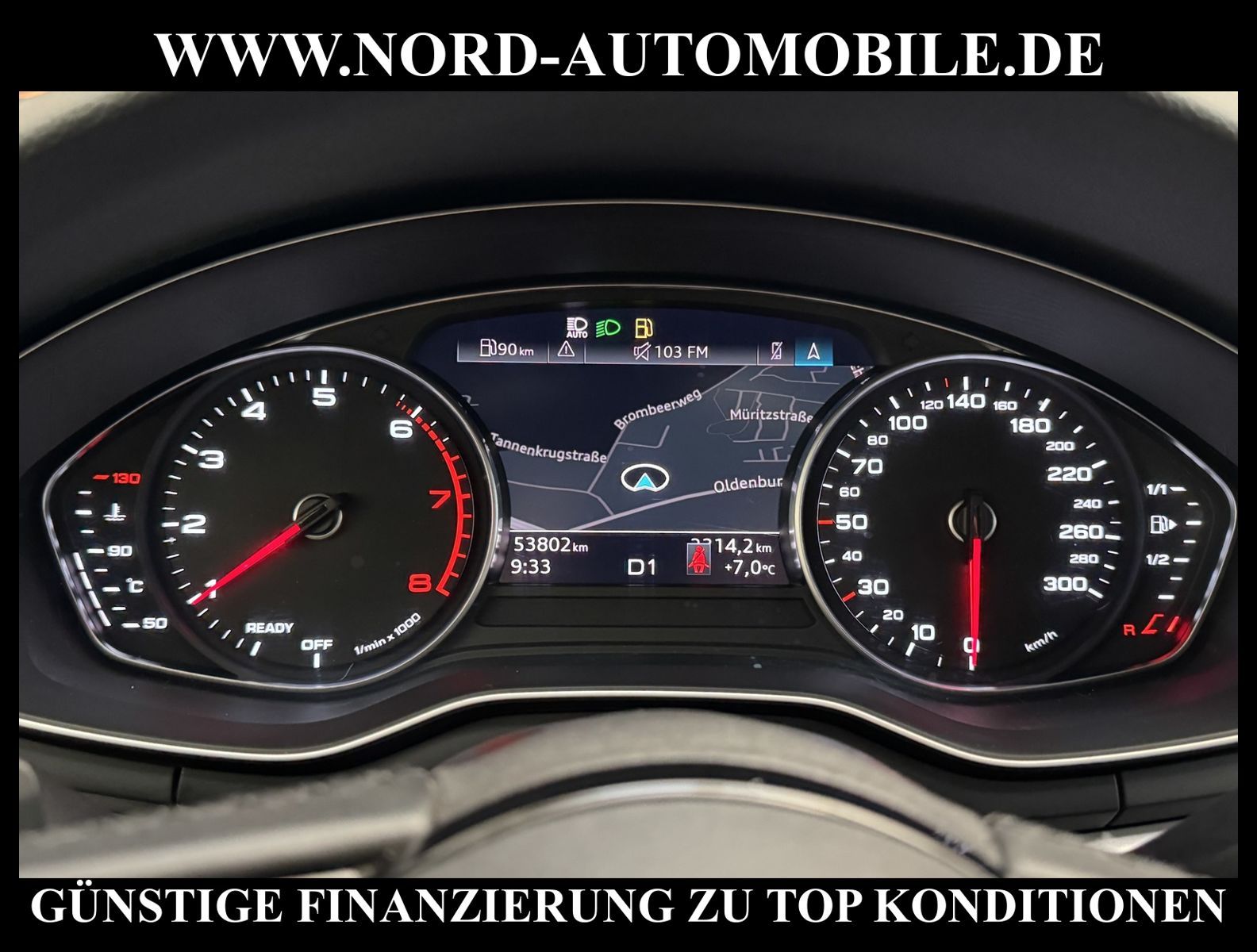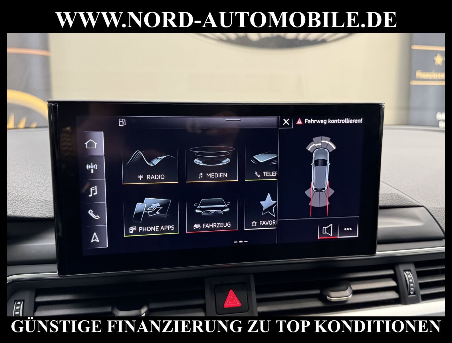 KomfortExtrasUnterhaltungBeschreibungwww.nord-automobile.de AUDI A4 AvantAnsprechpartner:Jan Feldhus, Jonathan Steinfeld, Tom Bijman, Simon Wolff, Matthis Ullrich, Andreas Cirja* FAHRZEUG-NUMMER: M-1200-BD * LACKIERUNG:Mythosschwarz Metallic * Deutsche Auslieferung * Mdelljahr:2022 * UPE brutto 45.261 ¤ * Abgaskonzept, EU6 AP * Audi Smartphone Interface * Einparkhilfe plus * Sonnenschutzrollo für Seitenscheiben hinten * Sitzheizung für Vordersitze getrennt regelbar * Navigationsgerät-High * Telefonvorbereitung für Handy * Digitaler Radioempfang * Einparkhilfe vorn und hinten * Multifunktionsanzeige/Bordcomputer''TOP'' * Geschwindigkeitsregelanlage plus Speed-Limiter * LED-Scheinwerfer * Komfortschlüssel inkl. sensorgesteuerterGepäckraumentriegelung inkl. Gepäckraum-klappe elektrisch öffnend und schließend * Ledersportmultifunktionslenkrad * Höheneinstellung, manuell, für Vordersitze * Rücksitzbank ungeteilt, Lehne geteilt umlegbar (dreiteilig) mit Mittelarmlehne * Zentralverriegelung ''Keyless-Entry''ohne Safesicherung * Servoschließung Heckklappe * Glas im Fond dunkel eingefärbt(Venus 35/ Privacy)vorn Wärmeschutzglas (grün) * Fernlichtassistent * Sicherheitsinnenspiegel automatisch abblendbar * Airbag FS und BFS, ohne Knieairbag, mit BFS-Deaktivierung * Außenspiegel, automatisch abblendbar elektrisch anklapp-/einstell-/beheizbar * Reifendruckkontrolle * Start/Stopp-Anlage mit Rekuperation * Leichtmetallräder 7 1/2J x17 * 7-Gang-Automatikgetriebe * Nord-Automobile - Ihr starker und kompetenter Partner seit über 30 Jahren * Wir bieten Ihnen eine günstige Finanzierung auch ohne Anzahlung über die * AutoEuropaBank - Zweigniederlassung der Volkswagen Bank GmbH an * 20 XXL-Fotografien dieses Fahrzeuges finden Sie unter www.nord-automobile.de * Gerne unterbreiten wir Ihnen ein Angebot zum Ankauf Ihres bisherigen Fahrzeuges * Beim Export-Geschäft führen wir die Ausfuhranmeldung und Zulassung für Sie durch * Wir sind Meister-Werkstatt und zertifizierte GTÜ-Prüfstelle * Lernen Sie uns kennen - wir freuen uns auf Ihren Besuch * Keine Haftung für Druck & Schreibfehler. ... Klima, Klimaautomatik, Automatik, Navigationssystem, Sitzheiz. vorn, Regensensor, ESP, ABS, Parktronic System, Multifunktionslenkr., Radio, Bordcomputer, Tempomat, Spiegel autom. abblendbar, Spiegel beheizbar, elektr. Fensterheber vorn, elektr. WFS, Keyless-Go, Beifahrerairb., Seitenairbag vorn, Kopfairbags, Leichtmetallfelgen, Nichtraucher, Servolenkung, Sitzbank teilbar, Dachreling, abklappb. Spiegel, elektr. verstellb. Spiegel, Kopfst. vorn, Mittelarmlehne, Sitzheizung Fahrer + Beif., Lichtsensor, Waermeschutzvergl., aus erster Hand, Schadstoffklasse: Euro 6, Frontantrieb, Lederlenkrad, HSN 0588, TSN BNW, Verbrauch: 6,0/7,5/5,1 l/100 km (komb/inn/auß), CO2: 145 g/km, Partikelfilter, HU + AU wird vor Verkauf erneuert, Feinstaubplakette: 4 - Grün |
