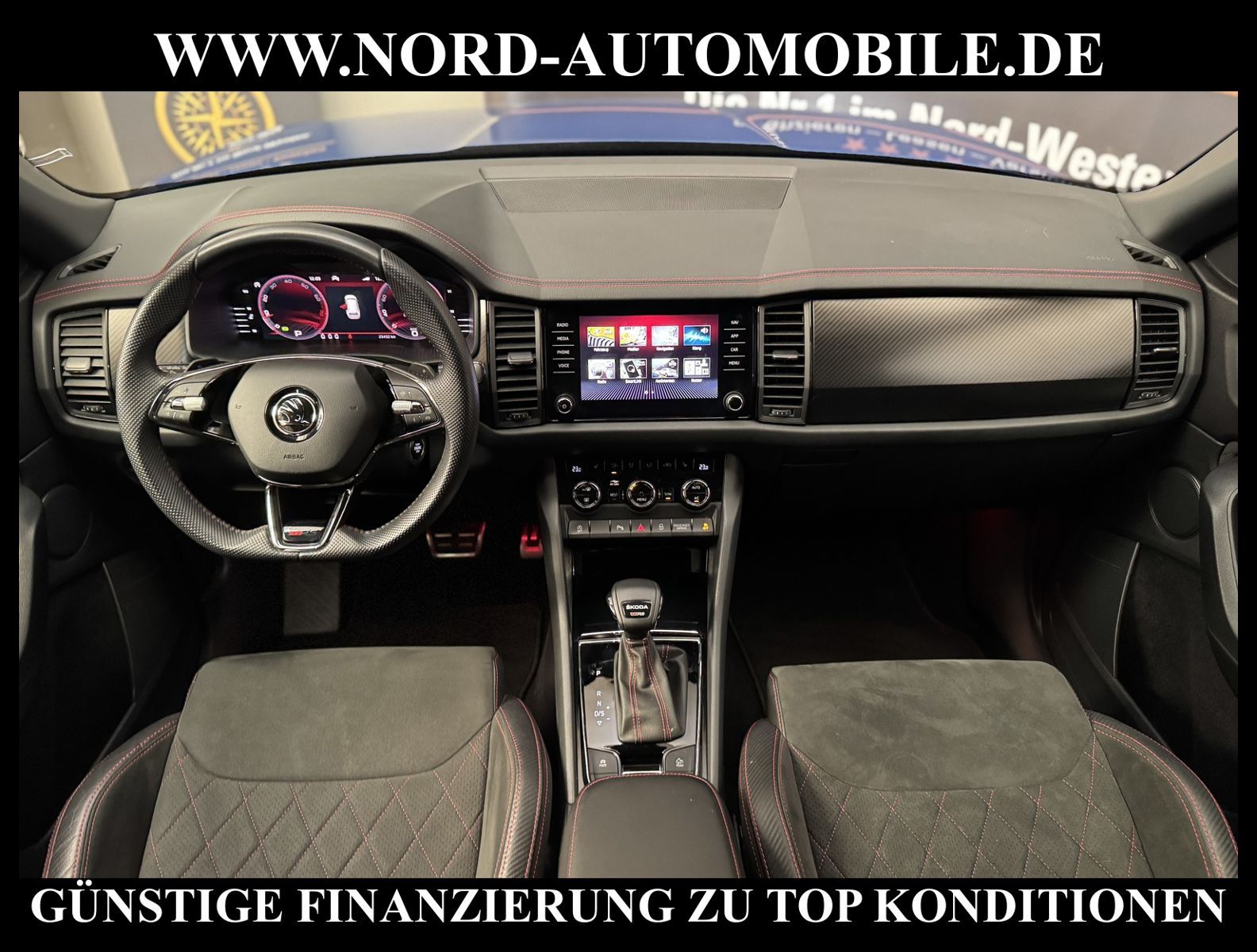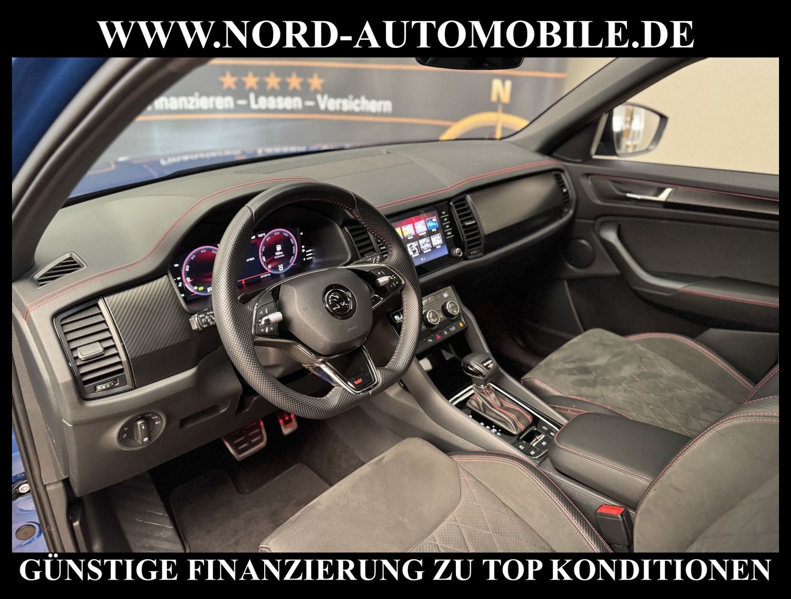 KomfortExtrasUnterhaltungBeschreibungwww.nord-automobile.de SKODA KODIAQ RSAnsprechpartner:Jan Feldhus, Jonathan Steinfeld, Tom Bijman, Simon Wolff, Matthis Ullrich, Andreas Cirja* FAHRZEUG-NUMMER: 9512-BD * LACKIERUNG: Race-Blau Metallic * Modelljahr2024 * Abgaskonzept, EU6 AP * UPE brutto 56.359 ¤ * Deutsche Auslieferung * Zentralverriegelung ''Keyless-Go''ohne Safesicherung * Anhängevorrichtung mechanisch schwenkbar und elektrisch auslösbar * Dekor-Einlagen, Carbon * Virtual Cockpit * Mit Rückfahrkamerasystem * Sprachsteuerung * Digitaler Radioempfang * Einparkhilfe vorn und hinten * Matrix-Beam * Wired & Wireless App-Connect * Geschwindigkeitsregelanlage plus Speed-Limiter * LED-Scheinwerfer * Front Assist inkl. City ANB ohne ACC * Mit Elektrische Lenksäulenverriegelung(ELV) * Sitzheizung für Vordersitze getrennt regelbar * Ledersportmultifunktionslenkrad mit Tiptronic * Sitzeinstellung, elektrisch für beide Vordersitze mit Memory * Lendenwirbelstütze, elektr. einstellbar in Vordersitzlehnen * Sicherheitsinnenspiegel automatisch abblendbar * Leuchtweitenregulierung, autom/dynamisch mit Kurvenfahrlicht (AFS 1) * Scheibenwischer-Intervallschaltung mit Licht/Regensensor * Airbag FS und BFS, Knieairbag auf FS und BFS, mit BFS-Deaktivierung * Dynamiklenkung * Leichtmetallräder 8J x 20 * Außenspiegel mit Memoryfunktion automatisch abblendbar, elektrisch anklapp-/einstellbar, separat beheizbar * Reifendruckkontrolle * Start/Stopp-Anlage mit Rekuperation * 7-Gang-Automatikgetriebe für Allrad * Nord-Automobile - Ihr starker und kompetenter Partner seit über 30 Jahren * Wir bieten Ihnen eine günstige Finanzierung auch ohne Anzahlung über die * AutoEuropaBank - Zweigniederlassung der Volkswagen Bank GmbH an * 20 XXL-Fotografien dieses Fahrzeuges finden Sie unter www.nord-automobile.de * Gerne unterbreiten wir Ihnen ein Angebot zum Ankauf Ihres bisherigen Fahrzeuges * Beim Export-Geschäft führen wir die Ausfuhranmeldung und Zulassung für Sie durch * Wir sind Meister-Werkstatt und zertifizierte GTÜ-Prüfstelle * Lernen Sie uns kennen - wir freuen uns auf Ihren Besuch * Keine Haftung für Druck & Schreibfehler. ... Klima, Klimaautomatik, Automatik, Navigationssystem, Allrad, Sitzheiz. vorn, Regensensor, Sitz m. Memory-Funktion, Vorders. elekt. verstellb., ESP, ASR, ABS, Parktronic System, Multifunktionslenkr., Radio, Bordcomputer, Tempomat, Spiegel autom. abblendbar, Spiegel beheizbar, Scheinwerferreinigung, elektr. Fensterheber vorn+hinten, elektr. WFS, ZV mit Fernb., Fahrerairb., Beifahrerairb., Seitenairbag vorn, Kopfairbags, Leichtmetallfelgen, elektr. Fahrwerksregelung, Nichtraucher, Anhaengerk., Nebelscheinw., Servolenkung, Sportsitze/Schalensitze, Spoiler, Traktionskontr., Lenksaeule einstellbar, Dachreling, abklappb. Spiegel, elektr. verstellb. Spiegel, Kopfst. vorn, Kopfst. hinten, Gurtstraffer, Heckscheibenw., 3.Bremsl., Nebelschlussl., Scheibenbr., Mittelarmlehne, Lendenwirbelst., Sitzhoehenv., elekt. verstellb. Fahrersitz, Sitzheizung Fahrer + Beif., Lichtsensor, Waermeschutzvergl., 12 V Zusatzanschluss, aus erster Hand, Schadstoffklasse: Euro 6, 4x4-Antrieb, Lederlenkrad, Lederschaltknauf, HSN 8004, TSN AXH, Verbrauch: 7,4/9,5/6,2 l/100 km (komb/inn/auß), CO2: 192 g/km, Partikelfilter, HU + AU wird vor Verkauf erneuert, Feinstaubplakette: 4 - Grün |