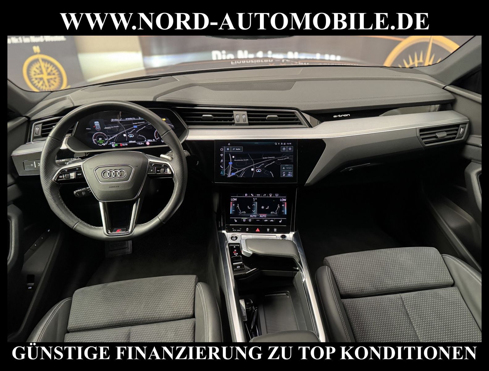 KomfortExtrasUnterhaltungBeschreibungwww.nord-automobile.de Audi e-tronAnsprechpartner:Jan Feldhus, Jonathan Steinfeld, Tom Bijman, Simon Wolff, Matthis Ullrich, Andreas Cirja* FAHRZEUG-NUMMER: M-4237-BD * LACKIERUNG: Taifungrau Metallic * Deutsche Auslieferung * Modelljahr:2022 * UPE brutto 89.899 ¤ * Mit Batteriezertifikat! * Batteriekapazität (brutto)71 kWh * S-Line * Assistenzpaket Tour * Assistenzpaket Stadt * 4 Corner Luftfederung mit elektrisch geregelter Dämpfung * Navigationsgerät-High * Parklenkassistent * Spurwechselassistent * Head-up-Display * Kreuzungsassistent * Audi virtual cockpit plus * Sportsitze vorn * Audi Smartphone Interface * Matrix-Beam * Automatische Distanzregelung * Anhängevorrichtung, abnehmbar und abschließbar * Spurhalteassistent plus Emergency Assist und Stauassistent * Zentralverriegelung ''Keyless-Entry''ohne Safesicherung * Sitzheizung für Vordersitze getrennt regelbar * Mit Verkehrszeichenerkennung * Digitaler Radioempfang * Matrix LED-Scheinwerfer mit dynamischer Lichtinszenierung und dynamischem Blinklicht * Komfortschlüssel inkl. sensorgesteuerterGepäckraumentriegelung * Vordersitze elektrisch einstellbar inklusive Memory-Funktion für den Fahrersitz * Matrix LED-Scheinwerfer und LED-Heckleuchten * Lendenwirbelstütze, elektr. einstellbar in Vordersitzlehnen * Sitzeinstellung elektrisch, für beide Vordersitze, Fahrersitz mit Memory * Lenksäule, axial u.vertikal einstellbar * Glas im Fond dunkel eingefärbt(Venus 35/ Privacy)vorn Wärmeschutzglas (grün) * Sportlederlenkrad mit Multifunktion, Schaltwippen und Lenkradheizung * Radschrauben mit Diebstahlsicherung plus Radlöseerkennung * Sicherheitsinnenspiegel automatisch abblendbar * Außenspiegel mit Memoryfunktion automatisch abblendbar, elektrisch anklapp-/einstell-/beheizbar * Airbag FS und BFS, ohne Knieairbag, mit BFS-Deaktivierung * Räder, 5-Arm-Dynamik, graphitgrau, glanzgedreht, 9, 0Jx20, Reifen 255/50 R20 * Servoschließung Heckklappe * Reifendruckkontrolle * Nord-Automobile - Ihr starker und kompetenter Partner seit über 30 Jahren * Wir bieten Ihnen eine günstige Finanzierung auch ohne Anzahlung über die * AutoEuropaBank - Zweigniederlassung der Volkswagen Bank GmbH an * 20 XXL-Fotografien dieses Fahrzeuges finden Sie unter www.nord-automobile.de * Gerne unterbreiten wir Ihnen ein Angebot zum Ankauf Ihres bisherigen Fahrzeuges * Beim Export-Geschäft führen wir die Ausfuhranmeldung und Zulassung für Sie durch * Wir sind Meister-Werkstatt und zertifizierte GTÜ-Prüfstelle * Lernen Sie uns kennen - wir freuen uns auf Ihren Besuch * Keine Haftung für Druck & Schreibfehler. ... Klima vorn+hinten, Klimaautomatik, Automatik, Navigationssystem, Allrad, Sitzheiz. vorn, Sitz m. Memory-Funktion, Vorders. elekt. verstellb., ESP, Distronic, Parktronic System, Multifunktionslenkr., Radio, Soundsystem, Bordcomputer, Tempomat, Spiegel autom. abblendbar, Spiegel beheizbar, Scheinwerferreinigung, elektr. Fensterheber vorn, elektr. WFS, Keyless-Go, ZV mit Fernb., Fahrerairb., Beifahrerairb., Seitenairbag vorn, Kopfairbags, Leichtmetallfelgen, Nichtraucher, Anhaengerk., Sportsitze/Schalensitze, Spoiler, Sitzbank teilbar, abklappb. Spiegel, elektr. verstellb. Spiegel, Kopfst. vorn, Gepaeckraumabd., Luftfederung, Aluoptik, Mittelarmlehne, Lendenwirbelst., elekt. verstellb. Fahrersitz, Sitzheizung Fahrer + Beif., Waermeschutzvergl., 12 V Zusatzanschluss, aus erster Hand, 4x4-Antrieb, Lederlenkrad, HSN 0588, TSN BSK, HU + AU wird vor Verkauf erneuert, Standklima |