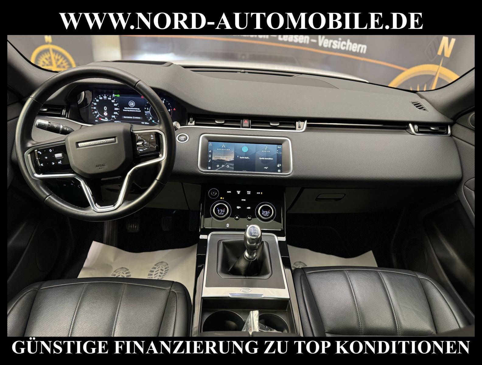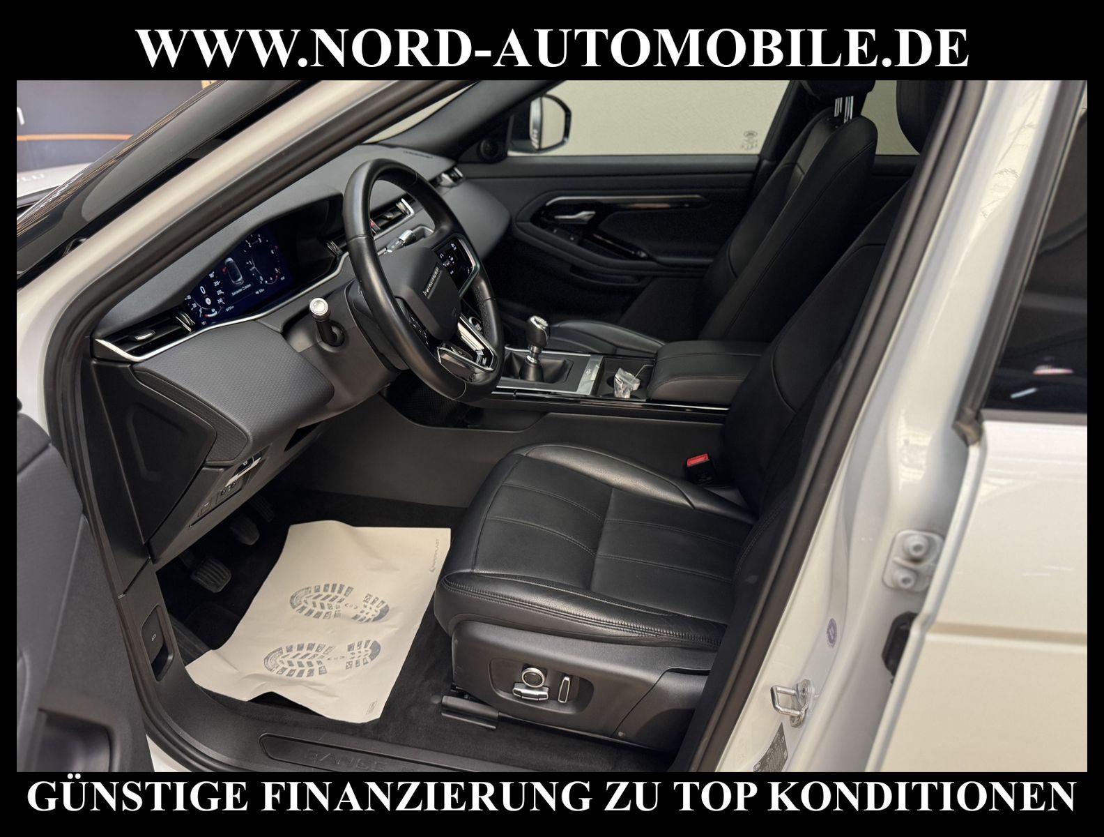 Range Rover Evoque D165Ansprechpartner: Jan Feldhus, Jonathan Steinfeld, Tom Bijman, Simon Wolff, Matthis Ullrich* FAHRZEUG-NUMMER: MW-9075-BD * LACKIERUNG: fuji white / Dach in Kontrastlackierung - schwarz * deutsches Fahrzeug * Abgaskonzept, Euro6 ehem.UPE: 55.959, -* Head-up Display * Navigationssystem Pivi Pro mit Pro Services * Land Rover Soundsystem (180 W) * Spracheingabesystem * digitaler Radioempfang (DAB+) * Smartphone Schnittstelle (Apple CarPlay & Android Auto) * Bluetooth-Schnittstelle * 2 Zonen Klimaautomatik * Panorama-Schiebedach elektrisch * Sitzbezug / Polsterung: Leder genarbt * Sitzheizung vorn * LED-Scheinwerfer mit LED-Tagfahrlicht * LM-Felgen 17 Zoll * Geschwindigkeitsregelanlage mit Geschwindigkeitsbegrenzer * Multifunktions-Lederlenkrad * Spurhalteassistent (Lane Departure Warning) * Einparkhilfe vorn und hinten * 3D-Surround Kamerasystem * Verglasung hinten abgedunkelt (Privacy Glass) * Sitze vorn höhenverstellbar * Dachhimmel ebony * Regensensor * Innenspiegel mit Abblendautomatik * Außenspiegel elektrisch verstell-, heiz- und anklappbar * Fensterheber elektrisch vorn und hinten * Zentralverriegelung mit Fernbedienung * Airbag Fahrer-/Beifahrerseite * Kopf-Airbag-System vorn und hinten * Dynamische Stabilitätskontrolle (DSC) * Wankneigungskontrolle (Roll Stability Control, RSC) * Aufmerksamkeits-Assistent * Berganfahr-Assistent * autonomer Notbrems-Assistent * Kurvenbremskontrolle (Corner-Brake-Control, CBC) * Reifendruckkontrolle * Start/Stopp-Anlage mit Rekuperation * 6-Gang-Schaltgetriebe * Nord-Automobile - Ihr starker und kompetenter Partner seit über 30 Jahren * Wir bieten Ihnen eine günstige Finanzierung auch ohne Anzahlung über die * AutoEuropaBank - Zweigniederlassung der Volkswagen Bank GmbH an * 20 XXL-Fotografien dieses Fahrzeuges finden Sie unter www.nord-automobile.de * Gerne unterbreiten wir Ihnen ein Angebot zum Ankauf Ihres bisherigen Fahrzeuges * Beim Export-Geschäft führen wir die Ausfuhranmeldung und Zulassung für Sie durch * Wir sind Meister-Werkstatt und zertifizierte DEKRA-Prüfstelle * Lernen Sie uns kennen - wir freuen uns auf Ihren Besuch * Keine Haftung für Druck & Schreibfehler. ... Klima, Klimaautomatik, Leder, Navigationssystem, Sitzheiz. vorn, ESP, ABS, Schiebedach elek., Parktronic System, Multifunktionslenkr., Radio, Soundsystem, Tempomat, Spiegel beheizbar, elektr. Fensterheber vorn, elektr. WFS, ZV mit Fernb., Fahrerairb., Beifahrerairb., Seitenairbag vorn, Kopfairbags, Leichtmetallfelgen, Nichtraucher, Servolenkung, Traktionskontr., elektr. verstellb. Spiegel, Aluoptik, Mittelarmlehne, Sitzheizung, 12 V Zusatzanschluss, aus erster Hand, Diesel, Frontantrieb, Lederlenkrad, Partikelfilter |