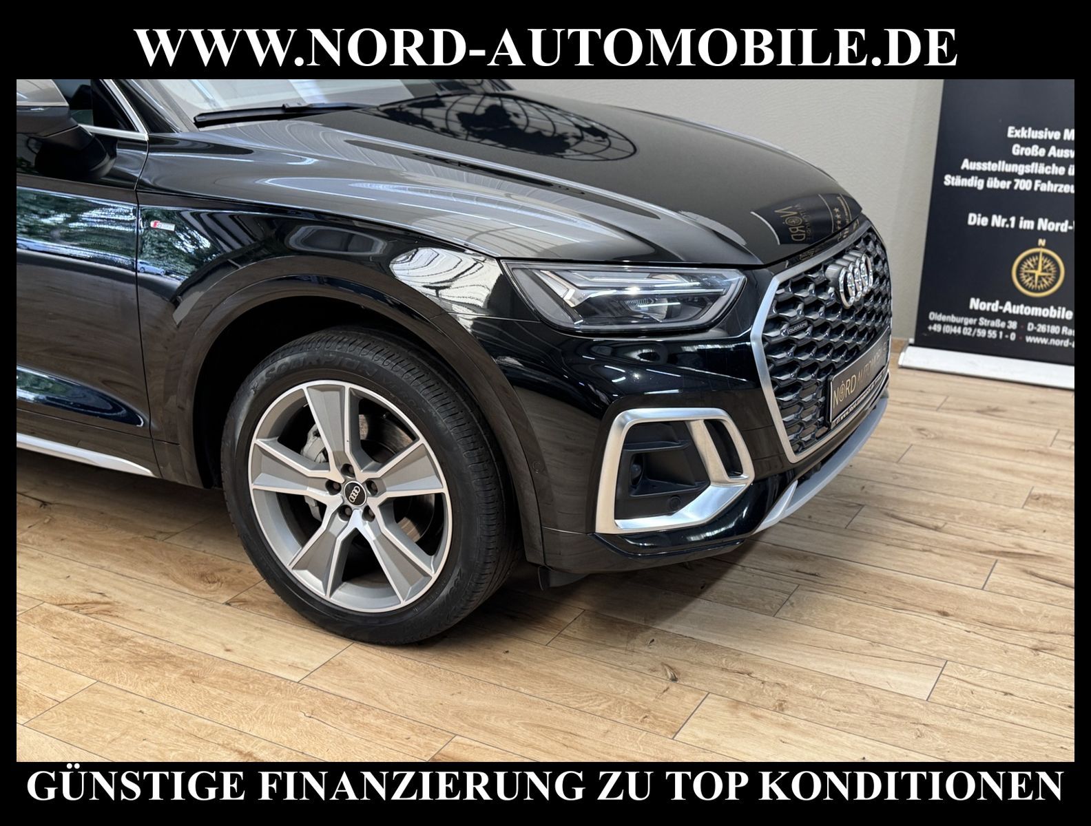 KomfortExtrasUnterhaltungBeschreibungwww.nord-automobile.de Audi Q5 Sportback S line quattro 2.0 40 electric/TDI 150kW 7-Gang S tronic 4 TürenAnsprechpartner: Jan Feldhus, Jonathan Steinfeld, Tom Bijman, Simon Wolff* FAHRZEUG-NUMMER: M-5911-BD * LACKIERUNG: Mythosschwarz Metallic * Modelljahr:2023 * UPE brutto 79, 239 ¤ * Deutsche Auslieferung * S-Line Sportpaket * MMI Navigation Plus mit MMI Touch * Kombiinstrument digital (virtual cockpit plus) * Spurhalteassistent * Farbnähte in Rot Audi Sport * Automatische Distanzregelung (mit follow to stop) und Speed-Limiter * Einparkhilfe vorn und hinten, akustisch und optisch mit selektiver Anzeige (APS Plus) * Bang & Olufsen Premium Sound System mit 3D Klang * Zentralverriegelung ''Keyless-Entry'' * LED Scheinwerfer * Bluetooth-Freisprecheinrichtung mit Spracherkennung (Audi Phone Box) * Spurwechselassistent * Komfort-Klimaautomatik 4-Zonen * Radioempfang digital (DAB) * Mit Front und Rückfahrkamerasystem und zwei Seitenkameras * Anhängerkupplung (Kugelkopf schwenkbar) * Assistenz-Paket Tour: Verkehrszeichenerkennung, Bremsassistent (Audi pre sense front), Stauassistent * Leder Valcona mit Logo-Prägung in Vordersitzlehnen * Sonnenschutzrollo manuell für die Türscheiben hinten * Lederlenkrad im 3-Speichen-Design mit Multifunktion plus * Sitzheizung vorn und hinten * Dachhimmel in Stoff schwarz * Verglasung hinten abgedunkelt (Privacyverglasung) und Türscheiben vorn Akustikglas * Mittelarmlehne vorn * Rücksitzbank (plus) und/oder Lehne geteilt * Sportsitze vorn * Fernlichtassistent * Außenspiegel elektr. verstell-, heiz- und anklappbar, mit Abblendautomatik und Bordsteinautomatik * Servolenkung * Kraftstoffbehälter 70 Liter mit zusätzlichem 24-l-AdBlue-Tank * Diebstahl-Warnanlage + Innenraumabsicherung / Abschleppschutz * Sportfahrwerk * Pedalerie und Fußstütze in Edelstahl * Getriebe 7-Gang - Doppelkupplungsgetriebe S-tronic * Airbag Beifahrerseite abschaltbar * Gepäckraumklappe elektr. betätigt (öffnen + schliessen) * Reifendruck-Kontrollanzeige * Start/Stop-Anlage * Audi Drive Select * Räder Audi Sport, 5-Arm-Offroad, titangrau matt, glanzgedreht, 8, 0Jx20, Reifen 255/45 R20 * Nord-Automobile - Ihr starker und kompetenter Partner seit über 30 Jahren * Wir bieten Ihnen eine günstige Finanzierung auch ohne Anzahlung über die * AutoEuropaBank - Zweigniederlassung der Volkswagen Bank GmbH an * 20 XXL-Fotografien dieses Fahrzeuges finden Sie unter www.nord-automobile.de * Gerne unterbreiten wir Ihnen ein Angebot zum Ankauf Ihres bisherigen Fahrzeuges * Beim Export-Geschäft führen wir die Ausfuhranmeldung und Zulassung für Sie durch * Wir sind Meister-Werkstatt und zertifizierte GTÜ-Prüfstelle * Lernen Sie uns kennen - wir freuen uns auf Ihren Besuch * Keine Haftung für Druck & Schreibfehler. ... Klima, Klimaautomatik, Automatik, Leder, Navigationssystem, Allrad, Sitzheiz. vorn, Sitzheiz. hinten, ESP, ABS, Distronic, Multifunktionslenkr., Soundsystem, Tel. m. Freisprech., Bordcomputer, Spiegel beheizbar, elektr. Fensterheber vorn, elektr. WFS, ZV mit Fernb., Fahrerairb., Beifahrerairb., Leichtmetallfelgen, Nichtraucher, Anhaengerk., Servolenkung, Sportfahrwerk, Sportsitze/Schalensitze, Sitzbank teilbar, abklappb. Spiegel, Mittelarmlehne, Sitzheizung, aus erster Hand, Schadstoffklasse: Euro 6, Diesel, 4x4-Antrieb, Lederlenkrad, HSN 0588, TSN BYS, CO2: 175 g/km, HU + AU wird vor Verkauf erneuert, Feinstaubplakette: 4 - Grün |