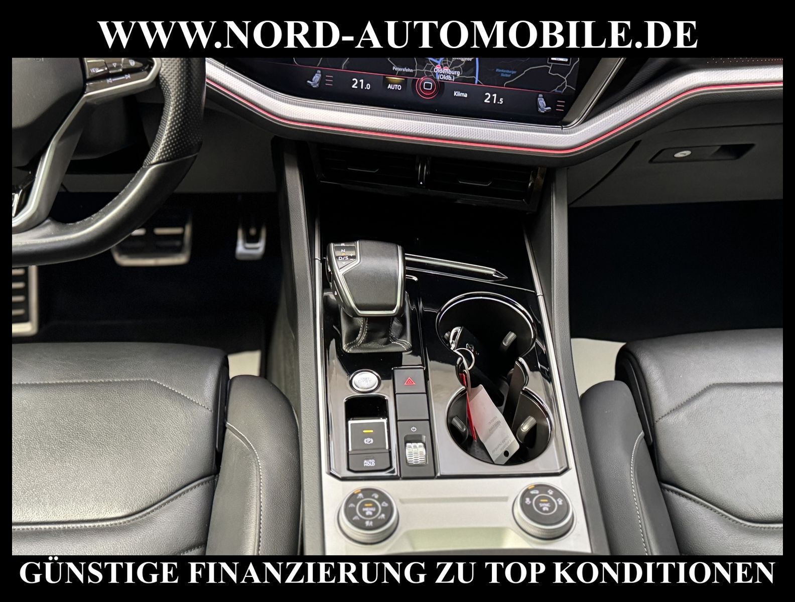 KomfortExtrasUnterhaltungBeschreibungwww.nord-automobile.de Volkswagen Touareg R-Line 4Motion 3.0 TDI SCR 210kW 8-Gang Tiptronic 4 TürenAnsprechpartner: Jan Feldhus, Jonathan Steinfeld, Tom Bijman, Simon Wolff* FAHRZEUG-NUMMER: M-6512-BD * LACKIERUNG: Deep Black Perleffekt * Modelljahr: 2021 * UPE brutto 93.779 ¤ * Deutsche Auslieferung * Abgasnorm Euro 6d-TEMP * R-Line ''Exterieur Black Style'' Volkswagen R * 4 Corner Luftfederung mit elektrisch geregelter Dämpfung * Ausstattung R-Line * LED-Scheinwerfer * Spurwechselassistent * Schlüsselloses Schließ- und Startsystem ''Keyless Access'' mit Safe-Sicherung * Spurhalteassistent plus Emergency Assist und Stauassistent * Rückfahrkamera ''Rear View'' * Parklenkassistent (Park Assist) und PDC vorn und hinten * Panorama-Ausstell-/Schiebedach * Müdigkeitserkennungserkennung * Mirror Link plus Wireless RSE ''App'' * Active Info Display, mehrfarbig, verschiedene Info-Profile wählbar * Autom. Distanzregelung (ACC inkl. Stop&Go-Funktion) - Geschwindigkeitsbegrenzungsanlage * Navigationsgerät-Premium * Innovision Cockpit (Instrumente digital und Bedienung über Touchscreen-Farbdisplay) * Klimaanlage ''Climatronic'' mit 2-Zonen-Temperaturregelung * Verkehrszeichenerkennung * Sitzmittelbahnen und -wangeninnenseiten in Leder ''Vienna'', ''R-Line''-Logo in den Vordersitzen * Sitzheizung für Vordersitze getrennt regelbar * Komfort-Paket Keyless Access * Umfeldbeobachtungssystem (Front assist) mit City-Notbremsfunktion * 2 USB-C-Schnittstellen vorn, 1 USB-C-Ladebuchse an der Mittelkonsole hinten * Telefonschnittstelle ''Business'' mit induktiver Ladefunktion * Lenkrad heizbar (Leder, R-Line) mit Multifunktion und Schaltfunktion * Vordersitze elektrisch einstellbar, mit längs verschiebbarer Oberschenkelauflagesowie Fahrersitz mit Memory-Funktion * Memory-Paket * Komfortsitze vorn * Lendenwirbelstützen vorn pneumatisch einstellbar * Rücksitzbank und -lehne asymmetrisch geteilt umklappbar, längs verschiebbar, Lehenneigung einstellbar * Seitenscheiben hinten und Heckscheibe abgedunkelt, zu 65 % lichtabsorbierend * Dynamische Fernlichtregulierung ''Dynamic Light Assist'' für LED-Matrix-Scheinwerfer * Scheibenwaschdüsen vorn automatisch beheizt * Scheinwerfer-Reinigungsanlage * Ambientebeleuchtung mehrfarbig * Kindersitzverankerung für Kindersitzsystem I-Size, 2 x top tether * Leichtmetallräder ''Las Minas'' * Airbag für Fahrer und Beifahrer, mit Beifahrerairbag-Deaktivierung * Radioempfang digital (DAB+) * Lenksäule einstellbar * Kopfairbagsystem für Front- und Fondpassagiere inkl. Seitenairbags vorn * Komfortöffnung Heckklappe (Virtuelles Pedal) plus Easy Close * Außenspiegel elektrisch einstell-, anklapp-, beheizbar und abblendend, Beifahrerspiegelabsenkung und Memory * Kraftstofftank: 90 Ltr. * Diebstahlwarnanlage mit Innenraumüberwachung, Back-up-Horn und Abschleppschutz * 8-Gang-Automatikgetriebe für Allrad * Start-Stopp-System mit Bremsenergie-Rückgewinnung * Reifenkontrollanzeige * Dachhimmel in Titanschwarz * 4 Leichtmetallräder ''Suzuka'' 9, 5 J x 21 in Dark Graphite, Oberfläche glanzgedreht, Volkswagen R * Nord-Automobile - Ihr starker und kompetenter Partner seit über 30 Jahren * Wir bieten Ihnen eine günstige Finanzierung auch ohne Anzahlung über die * AutoEuropaBank - Zweigniederlassung der Volkswagen Bank GmbH an * 20 XXL-Fotografien dieses Fahrzeuges finden Sie unter www.nord-automobile.de * Gerne unterbreiten wir Ihnen ein Angebot zum Ankauf Ihres bisherigen Fahrzeuges * Beim Export-Geschäft führen wir die Ausfuhranmeldung und Zulassung für Sie durch * Wir sind Meister-Werkstatt und zertifizierte GTÜ-Prüfstelle * Lernen Sie uns kennen - wir freuen uns auf Ihren Besuch * Keine Haftung für Druck & Schreibfehler. ... Klima, Klimaautomatik, Automatik, Leder, Navigationssystem, Allrad, Sitzheiz. vorn, Xenon, Vorders. elekt. verstellb., ESP, ABS, Distronic, Parktronic System, Multifunktionslenkr., Radio, Bordcomputer, Spiegel beheizbar, Scheinwerferreinigung, elektr. Fensterheber vorn, Keyless-Go, ZV mit Fernb., Fahrerairb., Beifahrerairb., Seitenairbag vorn, Kopfairbags, Leichtmetallfelgen, Nichtraucher, Sitzbank teilbar, Lenksaeule einstellbar, abklappb. Spiegel, elektr. verstellb. Spiegel, Luftfederung, Mittelarmlehne, elekt. verstellb. Fahrersitz, Sitzheizung, Waermeschutzvergl., aus erster Hand, Schadstoffklasse: Euro 6, Diesel, 4x4-Antrieb, Lederlenkrad, HSN 0603, TSN CGL, Verbrauch: 6,6/7,7/5,2 l/100 km (komb/inn/auß), CO2: 220 g/km, HU + AU wird vor Verkauf erneuert, Feinstaubplakette: 4 - Grün |