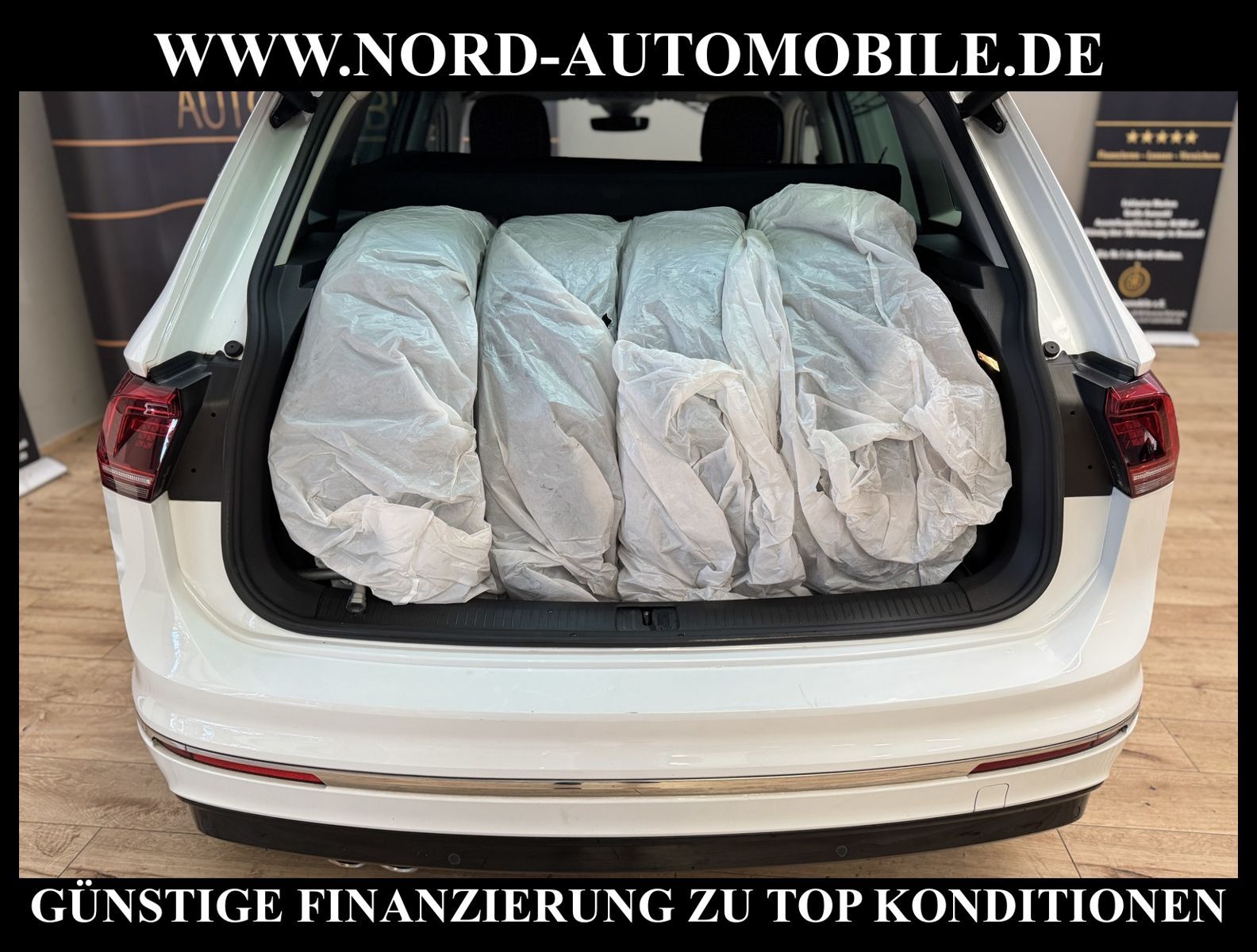 KomfortExtrasUnterhaltungBeschreibungwww.nord-automobile.de Volkswagen Tiguan Highline 1.5 TSI ACT 110kW 7-Gang DSG 4 TürenAnsprechpartner: Jan Feldhus, Jonathan Steinfeld, Tom Bijman, Simon Wolff* FAHRZEUG-NUMMER: M-5971-BD * LACKIERUNG: Pure White * Modelljahr: 2020 * UPE brutto 45.399 ¤ * Deutsche Auslieferung * Abgasnorm Euro 6d-TEMP * R-Line-Paket Exterieur Volkswagen Individual / Exclusive * Navigationssystem ''Discover Media'' mit TFT-Touchscreen * ''Emergency Assist'', Stauassistent, Ausparkassistent sowie ''Side Assist Plus'' inkl. ''Lane Assist'' * LED-Scheinwerfer * Rückfahrkamera ''Rear View'' * Parklenkassistent (Park Assist) und PDC vorn und hinten * Müdigkeitserkennungserkennung * Climatronic ( 3-Zonen ) mit Klimabedienteil hinten * Autom. Distanzregelung (ACC inkl. Stop&Go-Funktion) - Geschwindigkeitsbegrenzungsanlage * Verkehrszeichenerkennung * Head-up-Display * Multifunktionsanzeige/Bordcomputer * Front Assist inkl. City ANB für ACC high * Sitzheizung für Vordersitze getrennt regelbar * Fahrassistenz-Paket Plus * USB-Schnittstelle auch für iPod/iPhone * Bluetooth-Schnittstelle für Mobiltelefon * Radio ''Composition Media'' * Lenkrad heizbar (Leder) mit Multifunktion und Schaltfunktion * Sitze vorn höhenverstellbar * Rücksitzbank/-lehne, geteilt, umlegbar * Beifahrersitzlehne komplett umklappbar * Top-Komfortsitze vorn * Lederlenkrad beheizbar mit Multifunktion und Schaltfunktion * Dynamische Fernlichtregulierung ''Dynamic Light Assist'' * Leuchtweitenregulierung dynamisch, mit dynamischem Kurvenfahrlicht * Seitenscheiben hinten und Heckscheibe abgedunkelt, zu 65 % lichtabsorbierend * Scheibenwaschdüsen vorn automatisch beheizt * Nebelscheinwerfer und Abbiegeleuchte * Tagesfahrlicht mit Assistenzfahrlicht und coming home Funktion * Scheibenwischer-Intervallschaltung mit Licht/Regensensor * Scheinwerfer-Reinigungsanlage * Dachreling silber eloxiert * Kindersitzverankerung für Kindersitzsystem I-Size, 2 x top tether * Zentralverriegelung mit Funkfernbedienung * Kofferraumdeckel / Heckklappe elektr. betätigt (öffnen + schliessen) * Leichtmetallräder ''Sebring'' 19 Zoll * Klapptische an den Rückseiten der Vordersitze * Sicherheitsinnenspiegel automatisch abblendbar * Airbag für Fahrer und Beifahrer, mit Beifahrerairbag-Deaktivierung, inkl. Knie-Airbag auf der Fahrerseite * Mittelarmlehne vorn höhen-/längsverstellbar * Kopfairbagsystem für Front- und Fondpassagiere inkl. Seitenairbags vorn * Sitzmittelbahnen in Mikrovlies ''ArtVelours'' * Außenspiegel elektrisch einstell-, anklapp-, beheizbar, Umfeldbeleuchtung, Beifahrerspiegelabsenkung * Servolenkung, geschwindigkeitsabhängig (Servotronic) * Elektronische Parkbremse inkl. Auto-Hold-Funktion * Start/Stopp-Anlage mit Rekuperation * 7-Gang-Automatikgetriebe * Reifenkontrollanzeige * Nord-Automobile - Ihr starker und kompetenter Partner seit über 30 Jahren * Wir bieten Ihnen eine günstige Finanzierung auch ohne Anzahlung über die * AutoEuropaBank - Zweigniederlassung der Volkswagen Bank GmbH an * 20 XXL-Fotografien dieses Fahrzeuges finden Sie unter www.nord-automobile.de * Gerne unterbreiten wir Ihnen ein Angebot zum Ankauf Ihres bisherigen Fahrzeuges * Beim Export-Geschäft führen wir die Ausfuhranmeldung und Zulassung für Sie durch * Wir sind Meister-Werkstatt und zertifizierte GTÜ-Prüfstelle * Lernen Sie uns kennen - wir freuen uns auf Ihren Besuch * Keine Haftung für Druck & Schreibfehler. ... Klima, Klimaautomatik, Automatik, Navigationssystem, Sitzheiz. vorn, Regensensor, ESP, ABS, Distronic, Parktronic System, Multifunktionslenkr., Radio, Tel. m. Freisprech., Bordcomputer, Spiegel beheizbar, Scheinwerferreinigung, elektr. Fensterheber vorn, elektr. WFS, ZV mit Fernb., Fahrerairb., Beifahrerairb., Seitenairbag vorn, Kopfairbags, Leichtmetallfelgen, Nichtraucher, Nebelscheinw., Servolenkung, Sitzbank teilbar, Dachreling, abklappb. Spiegel, elektr. verstellb. Spiegel, Mittelarmlehne, Lendenwirbelst., Sitzhoehenv., orthop. Fahrersitz, Sitzheizung, Lichtsensor, Waermeschutzvergl., aus erster Hand, Schadstoffklasse: Euro 6, Frontantrieb, Lederlenkrad, HSN 0603, TSN CIR, Verbrauch: 5,6/6,9/4,9 l/100 km (komb/inn/auß), CO2: 163 g/km, HU + AU wird vor Verkauf erneuert, Feinstaubplakette: 4 - Grün |