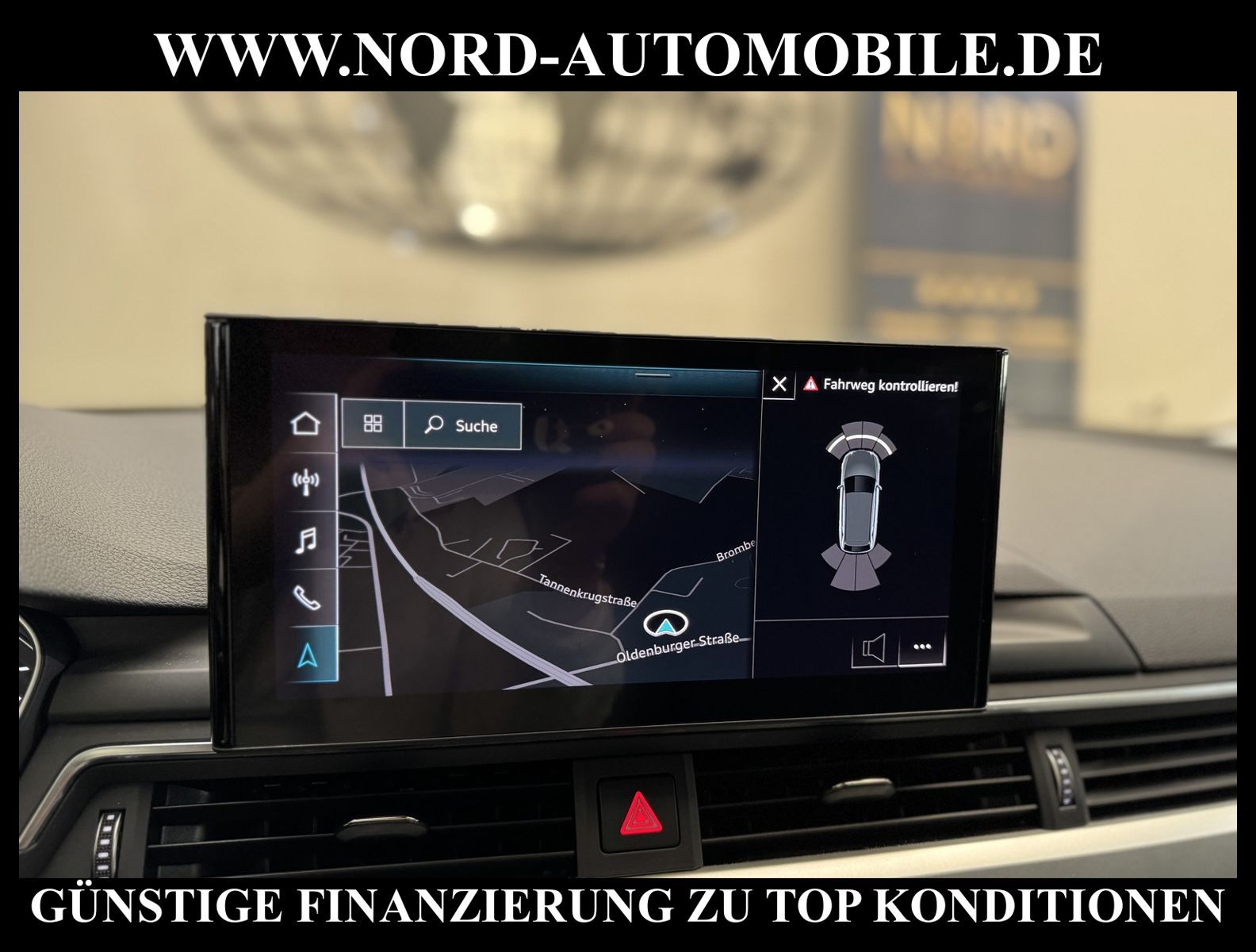 KomfortExtrasUnterhaltungBeschreibungwww.nord-automobile.de AUDI A4 AvantAnsprechpartner:Jan Feldhus, Jonathan Steinfeld, Tom Bijman, Simon Wolff, Matthis Ullrich* FAHRZEUG-NUMMER: M-3882-BD * LACKIERUNG:Mythosschwarz Metallic * Deutsche Auslieferung * Mdelljahr:2022 * UPE brutto 45.261 ¤ * Abgaskonzept, EU6 AP * Audi Smartphone Interface * Einparkhilfe plus * Sonnenschutzrollo für Seitenscheiben hinten * Sitzheizung für Vordersitze getrennt regelbar * Navigationsgerät-High * Telefonvorbereitung für Handy * Digitaler Radioempfang * Einparkhilfe vorn und hinten * Multifunktionsanzeige/Bordcomputer''TOP'' * Geschwindigkeitsregelanlage plus Speed-Limiter * LED-Scheinwerfer * Komfortschlüssel inkl. sensorgesteuerterGepäckraumentriegelung inkl. Gepäckraum-klappe elektrisch öffnend und schließend * Ledersportmultifunktionslenkrad * Höheneinstellung, manuell, für Vordersitze * Rücksitzbank ungeteilt, Lehne geteilt umlegbar (dreiteilig) mit Mittelarmlehne * Zentralverriegelung ''Keyless-Entry''ohne Safesicherung * Servoschließung Heckklappe * Glas im Fond dunkel eingefärbt(Venus 35/ Privacy)vorn Wärmeschutzglas (grün) * Fernlichtassistent * Sicherheitsinnenspiegel automatisch abblendbar * Airbag FS und BFS, ohne Knieairbag, mit BFS-Deaktivierung * Außenspiegel, automatisch abblendbar elektrisch anklapp-/einstell-/beheizbar * Reifendruckkontrolle * Start/Stopp-Anlage mit Rekuperation * Leichtmetallräder 7 1/2J x17 * 7-Gang-Automatikgetriebe * Nord-Automobile - Ihr starker und kompetenter Partner seit über 30 Jahren * Wir bieten Ihnen eine günstige Finanzierung auch ohne Anzahlung über die * AutoEuropaBank - Zweigniederlassung der Volkswagen Bank GmbH an * 20 XXL-Fotografien dieses Fahrzeuges finden Sie unter www.nord-automobile.de * Gerne unterbreiten wir Ihnen ein Angebot zum Ankauf Ihres bisherigen Fahrzeuges * Beim Export-Geschäft führen wir die Ausfuhranmeldung und Zulassung für Sie durch * Wir sind Meister-Werkstatt und zertifizierte GTÜ-Prüfstelle * Lernen Sie uns kennen - wir freuen uns auf Ihren Besuch * Keine Haftung für Druck & Schreibfehler. ... Klima, Klimaautomatik, Automatik, Navigationssystem, Sitzheiz. vorn, Regensensor, ESP, ABS, Parktronic System, Multifunktionslenkr., Radio, Bordcomputer, Tempomat, Spiegel autom. abblendbar, Spiegel beheizbar, elektr. Fensterheber vorn, elektr. WFS, Keyless-Go, Beifahrerairb., Seitenairbag vorn, Kopfairbags, Leichtmetallfelgen, Nichtraucher, Servolenkung, Sitzbank teilbar, Dachreling, abklappb. Spiegel, elektr. verstellb. Spiegel, Kopfst. vorn, Mittelarmlehne, Sitzheizung Fahrer + Beif., Lichtsensor, Waermeschutzvergl., aus erster Hand, Schadstoffklasse: Euro 6, Frontantrieb, Lederlenkrad, HSN 0588, TSN BNW, Verbrauch: 6,0/7,5/5,1 l/100 km (komb/inn/auß), CO2: 145 g/km, Partikelfilter, HU + AU wird vor Verkauf erneuert, Feinstaubplakette: 4 - Grün |