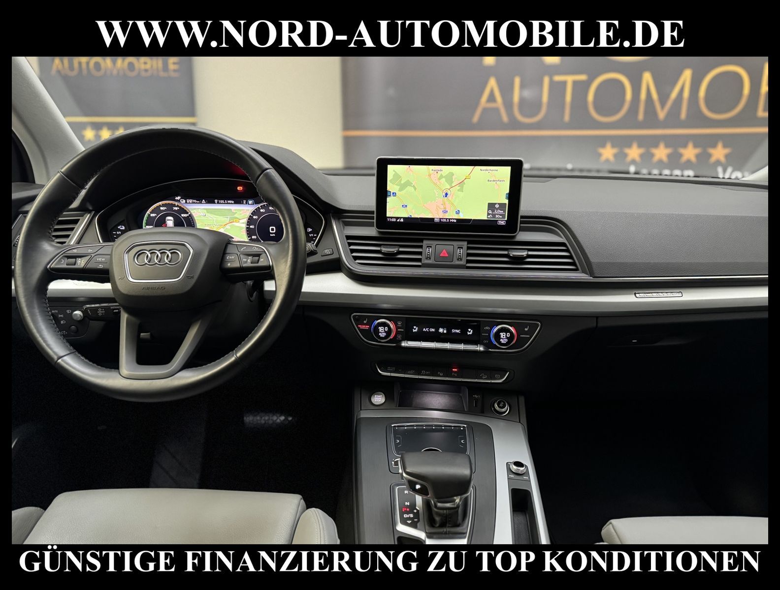 AUDI Q5 50 TFSI e QUATTRO S-LINE Ansprechpartner: Jan Feldhus, Jonathan Steinfeld.Tom Bijman, Simon Wolff, Matthis Ullrich* FAHRZEUG-NUMMER: MD-1403-BD * LACKIERUNG:Mondscheinblau Metallic * Deutsche Auslieferung * 1.Hand * Schadstoffarm nach Abgasnorm Euro 6d-TEMP * UPE brutto 74.520, - * Matrix LED-Scheinwerfer * Exterieur-Paket S line * Kombiinstrument digital (virtual cockpit) * 4 Corner Luftfederung mit elektrisch geregelter Dämpfung * Head-up-Display * Automatische Distanzregelung ACC * Spurhalteassistent * Spurwechselassistent * Komfort-Klimaautomatik 3-Zonen * Sitzheizung vorne und hinten * Ablage- und Gepäckraum-Paket * Akustikglas Türscheiben vorn * Ambiente-Beleuchtung (Multicolor-LED) * Assistenz-Paket Stadt mit Assistenz-Paket Parken * Assistenz-Paket Tour * Audi connect (Notruf- und Assistance-System) * Audi Smartphone Interface * Außenspiegel elektrisch verstell-, heiz- und anklappbar, mit Abblendautomatik * Bluetooth-Freisprecheinrichtung mit Spracherkennung (Audi Phone Box) * Fahrwerk (adaptive air suspension) * Frontkamera (Scheibe) * Innenspiegel mit Abblendautomatik * Komfort-Standklimatisierung * Komfortschlüssel mit sensorgesteuerter Heckklappenentriegelung inkl. (öffnen + schliessen) * Kopfstützen variabel verstellbar * Lenkrad (Leder - 3-Speichen) mit Multifunktion plus * Multi-Media-Interface MMI Navigation Plus mit MMI Touch * Perleffekt-Lackierung * Seitenairbag hinten * Sitzbezug / Polsterung: Kunstleder / Leder * Sound-System DSP / Audi Sound-System * Sportsitze vorn * Airbag Fahrer-/Beifahrerseite * Audi Drive Select * AUX-IN-Anschluss * Blinkleuchten LED in Außenspiegel integriert * Bremsassistent * Dachreling eloxiert * Elektromotor 35 kW (Hybridantrieb) * Fahrassistenz-System: Bergabfahr-Assistent * Fahrassistenz-System: City-Notbremsfunktion (Audi pre sense City) * Frontscheibe Akustikglas * Geschwindigkeits-Begrenzeranlage * Innenausstattung: Dekoreinlagen Mikrometallic silber * Isofix-Aufnahmen für Kindersitz * Kindersicherung, manuell * Komfort-Klimaautomatik 3-Zonen * Kopf-Airbag-System (Sideguard) * Kraftstofftank: 54 Ltr. * Leuchtweitenregelung automatisch * Lichtsensor (Coming Home, Leaving Home) * Mittelarmlehne hinten mit Fach * Modellbezeichnung mit neuer Leistungskennzeichnung * Multi-Media-Interface MMI Basic Plus / MMI Radio Plus * Otto-Partikelfilter (OPF) * Parkbremse elektro-mechanisch * Radioempfang digital (DAB) * Reifenkontroll-Anzeige * Rücksitzbank (plus) und/oder Lehne geteilt * Scheibenwaschdüsen heizbar * Seitenairbag vorn * Wärmeschutzverglasung grün getönt * Zentralverriegelung / Startanlage Keyless-Go * Start/Stop-Anlage * Ladekabel * Hybrid 220 kW (Motor 2, 0 Ltr. - 185 kW TFSI) * Getriebe 7-Gang - Doppelkupplungsgetriebe S-tronic * Leichtmetallräder 18'' Zoll * Nord-Automobile - Ihr starker und kompetenter Partner seit über 30 Jahren * Wir bieten Ihnen eine günstige Finanzierung auch ohne Anzahlung über die * AutoEuropaBank - Zweigniederlassung der Volkswagen Bank GmbH an * 20 XXL-Fotografien dieses Fahrzeuges finden Sie unter www.nord-automobile.de * Gerne unterbreiten wir Ihnen ein Angebot zum Ankauf Ihres bisherigen Fahrzeuges * Beim Export-Geschäft führen wir die Ausfuhranmeldung und Zulassung für Sie durch * Wir sind Meister-Werkstatt und zertifizierte GTÜ-Prüfstelle * Lernen Sie uns kennen - wir freuen uns auf Ihren Besuch * Keine Haftung für Druck & Schreibfehler. ... Klima vorn+hinten, Klimaautomatik, Automatik, Leder, Navigationssystem, Allrad, Sitzheiz. vorn, Sitzheiz. hinten, Regensensor, ESP, ABS, Distronic, Parktronic System, Multifunktionslenkr., Radio, Soundsystem, Tempomat, Spiegel autom. abblendbar, Spiegel beheizbar, Scheinwerferreinigung, elektr. WFS, Keyless-Go, ZV, Fahrerairb., Beifahrerairb., Seitenairbag vorn, Seitenairbag hinten, Kopfairbags, Leichtmetallfelgen, Nichtraucher, Servolenkung, Sportsitze/Schalensitze, Spoiler, Sitzbank teilbar, Dachreling, abklappb. Spiegel, elektr. verstellb. Spiegel, Gepaeckraumabd., Luftfederung, Mittelarmlehne, Sitzheizung Fahrer + Beif., Lichtsensor, Waermeschutzvergl., aus erster Hand, Schadstoffklasse: Euro 6, 4x4-Antrieb, Lederlenkrad, HSN 0588, TSN BRF, Verbrauch: 2,2/0,0/0,0 l/100 km (komb/inn/auß), CO2: 51 g/km, Partikelfilter, Feinstaubplakette: 4 - Grün, Standklima |