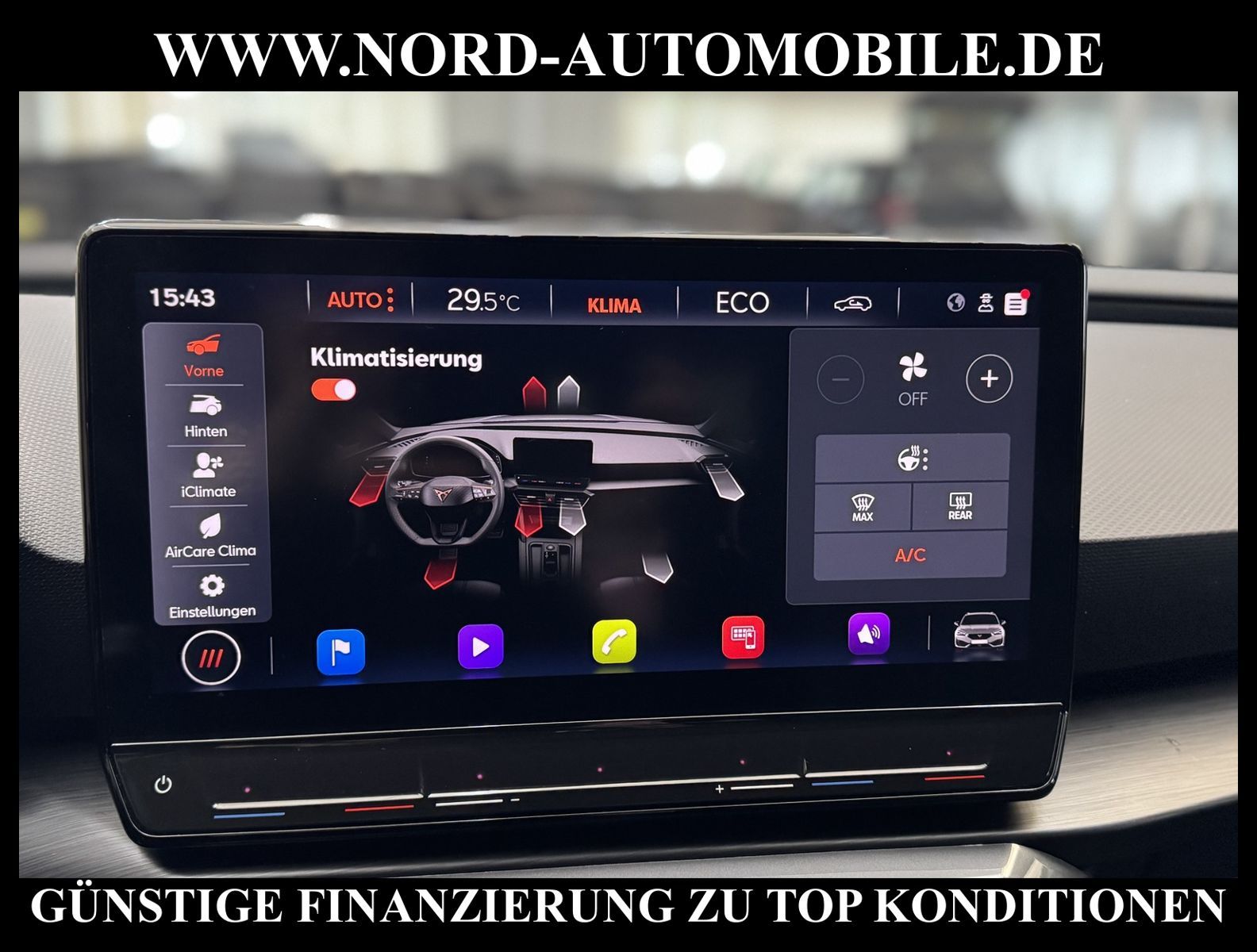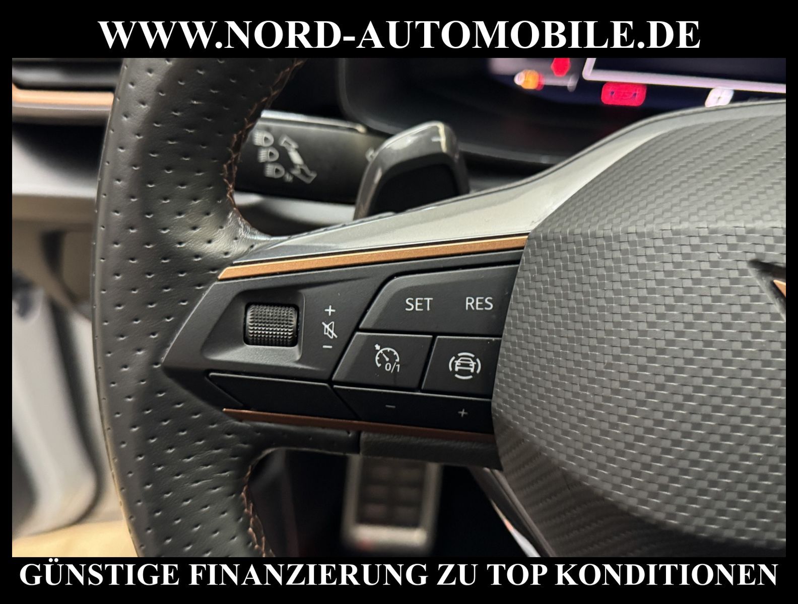 KomfortExtrasUnterhaltungBeschreibungwww.nord-automobile.de Cupra Leon SP 1.4 electric/TSI e-HYBRID 150kW 6-Gang Automatikgetriebe 4 TürenAnsprechpartner: Jan Feldhus, Jonathan Steinfeld, Tom Bijman, Simon Wolff, Matthis Ullrich* FAHRZEUG-NUMMER: M-0137-BD * LACKIERUNG: ''Candy'' Weiss * Modelljahr:2024 * UPE brutto 42.613 ¤ * Deutsche Auslieferung * Mit Batteriezertifikat! * Abgaskonzept, EU6 AP * Navigationssystem * Komforttelefonie mit LTE und Wireless charging * Einparkhilfe * Sprachsteuerung * Müdigkeitserkennung * LED-Scheinwerfer * Spurhalteassistent * Climatronic ( 3-Zonen ) mit Klimabedienteil hinten * Kombiinstrument digital (virtual cockpit) * Schlüsselloses Schließ- und Startsystem ''Keyless Advanced'' ohne Safesicherung * Wireless RSE ''App'' * Geschwindigkeitsregelanlage plus Speed-Limiter * Lenkrad heizbar (Sport/Leder) mit Multifunktion und Schaltfunktion * Höheneinstellung, manuell, für Vordersitze * Lendenwirbelstütze, manuell einstellbar in Vordersitzlehnen * Tagesfahrlicht mit Assistenzfahrlicht u.Coming- u. Leaving-home Funktion automatisch * Rücksitzbank ungeteilt, Lehne geteilt umlegbar mit Mittelarmlehne * Einstiegleisten in den Türausschnitten (beleuchtet) * Nebelscheinwerfer * Scheiben seitlich in Wärmeschutzver- glasung, ab B-Säule und hinten dunkel eingefärbt * Mittelarmlehne vorn * Heckscheiben-Wisch-Waschanlage mit Intervallschaltung * Scheibenwischer-Intervallschaltung mit Licht/Regensensor * Angehobener Ladeboden hinten * Servolenkung, geschwindigkeitsabhängig (Servotronic) mit Lenkhubeinschränkung * Fensterheber mit Komfortschaltung und Abschaltsicherung, elektrisch * Sicherheitsinnenspiegel automatisch abblendbar * Radschrauben mit Diebstahlsicherung (nicht abschließbar) * Reifendruckkontrolle * Außenspiegel elektr. verstell-, heiz- und anklappbar mit Spiegelabsenkung und Welcome Light * Pedale Aluminium-Design * Leichtmetallräder 7 1/2J x 18 * Start/Stopp-Anlage mit Rekuperation * 6-Gang-Automatikgetriebe * Nord-Automobile - Ihr starker und kompetenter Partner seit über 30 Jahren * Wir bieten Ihnen eine günstige Finanzierung auch ohne Anzahlung über die * AutoEuropaBank - Zweigniederlassung der Volkswagen Bank GmbH an * 20 XXL-Fotografien dieses Fahrzeuges finden Sie unter www.nord-automobile.de * Gerne unterbreiten wir Ihnen ein Angebot zum Ankauf Ihres bisherigen Fahrzeuges * Beim Export-Geschäft führen wir die Ausfuhranmeldung und Zulassung für Sie durch * Wir sind Meister-Werkstatt und zertifizierte GTÜ-Prüfstelle * Lernen Sie uns kennen - wir freuen uns auf Ihren Besuch * Keine Haftung für Druck & Schreibfehler. ... Klima, Klimaautomatik, Automatik, Navigationssystem, Regensensor, ESP, ABS, Multifunktionslenkr., Radio, Bordcomputer, Tempomat, Spiegel beheizbar, elektr. Fensterheber vorn, elektr. WFS, ZV mit Fernb., Fahrerairb., Beifahrerairb., Leichtmetallfelgen, Nichtraucher, Nebelscheinw., Servolenkung, abklappb. Spiegel, elektr. verstellb. Spiegel, Mittelarmlehne, Lichtsensor, aus erster Hand, Schadstoffklasse: Euro 6, Frontantrieb, Lederlenkrad, HSN 7593, TSN ART, CO2: 27 g/km, HU + AU wird vor Verkauf erneuert, Feinstaubplakette: 4 - Grün |