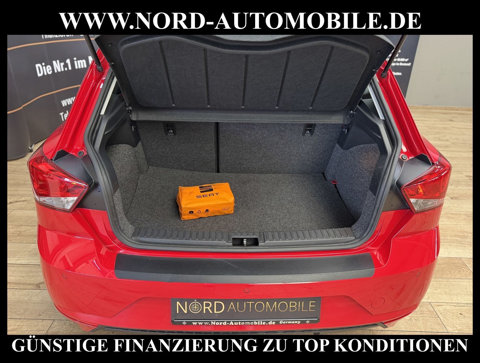 KomfortExtrasUnterhaltungBeschreibungwww.nord-automobile.de Seat Ibiza Style 1.0 TGI 66kW 6-Gang 4 TürenAnsprechpartner: Jan Feldhus, Jonathan Steinfeld, Tom Bijman, Simon Wolff, Matthis Ullrich* FAHRZEUG-NUMMER: M-3692-BD * LACKIERUNG: Reinrot * Modelljahr:2023 * UPE brutt 20.444 ¤ * Deutsche Auslieferung * Schadstoffarm nach Abgasnorm Euro 6d * Telefonvorbereitung für Handy * LED Scheinwerfer * Müdigkeitserkennung * Spurhalteassistent * Ultraschall-Einparkhilfe hinten * Klimaanlage mit mechanischer Regelung * Digitaler Radioempfang * Geschwindigkeitsregelanlage plus Speed-Limiter * Multifunktionsanzeige/Bordcomputer ''Medium'' * Front Assist inkl. City ANB ohne ACC * Lenksäule, axial u.vertikal einstellbar * Rücksitzbank ungeteilt, Lehne geteilt umlegbar * Höheneinstellung, manuell, li.Vordersitz * Scheibenwischer-Intervallschaltung mit Lichtsensor * Ledersportmultifunktionslenkrad * Scheiben seitlich und hinten in Wärmeschutzverglasung * Wegfahrsperre (elektronisch) * Reifendruckkontrolle * Kindersitzverankerung für Kindersitzsystem ISO FIX * Seitenairbag vorn, mit Kopfairbag * Zentralverriegelung m. Funkfernbedienung Innenbetätigung ohne Safesicherung * Servolenkung * Start/Stopp-Anlage mit Rekuperation * Fensterheber vorn mit Komfortschaltung und Abschaltsicherung, elektrisch, hinten mechanisch * Airbag FS und BFS, ohne Knieairbag, mit BFS-Deaktivierung * Außenspiegel elektr. verstellbar * Leichtmetallräder 5 1/2J x 15 * Nord-Automobile - Ihr starker und kompetenter Partner seit über 30 Jahren * Wir bieten Ihnen eine günstige Finanzierung auch ohne Anzahlung über die * AutoEuropaBank - Zweigniederlassung der Volkswagen Bank GmbH an * 20 XXL-Fotografien dieses Fahrzeuges finden Sie unter www.nord-automobile.de * Gerne unterbreiten wir Ihnen ein Angebot zum Ankauf Ihres bisherigen Fahrzeuges * Beim Export-Geschäft führen wir die Ausfuhranmeldung und Zulassung für Sie durch * Wir sind Meister-Werkstatt und zertifizierte GTÜ-Prüfstelle * Lernen Sie uns kennen - wir freuen uns auf Ihren Besuch * Keine Haftung für Druck & Schreibfehler. ... Klima, ESP, ABS, Multifunktionslenkr., Tel. m. Freisprech., Bordcomputer, Tempomat, elektr. Fensterheber vorn, elektr. WFS, ZV mit Fernb., Fahrerairb., Beifahrerairb., Seitenairbag vorn, Kopfairbags, Leichtmetallfelgen, Nichtraucher, Servolenkung, elektr. verstellb. Spiegel, Lichtsensor, Waermeschutzvergl., aus erster Hand, Schadstoffklasse: Euro 6, Treibstoff: Erdgas, Frontantrieb, Lederlenkrad, HSN 7593, TSN AOW, CO2: 101 g/km, Feinstaubplakette: 4 - Grün |