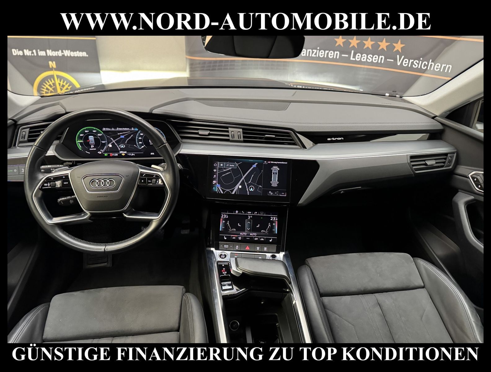 KomfortExtrasUnterhaltungBeschreibungwww.nord-automobile.de Audi e-tronAnsprechpartner:Jan Feldhus, Jonathan Steinfeld, Tom Bijman, Simon Wolff, Matthis Ullrich* FAHRZEUG-NUMMER: M-5301-BD * LACKIERUNG: Brillantschwarz * Deutsche Auslieferung * Modelljahr:2023 * Mit Batteriezertifikat SoH 94, 4%! * Smartphone-Interface * Sitzheizung für Vordersitze getrennt regelbar * 4 Corner Luftfederung mit elektrisch geregelter Dämpfung * Spurverlassenswarnung * Audi virtual cockpit * Audi Soundsystem * Einparkhilfe plus mit Umgebungsanzeige * Zentralverriegelung ''Keyless-Go''ohne Safesicherung * Mikrofaser Dinamica/Leder-Kombination * LED-Scheinwerfer * Multifunktionsanzeige/Bordcomputer''FPK'' * Lenksäule, axial u.vertikal einstellbar * Telefonvorbereitung für Handy * Digitaler Radioempfang * Höheneinstellung, manuell, für Vordersitze * Ledermultifunktionslenkrad für Airbag-System * Sportsitze vorn * Lendenwirbelstütze, elektr. einstellbar in Vordersitzlehnen * Radschrauben mit Diebstahlsicherung plus Radlöseerkennung * Sicherheitsinnenspiegel automatisch abblendbar * Airbag FS und BFS, ohne Knieairbag, mit BFS-Deaktivierung * Außenspiegel elektr. einstell-/beheizbar * Räder, 5-Arm-Dynamik, graphitgrau, glanzgedreht, 9, 0Jx20, Reifen 255/50 R20 * Servoschließung Heckklappe * Reifendruckkontrolle * Nord-Automobile - Ihr starker und kompetenter Partner seit über 30 Jahren * Wir bieten Ihnen eine günstige Finanzierung auch ohne Anzahlung über die * AutoEuropaBank - Zweigniederlassung der Volkswagen Bank GmbH an * 20 XXL-Fotografien dieses Fahrzeuges finden Sie unter www.nord-automobile.de * Gerne unterbreiten wir Ihnen ein Angebot zum Ankauf Ihres bisherigen Fahrzeuges * Beim Export-Geschäft führen wir die Ausfuhranmeldung und Zulassung für Sie durch * Wir sind Meister-Werkstatt und zertifizierte GTÜ-Prüfstelle * Lernen Sie uns kennen - wir freuen uns auf Ihren Besuch * Keine Haftung für Druck & Schreibfehler. ... Klima, Klimaautomatik, Automatik, Navigationssystem, Allrad, Sitzheiz. vorn, Vorders. elekt. verstellb., Parktronic System, Multifunktionslenkr., Radio, Soundsystem, Bordcomputer, Tempomat, Spiegel autom. abblendbar, Spiegel beheizbar, Scheinwerferreinigung, elektr. Fensterheber vorn, elektr. WFS, Keyless-Go, ZV mit Fernb., Fahrerairb., Beifahrerairb., Seitenairbag vorn, Kopfairbags, Leichtmetallfelgen, Nichtraucher, Sportsitze/Schalensitze, Spoiler, Sitzbank teilbar, elektr. verstellb. Spiegel, Kopfst. vorn, Gepaeckraumabd., Luftfederung, Mittelarmlehne, Lendenwirbelst., elekt. verstellb. Fahrersitz, Sitzheizung Fahrer + Beif., Waermeschutzvergl., 12 V Zusatzanschluss, aus erster Hand, 4x4-Antrieb, Lederlenkrad, HSN 0588, TSN BSK, HU + AU wird vor Verkauf erneuert, Standklima |