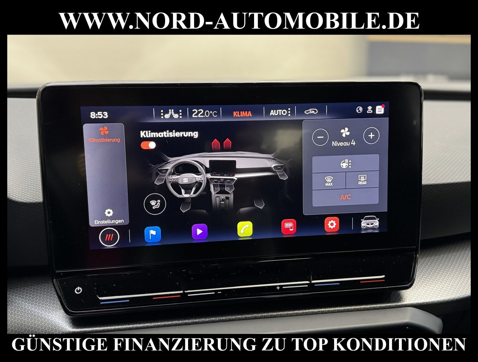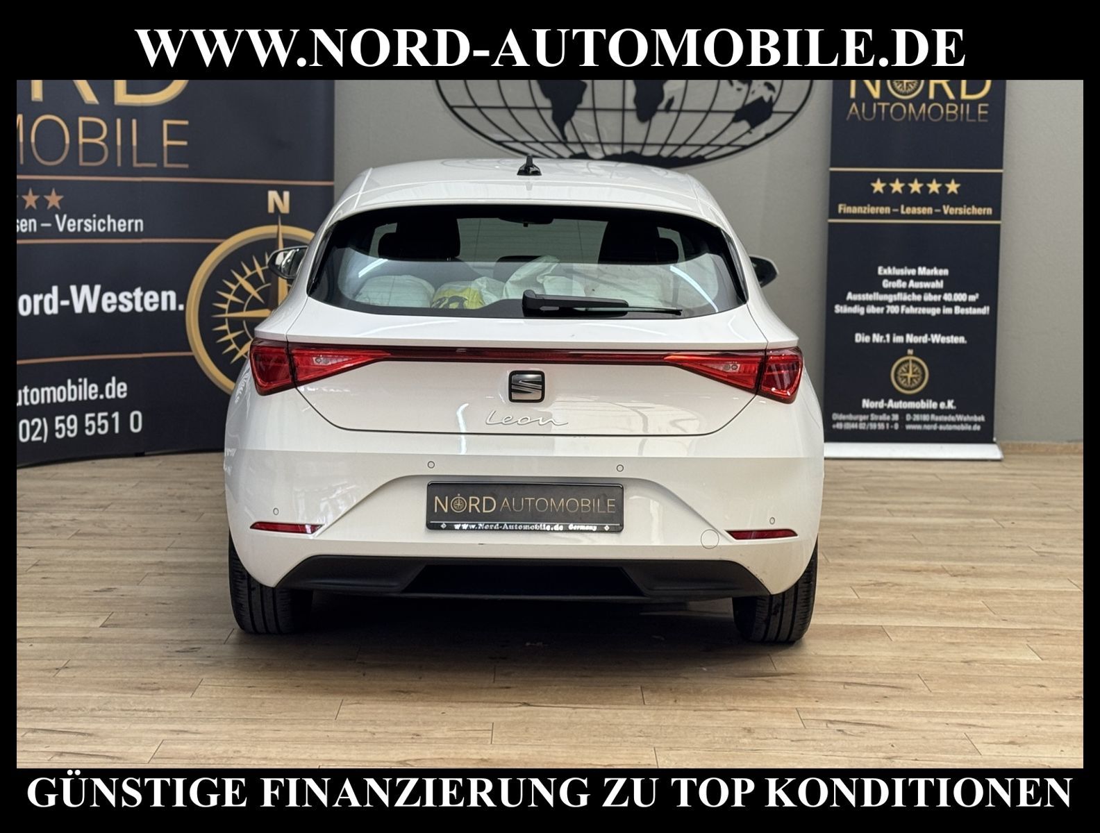 KomfortExtrasUnterhaltungBeschreibungwww.nord-automobile.de Seat Leon Reference 2.0 TDI 85kW 6-Gang 4 TürenAnsprechpartner: Jan Feldhus, Jonathan Steinfeld, Tom Bijman, Simon Wolff, Matthis Ullrich* FAHRZEUG-NUMMER: M-7812-BD * LACKIERUNG: ''Candy'' Weiss * Modelljahr:2023 * UPE netto 25.147, 06 ¤ * Deutsche Auslieferung * Schadstoffarm nach Abgasnorm Euro 6d * Navigationssystem * Sitzheizung für Vordersitze getrennt regelbar * Telefonvorbereitung für Handy * LED Scheinwerfer * Müdigkeitserkennung * Anhängevorrichtung mechanisch schwenkbar und elektrisch auslösbar * Kombiinstrument digital (virtual cockpit) * Mit Ausweichunterstützung mit Abbiegeassistent * Umfeldbeobachtungssystem (Front assist) mit City-Notbremsfunktion * Spurhalteassistent * Ultraschall-Einparkhilfe hinten * Zentralverriegelung / Startanlage Keyless Go (Start-Stop-Knopf) * Mirror Link plus Wireless ''App'' plus RSE (Vorbereitung) * Klimaautomatik * Digitaler Radioempfang * Geschwindigkeitsregelanlage plus Speed-Limiter * Ledermultifunktionslenkrad, beheizbar * Rücksitzbank ungeteilt, Lehne geteilt umlegbar * Höheneinstellung, manuell, li.Vordersitz * Winterpaket: Sitzheizung vorne, Scheinwerfer-Reinigungsanlage, beheizbare Scheibenwaschdüsen, beheizbare Aussenspiegel * Kindersitzverankerung für Kindersitzsystem I-Size, 2 x top tether und Kindersitzverankerung vorn BF-Seite * Scheiben seitlich und hinten in Wärmeschutzverglasung * Fensterheber mit Komfortschaltung und Abschaltsicherung * Wegfahrsperre (elektronisch) * Servolenkung, geschwindigkeitsabhängig (Servotronic) * Reifendruckkontrolle * Seitenairbag vorn, mit Kopfairbag und Interaktionsairbag vorn * Start/Stopp-Anlage mit Rekuperation * Airbag FS und BFS, ohne Knieairbag, mit BFS-Deaktivierung * Außenspiegel elektr. einstellbar, separat beheizbar * Nord-Automobile - Ihr starker und kompetenter Partner seit über 30 Jahren * Wir bieten Ihnen eine günstige Finanzierung auch ohne Anzahlung über die * AutoEuropaBank - Zweigniederlassung der Volkswagen Bank GmbH an * 20 XXL-Fotografien dieses Fahrzeuges finden Sie unter www.nord-automobile.de * Gerne unterbreiten wir Ihnen ein Angebot zum Ankauf Ihres bisherigen Fahrzeuges * Beim Export-Geschäft führen wir die Ausfuhranmeldung und Zulassung für Sie durch * Wir sind Meister-Werkstatt und zertifizierte GTÜ-Prüfstelle * Lernen Sie uns kennen - wir freuen uns auf Ihren Besuch * Keine Haftung für Druck & Schreibfehler. ... Klima, Klimaautomatik, Navigationssystem, Sitzheiz. vorn, ESP, ABS, Multifunktionslenkr., Radio, Tel. m. Freisprech., Tempomat, Spiegel beheizbar, elektr. Fensterheber vorn, elektr. WFS, Keyless-Go, ZV mit Fernb., Fahrerairb., Beifahrerairb., Seitenairbag vorn, Kopfairbags, Nichtraucher, Anhaengerk., Servolenkung, elektr. verstellb. Spiegel, Sitzheizung, Waermeschutzvergl., aus erster Hand, Schadstoffklasse: Euro 6, Diesel, Frontantrieb, Lederlenkrad, HSN 7593, TSN ASD, Verbrauch: 4,0/5,1/3,3 l/100 km (komb/inn/auß), CO2: 115 g/km, HU + AU wird vor Verkauf erneuert, Feinstaubplakette: 4 - Grün |