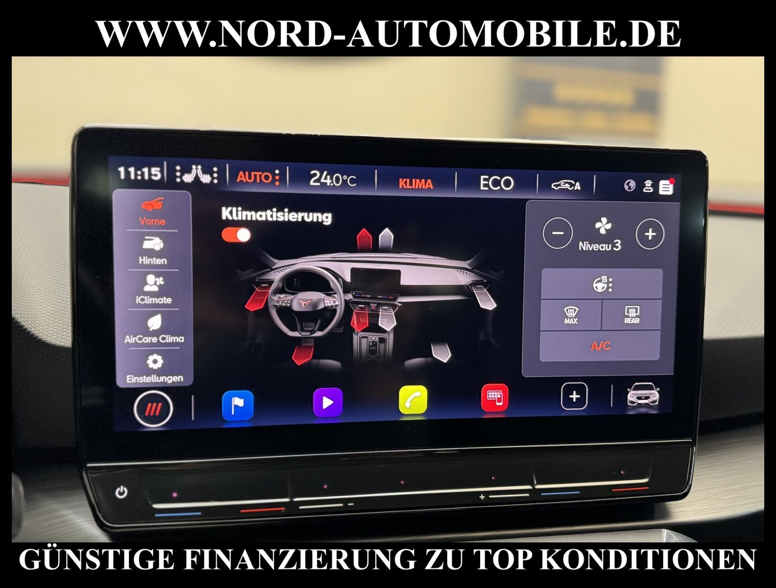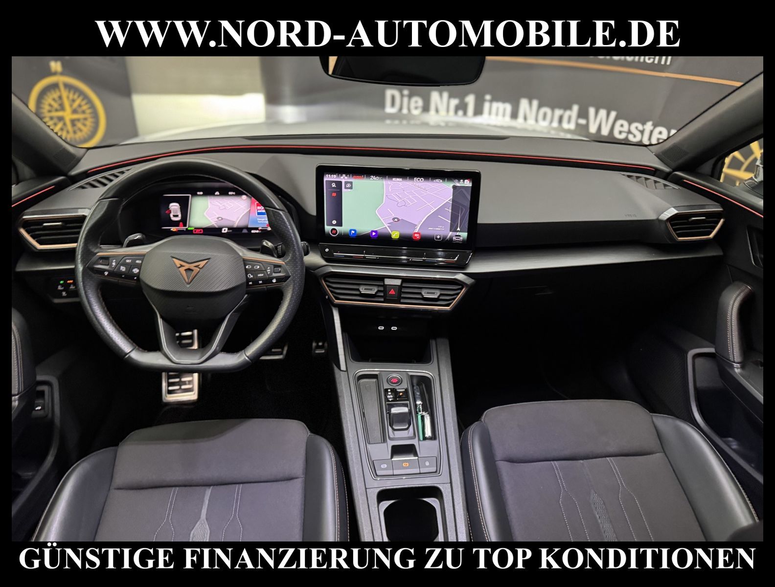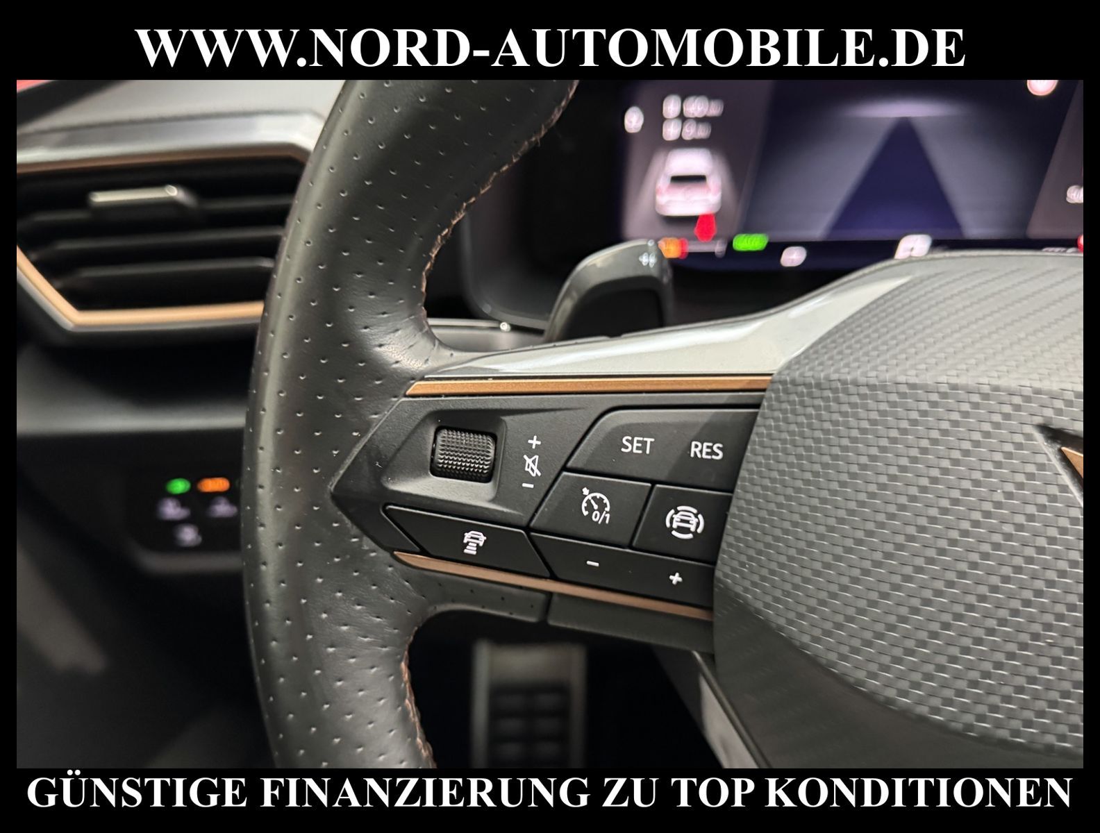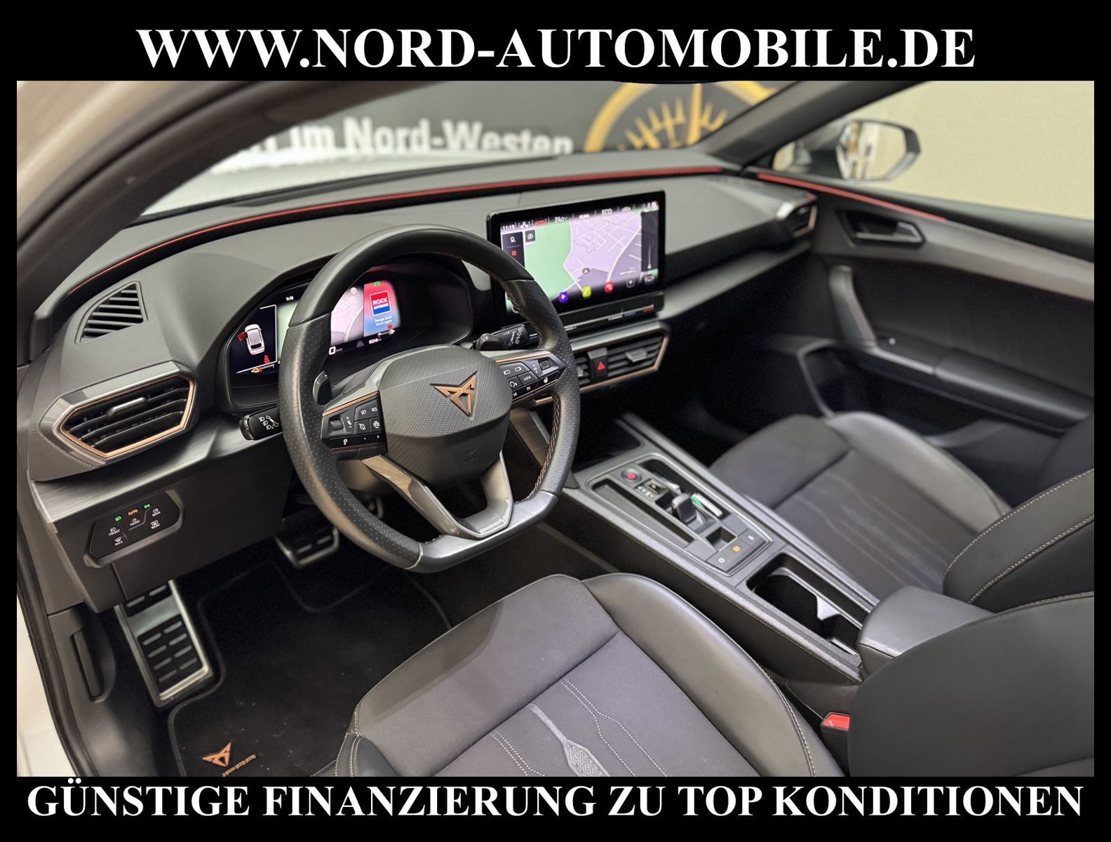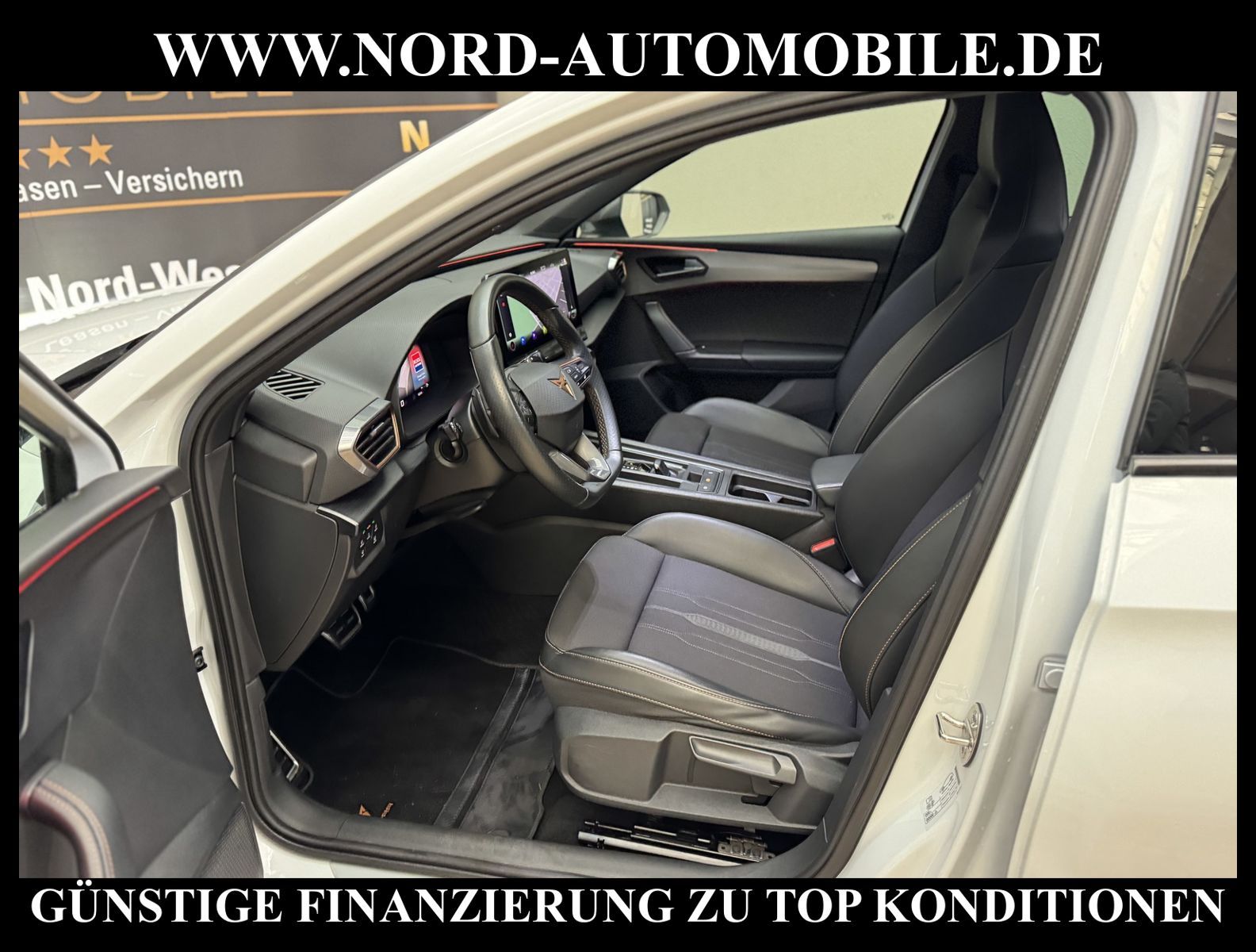 KomfortExtrasUnterhaltungBeschreibungwww.nord-automobile.de Cupra Leon SP VZ 1.4 electric/TSI e-HYBRID 180kW 6-Gang Automatikgetriebe 4 TürenAnsprechpartner: Jan Feldhus, Jonathan Steinfeld, Tom Bijman, Simon Wolff, Matthis Ullrich* FAHRZEUG-NUMMER: M-3985-BD * LACKIERUNG: ''Nevada'' Weiss * Modelljahr:2023 * UPE brutto 46.249 ¤ * Mit Batteriezertifikat! * Deutsche Auslieferung * Abgaskonzept, EU6 AP * Navigationssystem * Full Link (MirrorLink, Apple CarPlay und Android Auto) * Mit Verkehrszeichenerkennung * Automatische Distanzregelung (mit follow to stop) und Speed-Limiter * Komforttelefonie mit LTE und Wireless charging * Mit Rückfahrkamerasystem * Sprachsteuerung * Anhängevorrichtung mechanisch schwenkbarund elektrisch auslösbar * Müdigkeitserkennung * LED-Scheinwerfer * Spurhalteassistent * Fahrassistenz-System: Parklenkassistent mit Einparkhilfe vorn und hinten inkl. Rückfahrkamera * Sitzheizung für Vordersitze getrennt regelbar * Climatronic ( 3-Zonen ) mit Klimabedienteil hinten * Kombiinstrument digital (virtual cockpit) * Schlüsselloses Schließ- und Startsystem ''Keyless Advanced'' ohne Safesicherung * Lenkrad heizbar (Sport/Leder) mit Multifunktion und Schaltfunktion * Höheneinstellung, manuell, für Vordersitze * Lendenwirbelstütze, manuell einstellbar in Vordersitzlehnen * Tagesfahrlicht mit Assistenzfahrlicht u.Coming- u. Leaving-home Funktion automatisch * Rücksitzbank ungeteilt, Lehne geteilt umlegbar mit Mittelarmlehne * Einstiegleisten in den Türausschnitten (beleuchtet) * Nebelscheinwerfer * Fernlichtassistent * Scheiben seitlich in Wärmeschutzver- glasung, ab B-Säule und hinten dunkel eingefärbt * Mittelarmlehne vorn * Heckscheiben-Wisch-Waschanlage mit Intervallschaltung * Scheibenwischer-Intervallschaltung mit Licht/Regensensor * Angehobener Ladeboden hinten * Winterpaket: Sitzheizung vorn, Scheinw.-Reinigungsanlage, beheizbares Scheibenwischw., beheizbare Aussenspiegel * Servolenkung, geschwindigkeitsabhängig (Servotronic) mit Lenkhubeinschränkung * Fensterheber mit Komfortschaltung und Abschaltsicherung, elektrisch * Sicherheitsinnenspiegel automatisch abblendbar * Radschrauben mit Diebstahlsicherung (nicht abschließbar) * Reifendruckkontrolle * Außenspiegel elektr. verstell-, heiz- und anklappbar mit Spiegelabsenkung und Welcome Light * Pedale Aluminium-Design * Start/Stopp-Anlage mit Rekuperation * 6-Gang-Automatikgetriebe * Heckklappe/-Deckel elektr. betätigt (öffnen + schliessen, sensorgesteuert) * Leichtmetallräder 8J x 19 * Nord-Automobile - Ihr starker und kompetenter Partner seit über 30 Jahren * Wir bieten Ihnen eine günstige Finanzierung auch ohne Anzahlung über die * AutoEuropaBank - Zweigniederlassung der Volkswagen Bank GmbH an * 20 XXL-Fotografien dieses Fahrzeuges finden Sie unter www.nord-automobile.de * Gerne unterbreiten wir Ihnen ein Angebot zum Ankauf Ihres bisherigen Fahrzeuges * Beim Export-Geschäft führen wir die Ausfuhranmeldung und Zulassung für Sie durch * Wir sind Meister-Werkstatt und zertifizierte GTÜ-Prüfstelle * Lernen Sie uns kennen - wir freuen uns auf Ihren Besuch * Keine Haftung für Druck & Schreibfehler. ... Klima, Klimaautomatik, Automatik, Navigationssystem, Sitzheiz. vorn, Regensensor, ESP, ABS, Distronic, Parktronic System, Multifunktionslenkr., Bordcomputer, Spiegel beheizbar, Scheinwerferreinigung, elektr. Fensterheber vorn, elektr. WFS, ZV mit Fernb., Fahrerairb., Beifahrerairb., Leichtmetallfelgen, Nichtraucher, Anhaengerk., Nebelscheinw., Servolenkung, abklappb. Spiegel, elektr. verstellb. Spiegel, Mittelarmlehne, Sitzheizung, Lichtsensor, aus erster Hand, Schadstoffklasse: Euro 6, Frontantrieb, Lederlenkrad, HSN 7593, TSN ARS, Verbrauch: 1,6/0,0/0,0 l/100 km (komb/inn/auß), CO2: 141 g/km, HU + AU wird vor Verkauf erneuert, Feinstaubplakette: 4 - Grün |