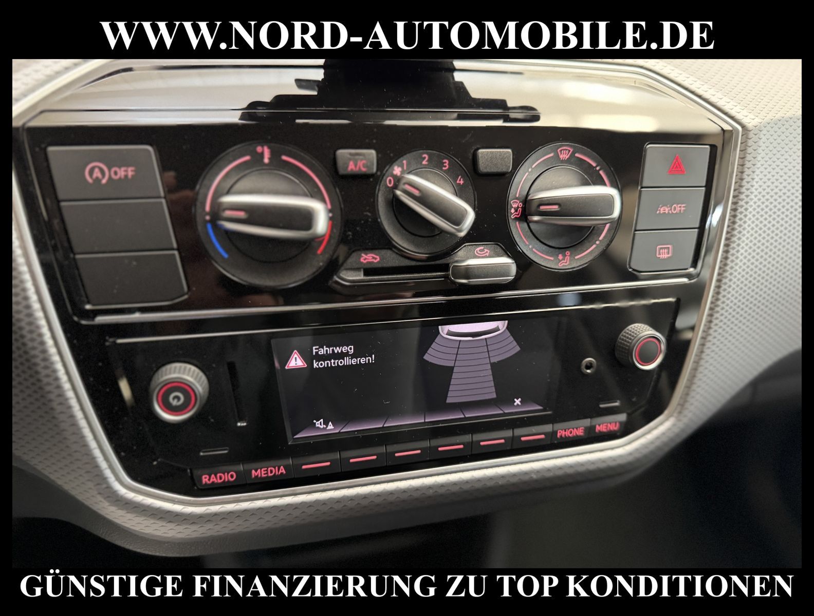 KomfortExtrasUnterhaltungBeschreibungwww.nord-automobile.de VW UpAnsprechpartner: Jan Feldhus, Jonathan Steinfeld, Tom Bijman, Simon Wolff, Matthis Ullrich, Andreas Cirja* FAHRZEUG-NUMMER: M-2236-BD * LACKIERUNG: Siliziumgrau Metallic * Deutsche Auslieferung * Modelljahr:2023 * Unfallfrei * Abgaskonzept, EU6 AP * UPE brutto 17.178 ¤ * Rückfahrkamera ''Rear View'' * Einparkhilfe * Ledermultifunktionslenkrad * Digitaler Radioempfang * Multifunktionsanzeige plus Bedienung * Telefonvorbereitung für Handy * Ambientebeleuchtung * Klimaanlage mit mechanischer Regelung * Höheneinstellung, manuell, für Vordersitze * Geschwindigkeitsregelanlage (GRA)elektronisch * Rücksitzbank ungeteilt, Lehne geteilt umlegbar * Tagesfahrlicht mit Assistenzfahrlicht u.Coming- Leaving-home Funktion manuell * Zentralverriegelung m. Funkfernbedienung Innenbetätigung ohne Safesicherung * Servolenkung, geschwindigkeitsabhängig(Servotronic) * Ambiente und Umfeldbeleuchtung * Scheibenwischer-Intervallschaltung mit Licht/Regensensor * Airbag FS und BFS, ohne Knieairbag, mit BFS-Deaktivierung * Scheiben seitlich in Wärmeschutzverglasung, ab B-Säule und hinten dunkel eingefärbt * 4 Leichtmetallräder ''Galway'' 5, 5 J x 15 in Schwarz, Oberfläche glanzgedreht * Reifendruckkontrolle * Start/Stopp-Anlage mit Rekuperation * 5-Gang-Schaltgetriebe * Nord-Automobile - Ihr starker und kompetenter Partner seit über 20 Jahren * Wir bieten Ihnen eine günstige Finanzierung auch ohne Anzahlung über die * AutoEuropaBank - Zweigniederlassung der Volkswagen Bank GmbH an * 20 XXL-Fotografien dieses Fahrzeuges finden Sie unter www.nord-automobile.de * Gerne unterbreiten wir Ihnen ein Angebot zum Ankauf Ihres bisherigen Fahrzeuges * Beim Export-Geschäft führen wir die Ausfuhranmeldung und Zulassung für Sie durch * Wir sind Meister-Werkstatt und zertifizierte DEKRA-Prüfstelle * Lernen Sie uns kennen - wir freuen uns auf Ihren Besuch * Keine Haftung für Druck & Schreibfehler. ... Klima, Regensensor, ESP, ASR, ABS, Parktronic System, Multifunktionslenkr., Radio, Bordcomputer, Tempomat, Spiegel autom. abblendbar, elektr. Fensterheber vorn, elektr. WFS, ZV mit Fernb., Fahrerairb., Beifahrerairb., Seitenairbag vorn, Kopfairbags, Leichtmetallfelgen, Nichtraucher, Servolenkung, DZM, Traktionskontr., Sitzbank teilbar, Innenraumfilter, Lenksaeule einstellbar, mech. verstellb. Spiegel, Kopfst. hinten, beh. Heckscheibe, Heckscheibenw., Gepaeckraumabd., Nebelschlussl., Sitzhoehenv., Lichtsensor, aus erster Hand, Schadstoffklasse: Euro 6, Frontantrieb, Lederlenkrad, Lederschaltknauf, HSN 0603, TSN CMX, Verbrauch: 4,3/5,2/3,8 l/100 km (komb/inn/auß), CO2: 116 g/km, HU + AU wird vor Verkauf erneuert, Feinstaubplakette: 4 - Grün |