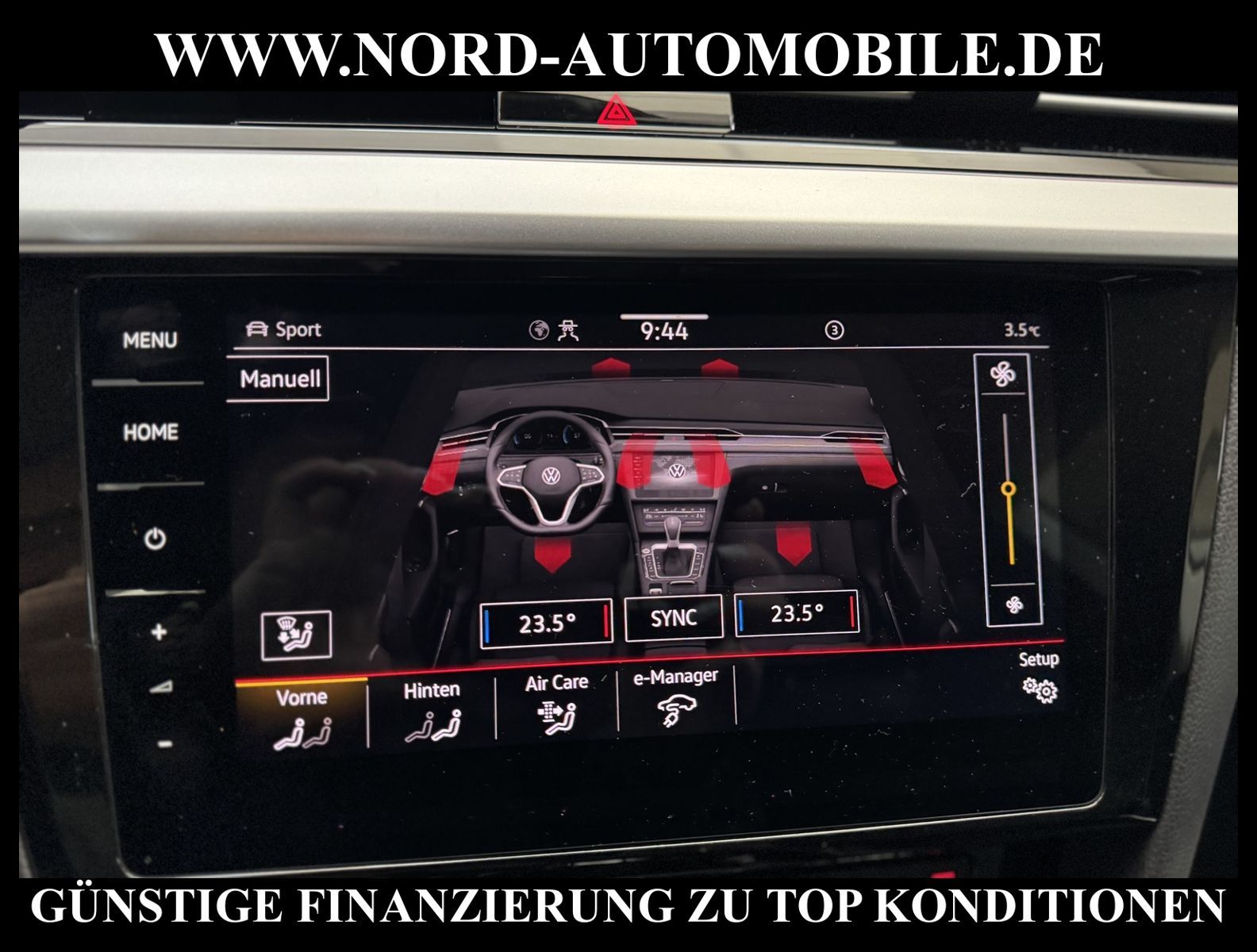 KomfortExtrasUnterhaltungBeschreibungwww.nord-automobile.de Volkswagen Arteon Shooting Brake Elegance 1.4 electric/TSI eHybrid 160kW 6-Gang DSG 4 TürenAnsprechpartner: Jan Feldhus, Jonathan Steinfeld, Tom Bijman, Simon Wolff, Matthis Ullrich, Andreas Cirja* FAHRZEUG-NUMMER: M-1268-BD * LACKIERUNG: Deep Black Perleffekt * Modelljahr:2023 * UPE brutto 58.976 ¤ * Mit Batteriezertifikat! * Deutsche Auslieferung * Abgasnorm Euro 6d * Navigationssystem ''Discover Pro'' * Sitzbezug / Polsterung: Leder Nappa * Spurhalteassistent plus Emergency Assist und Stauassistent * Rückfahrkamera ''Rear View'' * Audio-Navigationssystem Discover Pro Streaming & Internet * LED Scheinwerfer * Parklenkassistent (Park Assist) und PDC vorn und hinten * Müdigkeitserkennungserkennung * Sitzmittelbahnen und -wangeninnenseiten in Leder ''Vienna'' * Climatronic ( 3-Zonen ) mit Klimabedienteil hinten * Autom. Distanzregelung (ACC inkl. Stop&Go-Funktion) - Geschwindigkeitsbegrenzungsanlage * Sitzheizung für Vorder-/u.Hintersitze, getrennt regelbar * Verkehrszeichenerkennung * Head-up-Display * Multifunktionsanzeige/Bordcomputer * Vorbereitet für ''We Connect'' und ''We Connect Plus'' * Schlüsselloses Schließ- und Startsystem ''Keyless Access'' ohne Safe-Sicherung * Front Assist inkl. City ANB für ACC high * Fernlichtregulierung (Light Assist) * Sprachsteuerungssystem * Lenkrad heizbar (Leder, R-Line) mit Multifunktion und Schaltfunktion * Dekoreinlagen in Edelholz ''Eukalyptus'' für Instrumententafel und Türverkleidungen * Ambientebeleuchtung ''Plus'' * Mobiltelefon Schnittstelle Comfort mit kabelloser Ladefunktion - Bluetooth und 2 x USB * Rücksitzbank ungeteilt, Lehne asymmetrisch geteilt umklappbar, mit Mittelarmlehne und Durchlademöglichkeit * Höheneinstellung, manuell f.Vordersitze plus Sitzflächen-Neigungs u.Tiefeneins. links, plus Lehneneinst.elektr.links * Top-Komfortsitze vorn * Seitenscheiben hinten und Heckscheibe abgedunkelt, zu 65 % lichtabsorbierend * Scheibenwaschdüsen vorn automatisch beheizt * Scheibenwischer-Intervallschaltung mit Licht/Regensensor * Lendenwirbelstütze, elektr. einstellbar für linke Vordersitzlehne mit Massage- funktion * Kindersitzverankerung für Kindersitzsystem I-Size, 2 x top tether * Radioempfang digital (DAB+) * Außenspiegel elektr. verstell-, heiz- und anklappbar * Sicherheitsinnenspiegel automatisch abblendbar * Reifenfülldruck-Kontrollsystem * Vorbereitung Mobiler Schlüssel, für den Fahrzeugzugang per Smartphone * Airbag für Fahrer und Beifahrer, mit Beifahrerairbag-Deaktivierung, inkl. Knie-Airbag auf der Fahrerseite * Kofferraumdeckel / Heckklappe elektr. betätigt (öffnen + schliessen) * Elektronische Parkbremse inkl. Auto-Hold-Funktion * Berganfahrassistent * Start/Stopp-Anlage mit Rekuperation * Adaptive Fahrwerksregelung (DCC) * 6-Gang-Automatikgetriebe * 4 Leichtmetallräder ''Muscat'' 8 J x 18 in Schwarz, Oberfläche glanzgedreht * Nord-Automobile - Ihr starker und kompetenter Partner seit über 30 Jahren * Wir bieten Ihnen eine günstige Finanzierung auch ohne Anzahlung über die * AutoEuropaBank - Zweigniederlassung der Volkswagen Bank GmbH an * 20 XXL-Fotografien dieses Fahrzeuges finden Sie unter www.nord-automobile.de * Gerne unterbreiten wir Ihnen ein Angebot zum Ankauf Ihres bisherigen Fahrzeuges * Beim Export-Geschäft führen wir die Ausfuhranmeldung und Zulassung für Sie durch * Wir sind Meister-Werkstatt und zertifizierte GTÜ-Prüfstelle * Lernen Sie uns kennen - wir freuen uns auf Ihren Besuch * Keine Haftung für Druck & Schreibfehler. ... Klima, Klimaautomatik, Automatik, Leder, Navigationssystem, Sitzheiz. vorn, Sitzheiz. hinten, Regensensor, ESP, ABS, Distronic, Parktronic System, Multifunktionslenkr., Radio, Tel. m. Freisprech., Bordcomputer, Spiegel beheizbar, elektr. Fensterheber vorn, elektr. WFS, Keyless-Go, ZV mit Fernb., Fahrerairb., Beifahrerairb., Leichtmetallfelgen, Nichtraucher, abklappb. Spiegel, elektr. verstellb. Spiegel, Mittelarmlehne, Lendenwirbelst., Sitzhoehenv., orthop. Fahrersitz, Sitzheizung, Lichtsensor, Waermeschutzvergl., aus erster Hand, Schadstoffklasse: Euro 6, Frontantrieb, Lederlenkrad, HSN 0603, TSN COR, Verbrauch: 1,6/0,0/0,0 l/100 km (komb/inn/auß), CO2: 26 g/km, HU + AU wird vor Verkauf erneuert, Feinstaubplakette: 4 - Grün |
