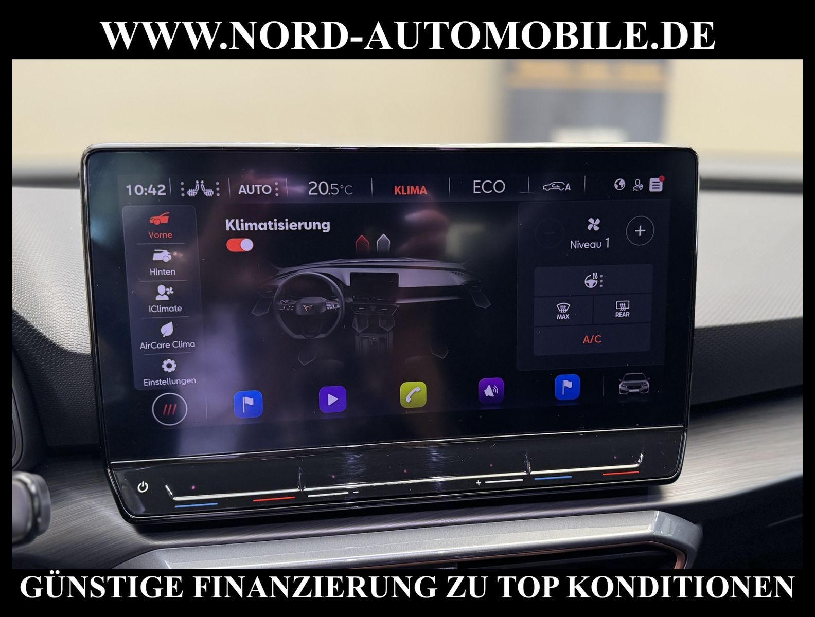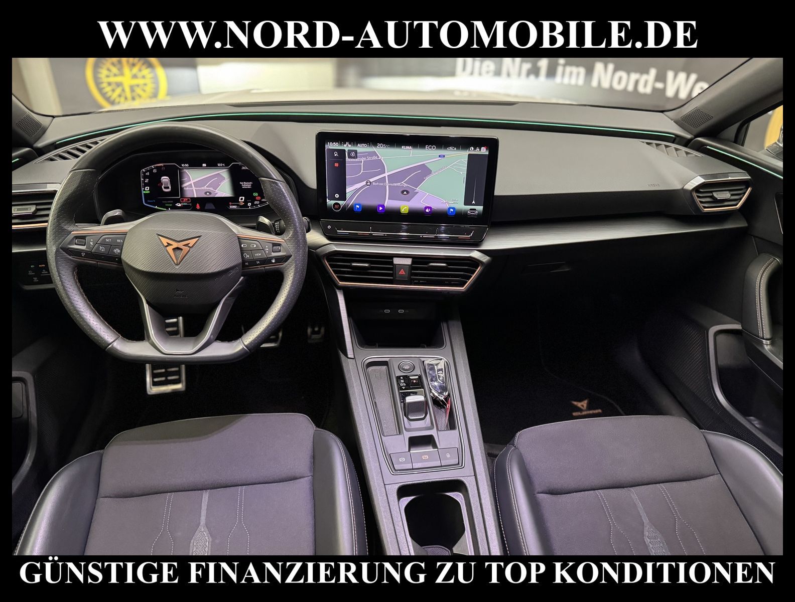 KomfortExtrasUnterhaltungBeschreibungwww.nord-automobile.de Cupra Leon SP 1.4 electric/TSI e-HYBRID 150kW 6-Gang Automatikgetriebe 4 TürenAnsprechpartner: Jan Feldhus, Jonathan Steinfeld, Tom Bijman, Simon Wolff, Matthis Ullrich, Andreas Cirja* FAHRZEUG-NUMMER: M-3418-BD * LACKIERUNG: ''Candy'' Weiss * Modelljahr:2023 * UPE brutto 41.364 ¤ * Mit Batteriezertifikat! * Deutsche Auslieferung * Abgaskonzept, EU6 AP * Navigationssystem * Mit Verkehrszeichenerkennung * Automatische Distanzregelung (mit follow to stop) und Speed-Limiter * Komforttelefonie mit LTE und Wireless charging * Einparkhilfe * Sprachsteuerung * Müdigkeitserkennung * LED-Scheinwerfer * Spurhalteassistent * Sitzheizung für Vordersitze getrennt regelbar * Climatronic ( 3-Zonen ) mit Klimabedienteil hinten * Kombiinstrument digital (virtual cockpit) * Schlüsselloses Schließ- und Startsystem ''Keyless Advanced'' ohne Safesicherung * Wireless RSE ''App'' * Lenkrad heizbar (Sport/Leder) mit Multifunktion und Schaltfunktion * Höheneinstellung, manuell, für Vordersitze * Lendenwirbelstütze, manuell einstellbar in Vordersitzlehnen * Tagesfahrlicht mit Assistenzfahrlicht u.Coming- u. Leaving-home Funktion automatisch * Rücksitzbank ungeteilt, Lehne geteilt umlegbar mit Mittelarmlehne * Einstiegleisten in den Türausschnitten (beleuchtet) * Nebelscheinwerfer * Fernlichtassistent * Scheiben seitlich in Wärmeschutzver- glasung, ab B-Säule und hinten dunkel eingefärbt * Mittelarmlehne vorn * Heckscheiben-Wisch-Waschanlage mit Intervallschaltung * Scheibenwischer-Intervallschaltung mit Licht/Regensensor * Angehobener Ladeboden hinten * Winterpaket: Sitzheizung vorn, Scheinw.-Reinigungsanlage, beheizbares Scheibenwischw., beheizbare Aussenspiegel * Fensterheber mit Komfortschaltung und Abschaltsicherung, elektrisch * Sicherheitsinnenspiegel automatisch abblendbar * Servolenkung, geschwindigkeitsabhängig (Servotronic) mit Lenkhubeinschränkung * Radschrauben mit Diebstahlsicherung (nicht abschließbar) * Reifendruckkontrolle * Außenspiegel elektr. verstell-, heiz- und anklappbar mit Spiegelabsenkung und Welcome Light * Pedale Aluminium-Design * Leichtmetallräder 7 1/2J x 18 * Start/Stopp-Anlage mit Rekuperation * 6-Gang-Automatikgetriebe * Nord-Automobile - Ihr starker und kompetenter Partner seit über 30 Jahren * Wir bieten Ihnen eine günstige Finanzierung auch ohne Anzahlung über die * AutoEuropaBank - Zweigniederlassung der Volkswagen Bank GmbH an * 20 XXL-Fotografien dieses Fahrzeuges finden Sie unter www.nord-automobile.de * Gerne unterbreiten wir Ihnen ein Angebot zum Ankauf Ihres bisherigen Fahrzeuges * Beim Export-Geschäft führen wir die Ausfuhranmeldung und Zulassung für Sie durch * Wir sind Meister-Werkstatt und zertifizierte GTÜ-Prüfstelle * Lernen Sie uns kennen - wir freuen uns auf Ihren Besuch * Keine Haftung für Druck & Schreibfehler. ... Klima, Klimaautomatik, Automatik, Navigationssystem, Sitzheiz. vorn, Regensensor, ESP, ABS, Distronic, Multifunktionslenkr., Bordcomputer, Spiegel beheizbar, Scheinwerferreinigung, elektr. Fensterheber vorn, elektr. WFS, ZV mit Fernb., Beifahrerairb., Leichtmetallfelgen, Nichtraucher, Nebelscheinw., Servolenkung, abklappb. Spiegel, elektr. verstellb. Spiegel, Mittelarmlehne, Sitzheizung, Lichtsensor, aus erster Hand, Schadstoffklasse: Euro 6, Frontantrieb, Lederlenkrad, HSN 7593, TSN ART, Verbrauch: 1,7/0,0/0,0 l/100 km (komb/inn/auß), CO2: 27 g/km, HU + AU wird vor Verkauf erneuert, Feinstaubplakette: 4 - Grün |