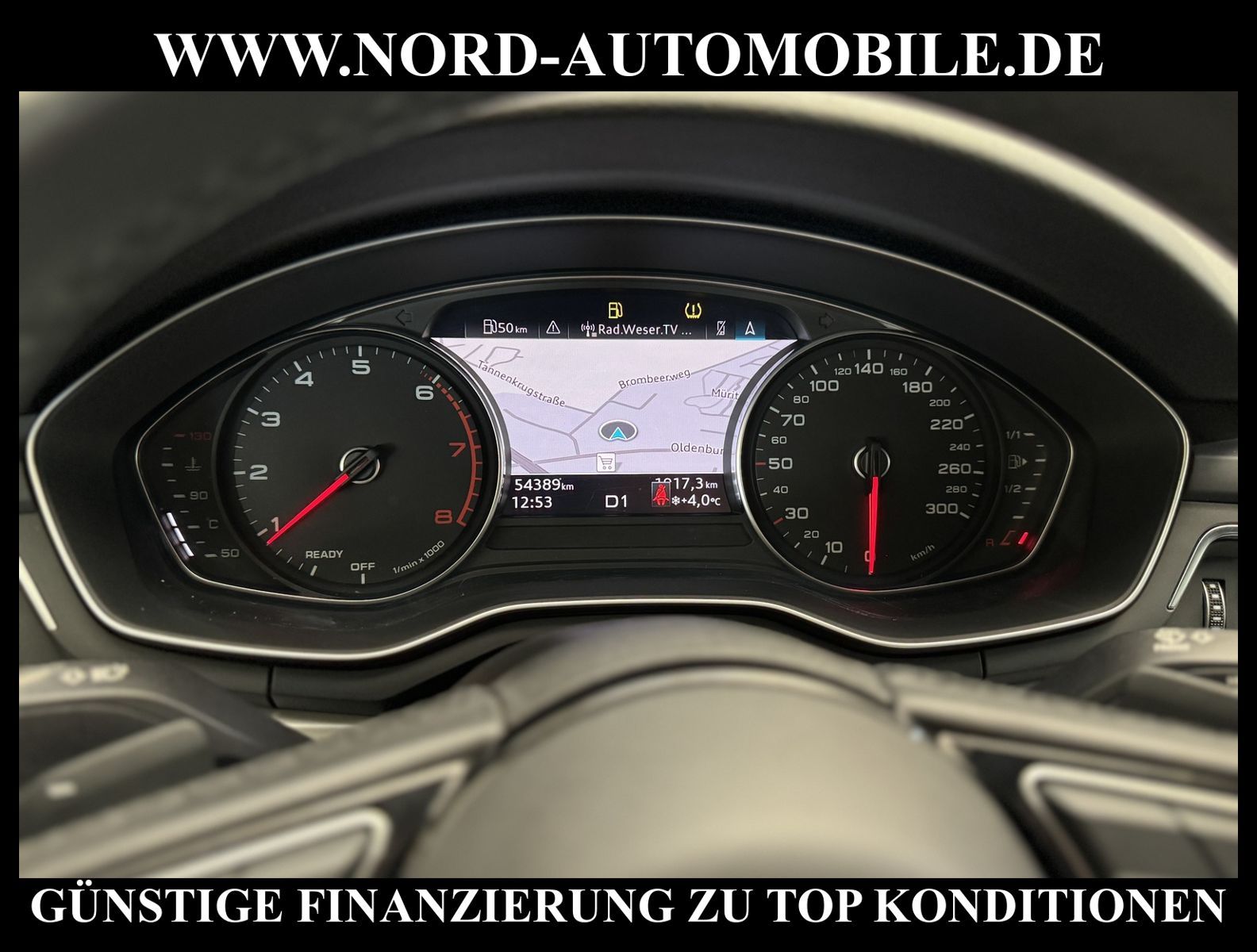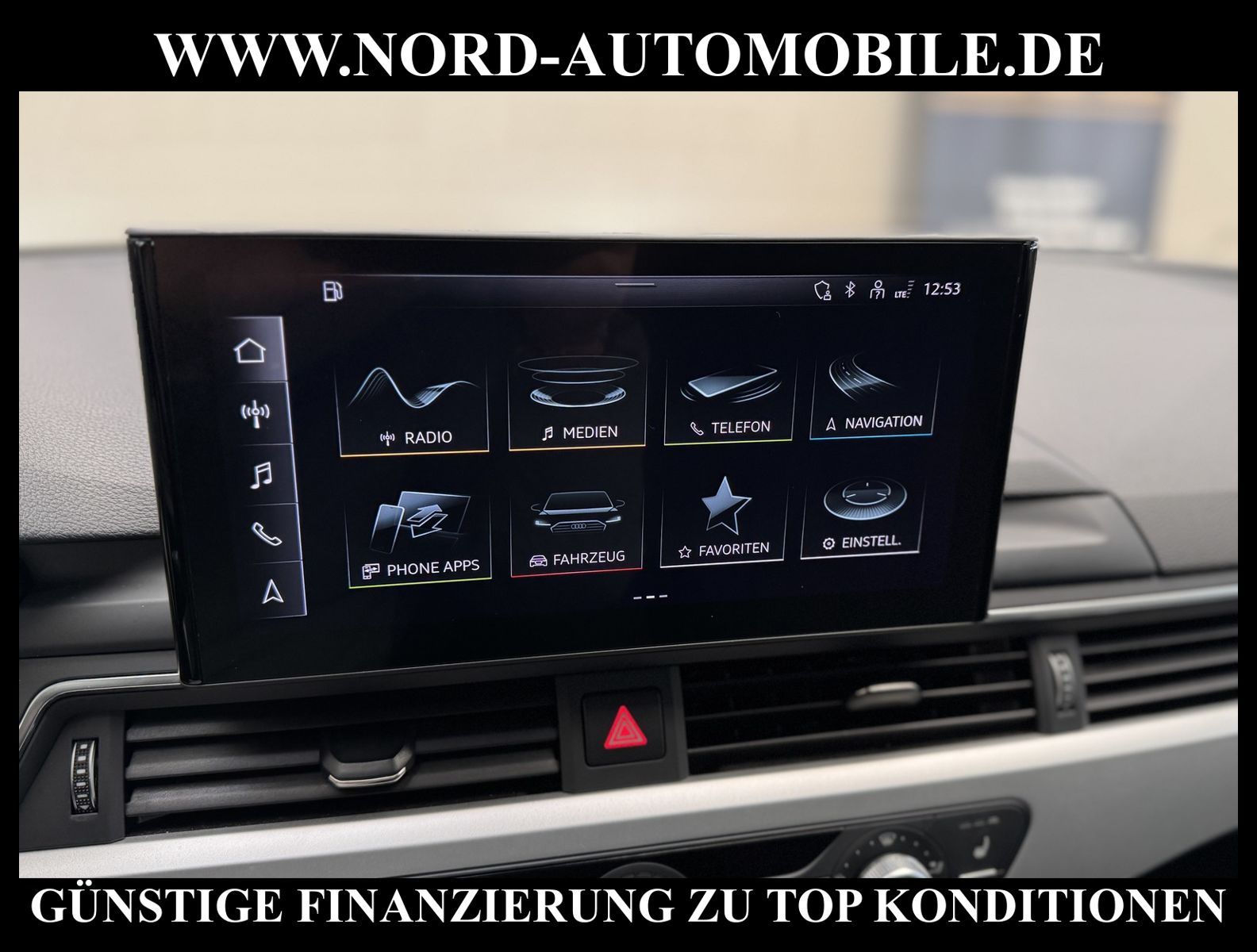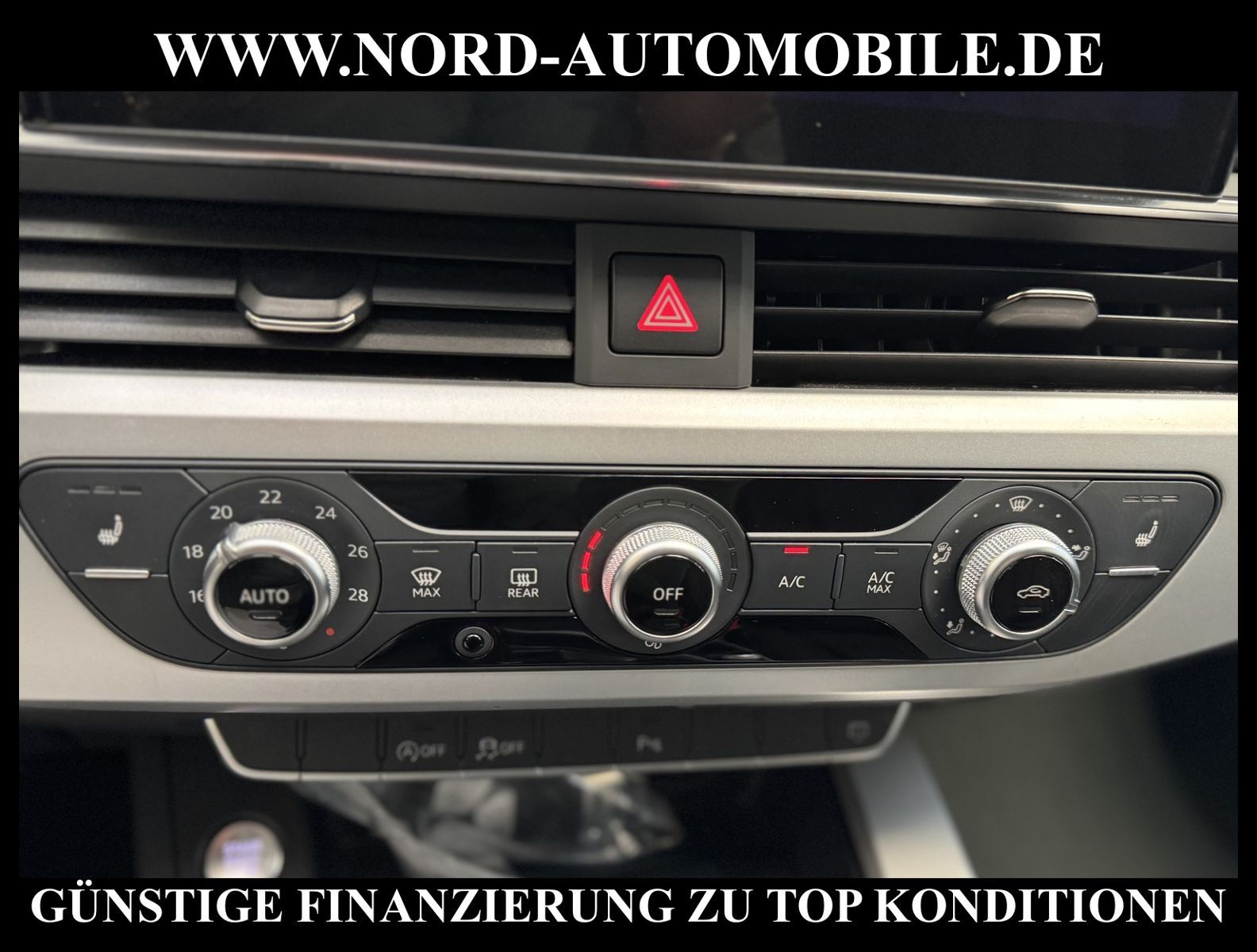 KomfortExtrasUnterhaltungBeschreibungwww.nord-automobile.de AUDI A4 AvantAnsprechpartner:Jan Feldhus, Jonathan Steinfeld, Tom Bijman, Simon Wolff, Matthis Ullrich* FAHRZEUG-NUMMER: M-8890-BD * LACKIERUNG:Mythosschwarz Metallic * Deutsche Auslieferung * Mdelljahr:2022 * UPE brutto 45.261 ¤ * Abgaskonzept, EU6 AP * Audi Smartphone Interface * Einparkhilfe plus * Sonnenschutzrollo für Seitenscheiben hinten * Sitzheizung für Vordersitze getrennt regelbar * Navigationsgerät-High * Telefonvorbereitung für Handy * Digitaler Radioempfang * Einparkhilfe vorn und hinten * Multifunktionsanzeige/Bordcomputer''TOP'' * Geschwindigkeitsregelanlage plus Speed-Limiter * LED-Scheinwerfer * Komfortschlüssel inkl. sensorgesteuerterGepäckraumentriegelung inkl. Gepäckraum-klappe elektrisch öffnend und schließend * Ledersportmultifunktionslenkrad * Höheneinstellung, manuell, für Vordersitze * Rücksitzbank ungeteilt, Lehne geteilt umlegbar (dreiteilig) mit Mittelarmlehne * Zentralverriegelung ''Keyless-Entry''ohne Safesicherung * Servoschließung Heckklappe * Glas im Fond dunkel eingefärbt(Venus 35/ Privacy)vorn Wärmeschutzglas (grün) * Fernlichtassistent * Sicherheitsinnenspiegel automatisch abblendbar * Airbag FS und BFS, ohne Knieairbag, mit BFS-Deaktivierung * Außenspiegel, automatisch abblendbar elektrisch anklapp-/einstell-/beheizbar * Reifendruckkontrolle * Start/Stopp-Anlage mit Rekuperation * Leichtmetallräder 7 1/2J x17 * 7-Gang-Automatikgetriebe * Nord-Automobile - Ihr starker und kompetenter Partner seit über 30 Jahren * Wir bieten Ihnen eine günstige Finanzierung auch ohne Anzahlung über die * AutoEuropaBank - Zweigniederlassung der Volkswagen Bank GmbH an * 20 XXL-Fotografien dieses Fahrzeuges finden Sie unter www.nord-automobile.de * Gerne unterbreiten wir Ihnen ein Angebot zum Ankauf Ihres bisherigen Fahrzeuges * Beim Export-Geschäft führen wir die Ausfuhranmeldung und Zulassung für Sie durch * Wir sind Meister-Werkstatt und zertifizierte GTÜ-Prüfstelle * Lernen Sie uns kennen - wir freuen uns auf Ihren Besuch * Keine Haftung für Druck & Schreibfehler. ... Klima, Klimaautomatik, Automatik, Navigationssystem, Sitzheiz. vorn, Regensensor, ESP, ABS, Parktronic System, Multifunktionslenkr., Radio, Bordcomputer, Tempomat, Spiegel autom. abblendbar, Spiegel beheizbar, elektr. Fensterheber vorn, elektr. WFS, Keyless-Go, Beifahrerairb., Seitenairbag vorn, Kopfairbags, Leichtmetallfelgen, Nichtraucher, Servolenkung, Sitzbank teilbar, Dachreling, abklappb. Spiegel, elektr. verstellb. Spiegel, Kopfst. vorn, Mittelarmlehne, Sitzheizung Fahrer + Beif., Lichtsensor, Waermeschutzvergl., aus erster Hand, Schadstoffklasse: Euro 6, Frontantrieb, Lederlenkrad, HSN 0588, TSN BNW, Verbrauch: 6,0/7,5/5,1 l/100 km (komb/inn/auß), CO2: 145 g/km, Partikelfilter, HU + AU wird vor Verkauf erneuert, Feinstaubplakette: 4 - Grün |