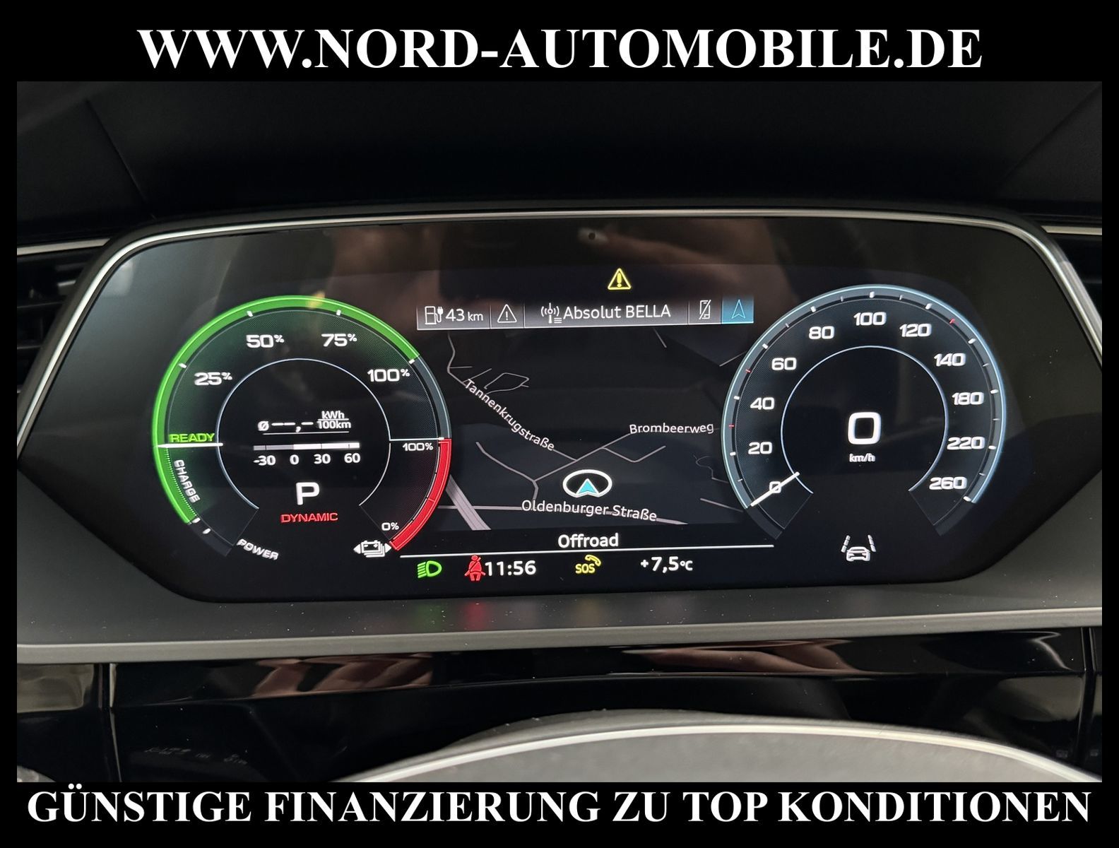 KomfortExtrasUnterhaltungBeschreibungwww.nord-automobile.de AUDI e-tron 50Ansprechpartner:Jan Feldhus, Jonathan Steinfeld, Tom Bijman, Simon Wolff, MAtthis Ullrich, Andreas Cirja* FAHRZEUG-NUMMER: M-3389-BD * LACKIERUNG: Manhattangrau Metallic * Deutsche Auslieferung * Modelljahr:2023 * Mit Batteriezertifikat! * UPE brutto 88.499 ¤ * Assistenzpaket Tour * Grossdach-System * Navigationsgerät-High * LED-Scheinwerfer * Audi virtual cockpit plus * Parklenkassistent * Digitaler Radioempfang * Spurwechselassistent * Telefonvorbereitung für Handy * Mit Verkehrszeichenerkennung * Mit Rückfahrkamerasystem * Multifunktionsanzeige/Bordcomputer''FPK'' Skinning * Automatische Distanzregelung * Zentralverriegelung ''Keyless-Go''ohne Safesicherung * Spurhalteassistent plus Emergency Assist und Stauassistent * Anhängevorrichtung, abnehmbar und abschließbar * 4 Corner Luftfederung mit elektrisch geregelter Dämpfung * Sitzheizung für Vordersitze getrennt regelbar * Sitzeinstellung elektrisch, für beide Vordersitze, Fahrersitz mit Memory * Spurwechselwarnung mit Audi pre sense rear, Ausstiegswarnung und Querverkehrassistent hinten * Ledersportmultifunktionslenkrad * Lenksäule, axial u.vertikal einstellbar * Airbag FS und BFS, ohne Knieairbag, mit BFS-Deaktivierung * Sicherheitsinnenspiegel automatisch abblendbar * Außenspiegel mit Memoryfunktion elektrisch einstell-/beheizbar * Radschrauben mit Diebstahlsicherung plus Radlöseerkennung * Räder, 15-Speichen, graphitgrau, glanzgedreht, 9, 5Jx21, Reifen 265/45 R21 * Servoschließung Heckklappe * Reifendruckkontrolle * Nord-Automobile - Ihr starker und kompetenter Partner seit über 30 Jahren * Wir bieten Ihnen eine günstige Finanzierung auch ohne Anzahlung über die * AutoEuropaBank - Zweigniederlassung der Volkswagen Bank GmbH an * 20 XXL-Fotografien dieses Fahrzeuges finden Sie unter www.nord-automobile.de * Gerne unterbreiten wir Ihnen ein Angebot zum Ankauf Ihres bisherigen Fahrzeuges * Beim Export-Geschäft führen wir die Ausfuhranmeldung und Zulassung für Sie durch * Wir sind Meister-Werkstatt und zertifizierte GTÜ-Prüfstelle * Lernen Sie uns kennen - wir freuen uns auf Ihren Besuch * Keine Haftung für Druck & Schreibfehler. ... Klima, Klimaautomatik, Automatik, Leder, Navigationssystem, Allrad, Sitzheiz. vorn, Sitz m. Memory-Funktion, Vorders. elekt. verstellb., Distronic, Parktronic System, Multifunktionslenkr., Radio, Soundsystem, Bordcomputer, Tempomat, Spiegel autom. abblendbar, Spiegel beheizbar, Scheinwerferreinigung, elektr. Fensterheber vorn, elektr. WFS, Keyless-Go, ZV mit Fernb., Fahrerairb., Beifahrerairb., Seitenairbag vorn, Kopfairbags, Leichtmetallfelgen, Nichtraucher, Anhaengerk., Glasdach, Spoiler, Sitzbank teilbar, elektr. verstellb. Spiegel, Kopfst. vorn, Gepaeckraumabd., Mittelarmlehne, Lendenwirbelst., elekt. verstellb. Fahrersitz, Sitzheizung Fahrer + Beif., Waermeschutzvergl., 12 V Zusatzanschluss, aus erster Hand, 4x4-Antrieb, Lederlenkrad, HSN 0588, TSN BSK, HU + AU wird vor Verkauf erneuert, Standklima |