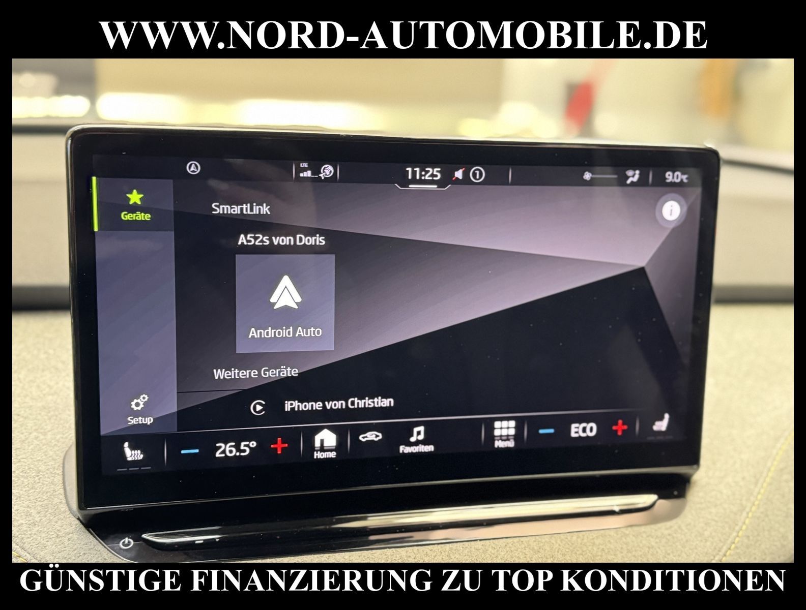 KomfortExtrasUnterhaltungBeschreibungwww.nord-automobile.de SKODA ENYAQAnsprechpartner:Jan Feldhus, Jonathan Steinfeld, Tom Bijman, Simon Wolff, Matthis Ullrich, Andreas Cirja* FAHRZEUG-NUMMER: M-8483 * LACKIERUNG: Schwarz-Magic Perleffekt * Deutsche Auslieferung * Modelljahr:2021 * UPE brutto 53.729 ¤ * Mit Batteriezertifikat! * Batteriekapazität (brutto)82 kWh * Desingpaket Lounge * Sitzbezüge in Alcantara/Leder * Sitzheizung für Vordersitze getrennt regelbar * Spurwechselassistent * Matrix-Beam * Mit Rückfahrkamerasystem * Mit Verkehrszeichenerkennung * Digitaler Radioempfang * Einparkhilfe vorn und hinten * Automatische Distanzregelung(mit follow to stop) und Speed-Limiter * Spurhalteassistent plus Stauassistent * Climatronic ( 3-Zonen ) mit Klimabedienteil hinten * Mit Ausweichunterstützung mit Abbiegeassistent * Müdigkeitserkennung * Anhängevorrichtung mechanisch schwenkbar und elektrisch auslösbar * Sonnenschutzrollo für Seitenscheiben hinten * Lendenwirbelstütze, elektr. einstellbar für linke Vordersitzlehne * Sitzeinstellung, links elektrisch mit Memory, rechts mechan. höheneinstellbar * Rücksitzbank ungeteilt, Lehne geteilt umlegbar mit Mittelarmlehne * Schlüsselloses Schließ- und Startsystem''Keyless Advanced'' ohne Safesicherung * Ledersportmultifunktionslenkrad, beheizbar mit Tiptronic * Scheibenwischer-Intervallschaltung mit Licht/Regensensor * Leuchtweitenregulierung, autom/dynamisch mit Kurvenfahrlicht (AFS 1) * Sicherheitsinnenspiegel automatisch abblendbar * Außenspiegel mit Memoryfunktion automatisch abblendbar, elektrisch anklapp-/einstellbar, separat beheizbar * Airbag FS und BFS, ohne Knieairbag, mit BFS-Deaktivierung * Leichtmetallräder ''VEGA'' Silber Metallic, lackiet, vorn 8J x 20'', hinten 9J x 20'' * Dynamiklenkung * Reifendruckkontrolle * Nord-Automobile - Ihr starker und kompetenter Partner seit über 20 Jahren * Wir bieten Ihnen eine günstige Finanzierung auch ohne Anzahlung über die * AutoEuropaBank - Zweigniederlassung der Volkswagen Bank GmbH an * 20 XXL-Fotografien dieses Fahrzeuges finden Sie unter www.nord-automobile.de * Gerne unterbreiten wir Ihnen ein Angebot zum Ankauf Ihres bisherigen Fahrzeuges * Beim Export-Geschäft führen wir die Ausfuhranmeldung und Zulassung für Sie durch * Wir sind Meister-Werkstatt und zertifizierte DEKRA-Prüfstelle * Lernen Sie uns kennen - wir freuen uns auf Ihren Besuch * Keine Haftung für Druck & Schreibfehler. ... Klima vorn+hinten, Klimaautomatik, Automatik, Navigationssystem, Sitzheiz. vorn, Regensensor, Sitz m. Memory-Funktion, Vorders. elekt. verstellb., ESP, ASR, ABS, Distronic, Parktronic System, Multifunktionslenkr., Radio, Bordcomputer, Tempomat, Spiegel autom. abblendbar, Spiegel beheizbar, Scheinwerferreinigung, elektr. Fensterheber vorn+hinten, elektr. WFS, Keyless-Go, ZV mit Fernb., Fahrerairb., Beifahrerairb., Seitenairbag vorn, Seitenairbag hinten, Kopfairbags, Leichtmetallfelgen, Nichtraucher, Anhaengerk., Servolenkung, Spoiler, Traktionskontr., Sitzbank teilbar, Lenksaeule einstellbar, Dachreling, abklappb. Spiegel, elektr. verstellb. Spiegel, Kopfst. vorn, Heckscheibenw., Gepaeckraumabd., Mittelarmlehne, Lendenwirbelst., Sitzhoehenv., elekt. verstellb. Fahrersitz, Sitzheizung Fahrer + Beif., Waermeschutzvergl., 12 V Zusatzanschluss, Lederlenkrad |
