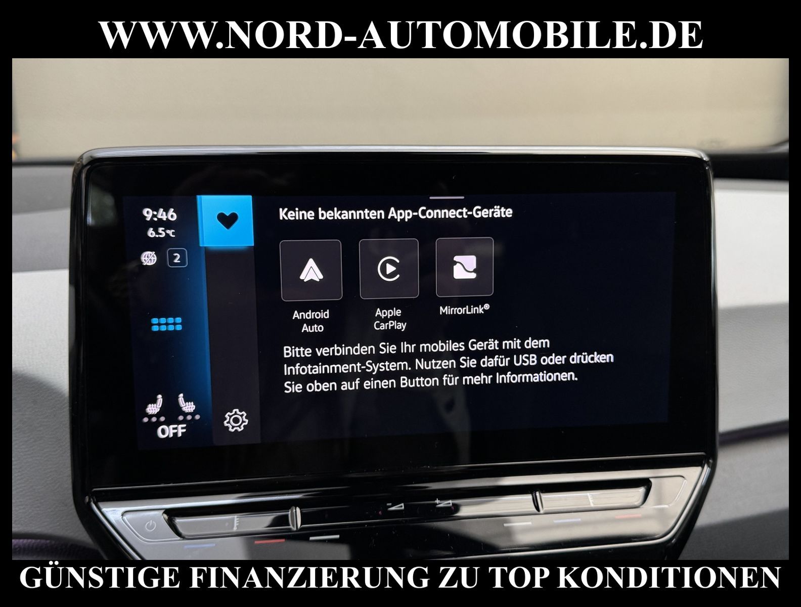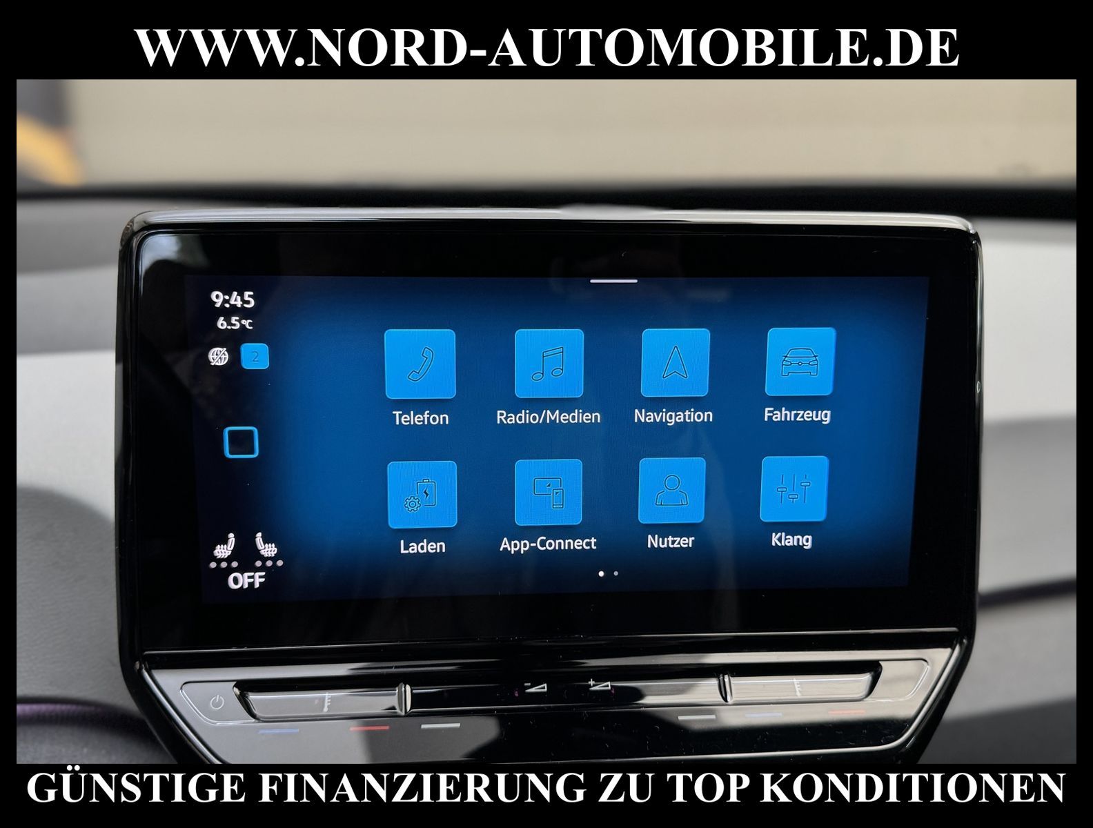 KomfortExtrasUnterhaltungBeschreibungwww.nord-automobile.de Volkswagen ID.3 Pro Performance electric 150kW 1-Gang-Automatik 4 TürenAnsprechpartner: Jan Feldhus, Jonathan Steinfeld, Tom Bijman, Simon Wolff, Matthis Ullrich, Andreas Cirja* FAHRZEUG-NUMMER: M-7873 * LACKIERUNG: Mangangrau Metallic * Modelljahr: 2022 * UPE brutto 45.129 ¤ * Mit Batteriezertifikat! * Batteriekapazität (brutto)62 kWh * Deutsche Auslieferung * Design-Paket * Schnellladevorrichtung (CCS-Ladedose) * Navigationssystem ''Discover Media'' inkl. ''Streaming & Internet'' * Rückfahrkamera mit 360° Umgebungsansicht (Area View) * Spurwechselassistent * Spurhalteassistent plus Emergency Assist und Stauassistent * Einparkhilfe vorne und hinten * Müdigkeitserkennungserkennung * Klimaanlage ''Climatronic'' mit Aktiv-Kombifilter * Autom. Distanzregelung (ACC inkl. Stop&Go-Funktion) - Geschwindigkeitsbegrenzungsanlage * Matrix-LED-Scheinwerfer (IQ.Light) inkl. autom. Fahrlichtschaltung, Schlechtwetter-Licht und Begrüßungsfunktion * 3 Rücksitze, Rücksitzlehne asymmetrisch geteilt umklappbar, mit Mittelarmlehne, Durchlademöglichkeit, 2 Becherhalter * Head-up-Display mit Augmented Reality * Verkehrszeichenerkennung * Ambientebeleuchtung 30-farbig * Sitzheizung für Vordersitze getrennt regelbar * Schlüsselloses Schließ- und Startsystem ''Keyless Access'', mit Safe-Sicherung * 2 USB-C-Schnittstellen vorn, 1 USB-C-Ladebuchse an der Mittelkonsole hinten * Mobiltelefon Schnittstelle Comfort mit kabelloser Ladefunktion * Intelligente Fahrzeugvernetzung (Car2X) * Sprachsteuerungssystem * Lenkrad heizbar (Leder) mit Multifunktion * Sitze vorn höhenverstellbar * Seitenscheiben hinten und Heckscheibe abgedunkelt, zu 65 % lichtabsorbierend * Dynamische Fernlichtregulierung ''Dynamic Light Assist'' für LED-Matrix-Scheinwerfer * Scheibenwaschdüsen vorn automatisch beheizt * Scheibenwischer-Intervallschaltung mit Licht/Regensensor * Rücksitzlehne asymmetrisch geteilt umklappbar, mit Durchlademöglichkeit und Mittelarmlehne, 2 Becherhalter * Umfeldbeobachtungssystem (Front assist) mit City-Notbremsfunktion * ISOFIX-Halteösen für Kindersitze auf denäußeren Rücksitzen sowie auf dem Beifahrersitz, i-Size-kompatibel * Sitzbezüge in Stoff, Dessin ''Zoom'' * Außenspiegel elektr. verstell-, heiz- und anklappbar - Außenspiegel mit autom. Absenkfunktion, rechts * Airbag für Fahrer und Beifahrer, mit Beifahrerairbag-Deaktivierung * Radioempfang digital (DAB+) * Sicherheitsinnenspiegel automatisch abblendbar * Kopfairbags vorn und hinten, Seitenairbags vorn, Center-Airbag * Pedale in Edelstahl, im ''Play/Pause''-Design * Servolenkung, geschwindigkeitsabhängig (Servotronic) * Diebstahlwarnanlage mit Innenraumüberwachung, Back-up-Horn und Abschleppschutz * Reifenkontrollanzeige * 4 Leichtmetallräder ''Andoya'' 7, 5 J x 19 in Schwarz, Oberfläche glanzgedreht * Nord-Automobile - Ihr starker und kompetenter Partner seit über 30 Jahren * Wir bieten Ihnen eine günstige Finanzierung auch ohne Anzahlung über die * AutoEuropaBank - Zweigniederlassung der Volkswagen Bank GmbH an * 20 XXL-Fotografien dieses Fahrzeuges finden Sie unter www.nord-automobile.de * Gerne unterbreiten wir Ihnen ein Angebot zum Ankauf Ihres bisherigen Fahrzeuges * Beim Export-Geschäft führen wir die Ausfuhranmeldung und Zulassung für Sie durch * Wir sind Meister-Werkstatt und zertifizierte GTÜ-Prüfstelle * Lernen Sie uns kennen - wir freuen uns auf Ihren Besuch * Keine Haftung für Druck & Schreibfehler. ... Klima, Klimaautomatik, Automatik, Navigationssystem, Sitzheiz. vorn, Regensensor, ABS, Distronic, Multifunktionslenkr., Radio, Tel. m. Freisprech., Bordcomputer, Spiegel beheizbar, elektr. Fensterheber vorn, elektr. WFS, ZV mit Fernb., Fahrerairb., Beifahrerairb., Kopfairbags, Leichtmetallfelgen, Nichtraucher, Servolenkung, Sitzbank teilbar, abklappb. Spiegel, elektr. verstellb. Spiegel, Sitzhoehenv., Sitzheizung, Lichtsensor, Waermeschutzvergl., aus erster Hand, Lederlenkrad, HSN 0603, TSN CKV, HU + AU wird vor Verkauf erneuert |