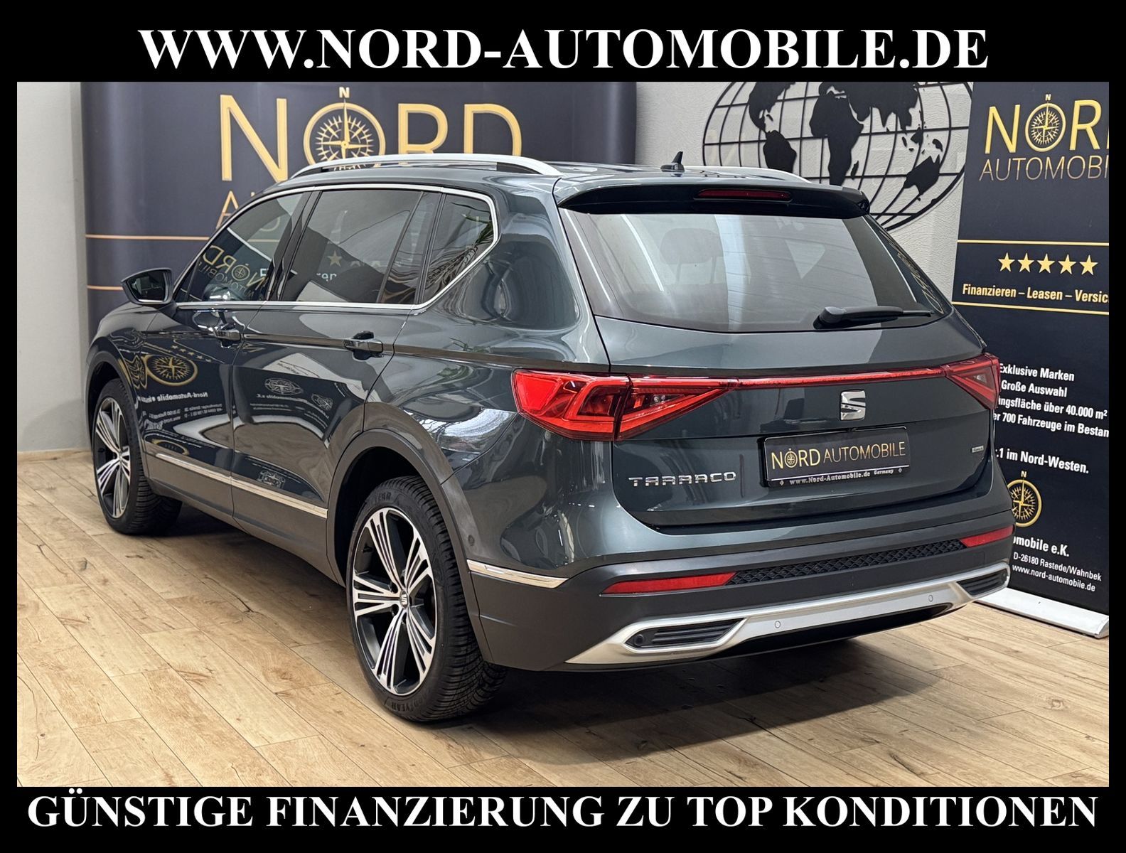 SEAT TARRACO 2.0 TSI DSG XCELLENCE 4DRIVE *7-SITZER* Ansprechpartner: Jan Feldhus, Jonathan Steinfeld, Tom Bijman, Simon Wolff, Matthis Ullrich, Andreas Cirja* FAHRZEUG-NUMMER: M-9382 * LACKIERUNG: Camouflage Grün * Deutsche Ausführung * Schadstoffarm nach Abgasnorm Euro 6d-TEMP * Sitz-Paket 7-Sitzer * Allradanrieb 4Drive * LED- Hauptscheinwerfer mit Linse * Anhängerkupplung schwenkbar * Virtual Cockpit (Volldigitales Kombiinstrument) * Ablage-Paket * Business-Paket Infotain * Dynamic-Paket * Fahrassistenz-Paket Plus * Automatische Distanregelung ACC * Spurhalteassistent * Totwinkelassistent * Fahrassistenz-Paket Plus * Kamerasystem Umgebungsansicht (Top View, 360°) * Sonderlackierung Exclusive * Navigationssystem * Airbag Fahrer-/Beifahrerseite * Antriebs-Schlupfregelung (ASR) * Auto-Hold-Funktion * Außenspiegel elektrisch verstell-, heiz- und anklappbar mit Spiegelabsenkung * Dachhimmel schwarz * Dachreling silber * Elektron. Querdifferentialsperre (XDS) * Fahrassistenz-System: Automatische Distanzregelung (ACC) * Fahrassistenz-System: Fahrprofilauswahl (SEAT Drive Profile) * Fahrassistenz-System: Müdigkeitserkennung * Fahrassistenz-System: Spurhalteassistent * Fahrassistenz-System: Umfeldbeobachtungssystem (Front assist) mit City-Notbremsfunktion * Fensterheber elektrisch vorn + hinten * Full Link (MirrorLink, Apple CarPlay und Android Auto) * Funktions-Paket * Handschuhfach beleuchtet * Heckleuchten LED mit dynamischem Blinklicht * Innenausstattung: Chrom-Applikationen * Innenspiegel mit Abblendautomatik * Isofix-Aufnahmen für Kindersitz * Klapptisch in Fahrer- und Beifahrersitzlehne integriert * Klimaanlage Climatronic 3-Zonen * Knieairbag Fahrerseite * Kombiinstrument digital (virtual cockpit) * Kopf-Airbag-System * Kopfstützen hinten (3-fach) * Licht- und Style-Paket * Mittelkonsole vorn mit Mittelarmlehne * Nebelscheinwerfer LED * Notrufsystem * Otto-Partikelfilter (OPF) * Reifenkontroll-Anzeige * Rücksitzbank verschiebbar * Rücksitzlehnen umklappbar mit Fernentriegelung im Kofferraum * Schalt-/Wählhebelgriff Leder * Scheinwerfer Voll-LED * Seitenairbag * Sitz vorn links höhenverstellbar * Sitz vorn rechts höhenverstellbar * Sitzlehne vorn rechts umklappbar * Sonnenblende links mit Spiegel (beleuchtet) * Sonnenblende rechts mit Spiegel (beleuchtet) * Sport-Komfortsitze vorn * Start/Stop-Anlage * Steckdose (12V-Anschluß) vorn * Wärmeschutzverglasung * Motor 2, 0 Ltr. - 140 kW TSI * Getriebe 7-Gang - Doppelkupplungsgetriebe DSG * Leichtmetallräder 20'' Zoll * Nord-Automobile - Ihr starker und kompetenter Partner seit über 30 Jahren * Wir bieten Ihnen eine günstige Finanzierung auch ohne Anzahlung über die * AutoEuropaBank - Zweigniederlassung der Volkswagen Bank GmbH an * 20 XXL-Fotografien dieses Fahrzeuges finden Sie unter www.nord-automobile.de * Gerne unterbreiten wir Ihnen ein Angebot zum Ankauf Ihres bisherigen Fahrzeuges * Beim Export-Geschäft führen wir die Ausfuhranmeldung und Zulassung für Sie durch * Wir sind Meister-Werkstatt und zertifizierte GTÜ-Prüfstelle * Lernen Sie uns kennen - wir freuen uns auf Ihren Besuch * Keine Haftung für Druck & Schreibfehler ... Klima vorn+hinten, Klimaautomatik, Automatik, Navigationssystem, Allrad, Sitzheiz. vorn, Sitzheiz. hinten, Regensensor, ESP, ASR, ABS, Distronic, Parktronic System, Multifunktionslenkr., CD, Radio, Soundsystem, Tempomat, Spiegel autom. abblendbar, Spiegel beheizbar, elektr. Fensterheber vorn+hinten, elektr. WFS, Keyless-Go, ZV mit Fernb., Fahrerairb., Beifahrerairb., Seitenairbag vorn, Kopfairbags, Leichtmetallfelgen, elektr. Fahrwerksregelung, Nichtraucher, Anhaengerk., Servolenkung, Sportsitze/Schalensitze, Traktionskontr., 7-Sitzer/3.Sitzreihe, Dachreling, abklappb. Spiegel, elektr. verstellb. Spiegel, Kopfst. vorn, Kopfst. hinten, Gurtstraffer, Gepaeckraumabd., Nebelschlussl., Scheibenbr., Reserverad, Mittelarmlehne, Lendenwirbelst., Sitzhoehenv., Sitzheizung Fahrer + Beif., Lichtsensor, Waermeschutzvergl., 12 V Zusatzanschluss, Schadstoffklasse: Euro 6, 4x4-Antrieb, Lederlenkrad, Lederschaltknauf, HSN 7593, TSN AOQ, Verbrauch: 7,3/9,0/6,3 l/100 km (komb/inn/auß), CO2: 166 g/km, Partikelfilter, Feinstaubplakette: 4 - Grün |